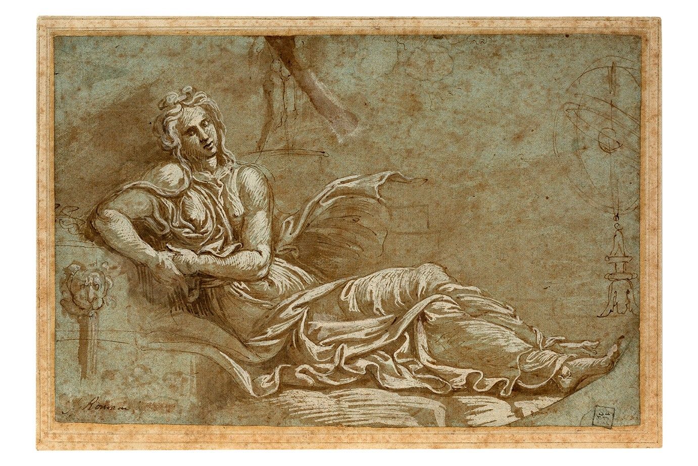 The nymph Castalia, Pen and brown ink, brown wash and white gouache highlights on formerly blue paper