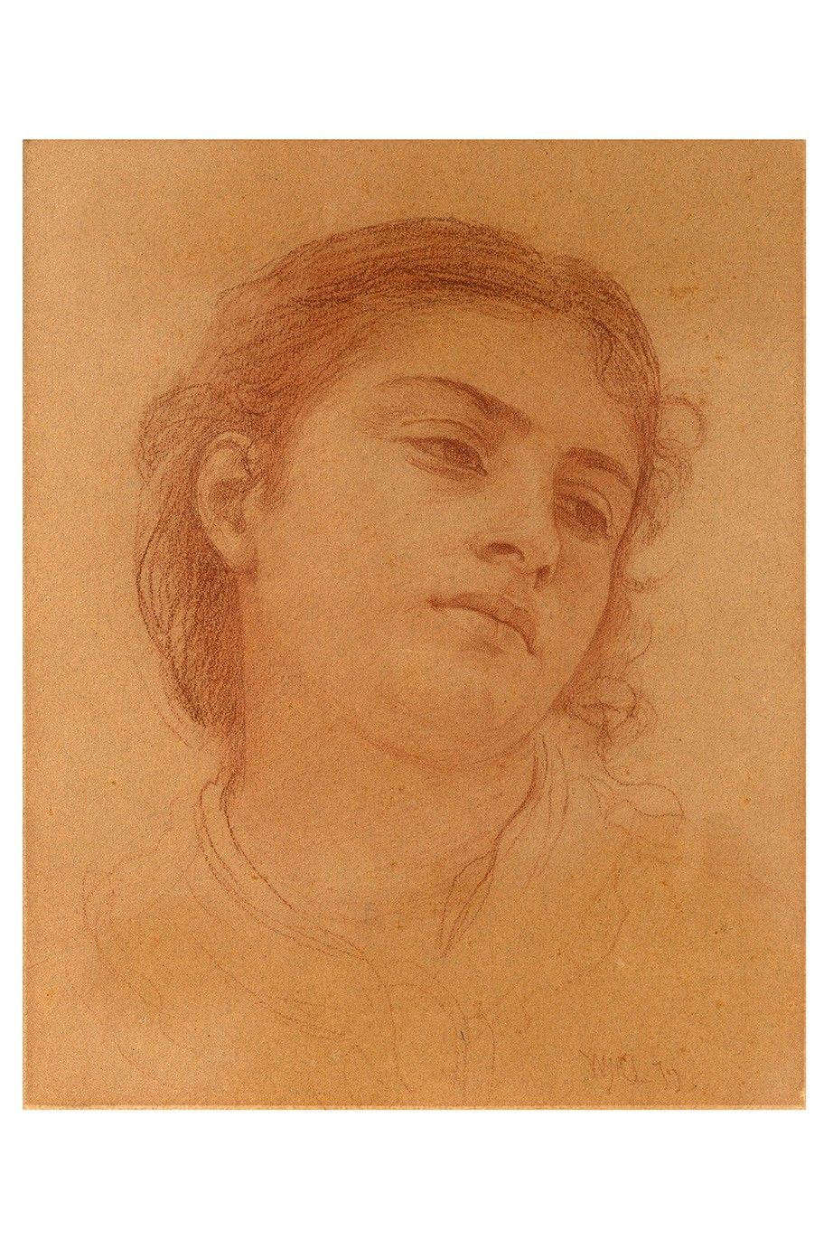 Portrait of a young girl, red chalk and stump