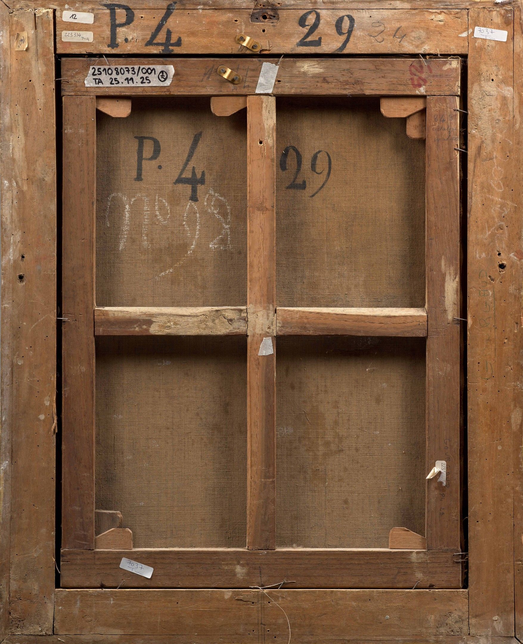 Bears the number 'P. 429' on the canvas and frame on the reverse