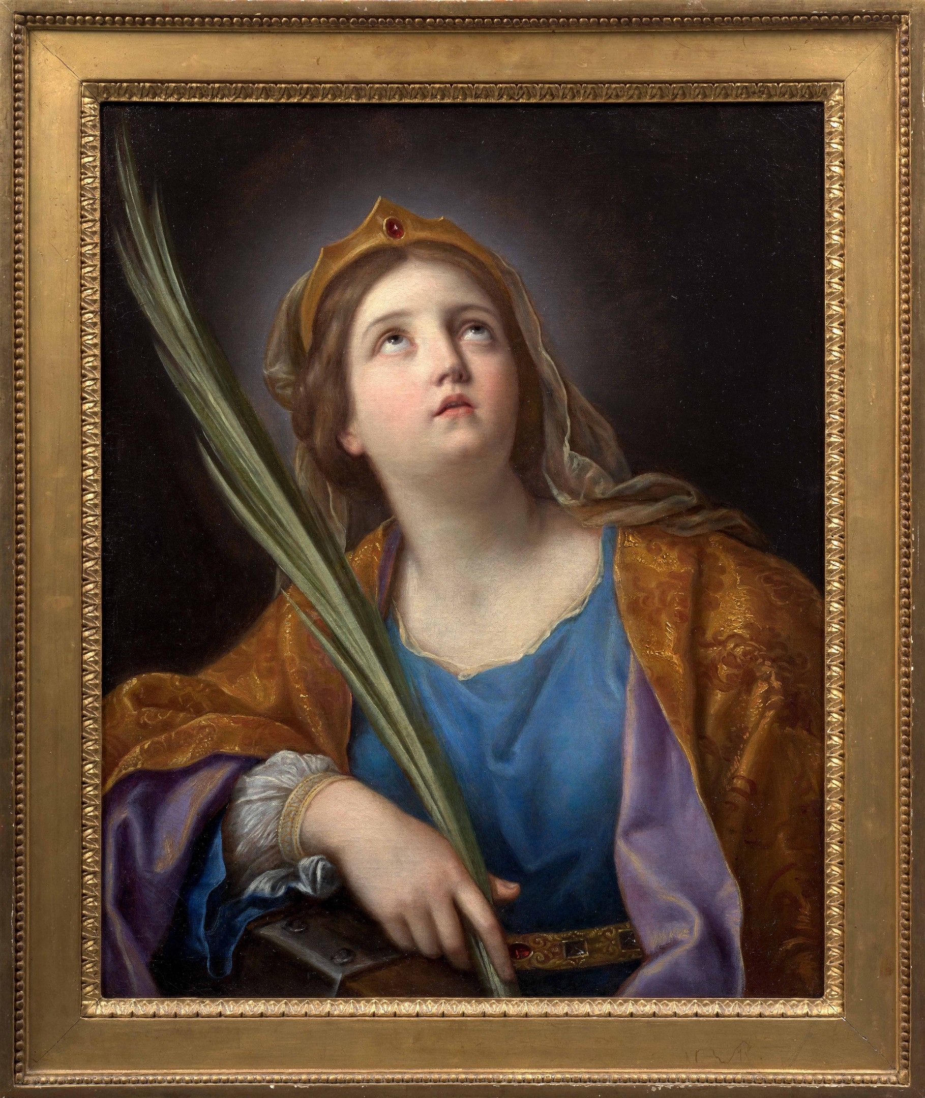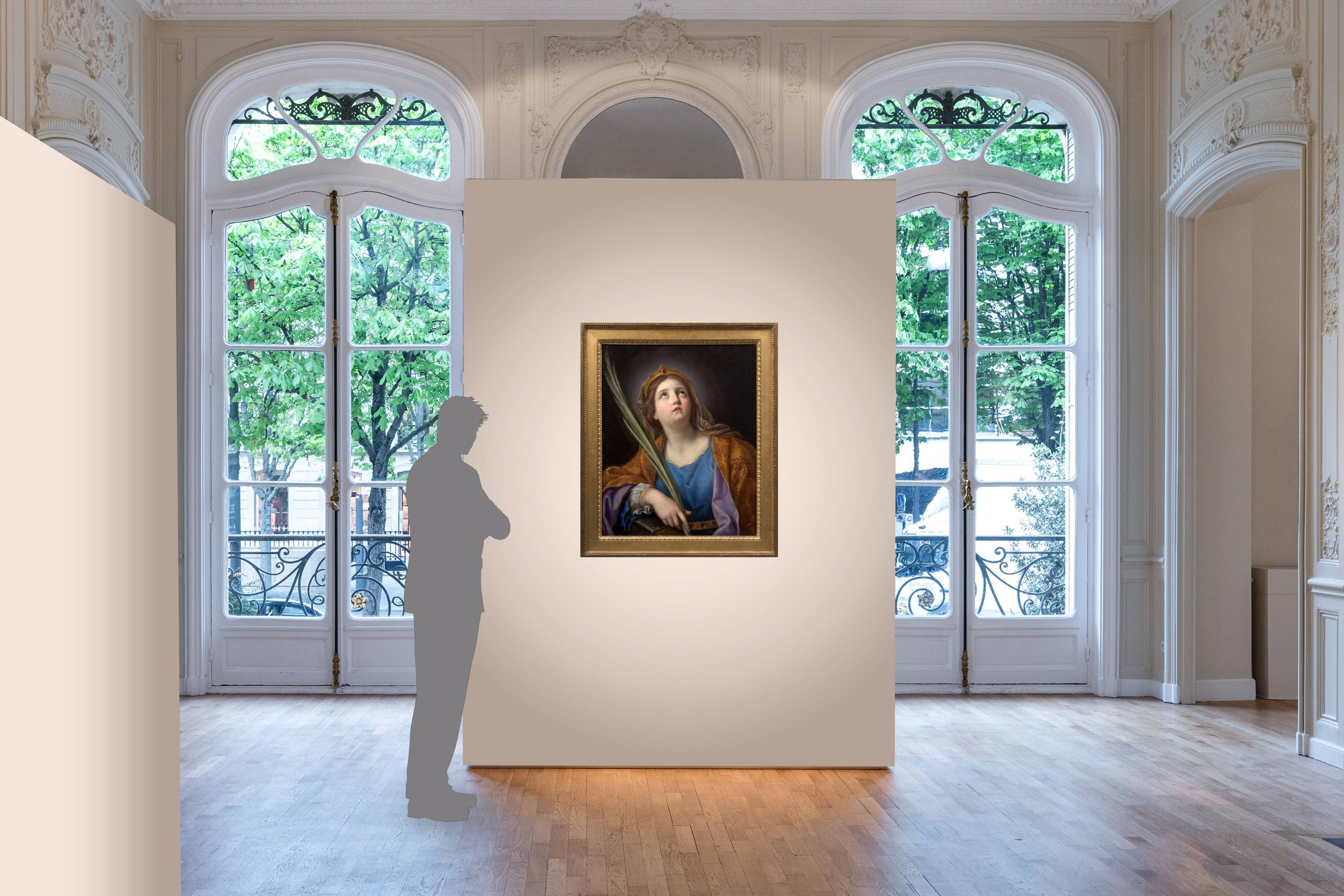 Raising her eyes to heaven, Saint Catherine holds the palm of her martyrdom and leans on the wheel, the instrument of her torture. Having spent more than twenty years in Italy, Troyes-born painter Pierre Mignard remained deeply influenced by the Bolognese masters, and more particularly by the work of the Dominiquin and Guido Reni1. The style of this work is reminiscent of the saints painted by these artists, who were particularly popular with the French public in the mid-seventeenth century. The Jean-Baptiste-Pierre Lebrun sale catalogue mentions a 'Sainte-Catherine, de grandeur naturelle, vue en buste. Tableau dans le style du Dominicain' (sale from 11 April to 8 May 1791, no. 189, height: 26 inches; width, 21 inches), which could be our painting. Another Saint Catherine by Pierre Mignard is mentioned in the collections of the canon and provost of the Abbey of Saint-Martin in Tours, J.B. Guyot, whose sale was organised on 8 March 1809: "Bust of Saint Catherine, of natural size, with her head turned almost to the front, looking up to heaven, wearing a religious expression, holding the martyr's palm in her right hand" (lot 151, height: 27 inches; width, 22 inches). The artist's after-death inventory also mentions a study of Saint Catherine: "Item unne esbauche d'unne Ste Chaterine de quatre pieds et demie sur trois et demy no 224 (en fait 225) prisé 800 livres tournois", possibly preparatory to our painting2. Another version of our painting in a similar format, from the collections of Louis La Caze, is in the collections of the Musée d'Art, d'Archéologie et de Sciences naturelles de Troyes (MAH.D.872.7). It is therefore difficult to confirm that the sources actually mention our painting and not the one in Troyes.