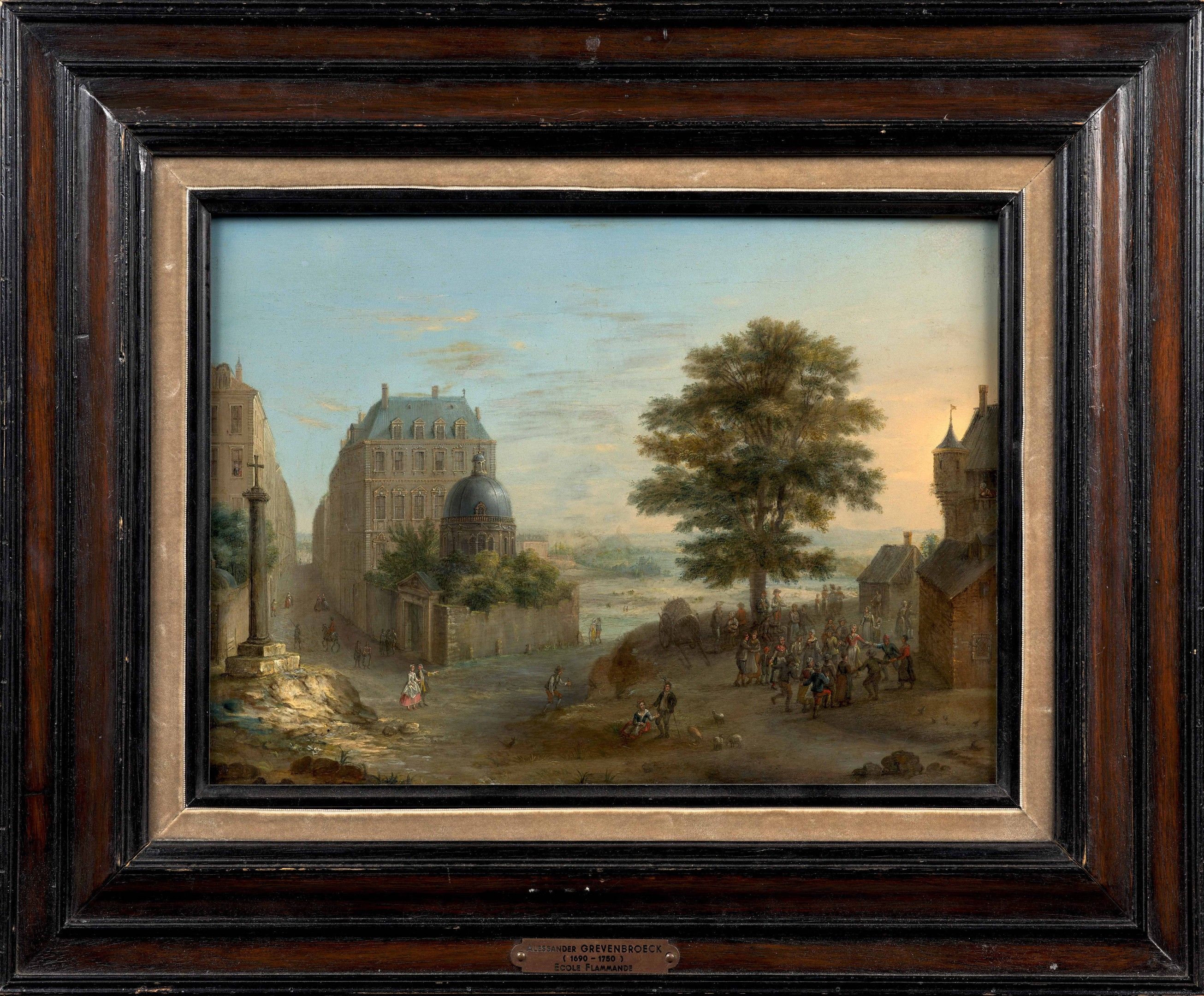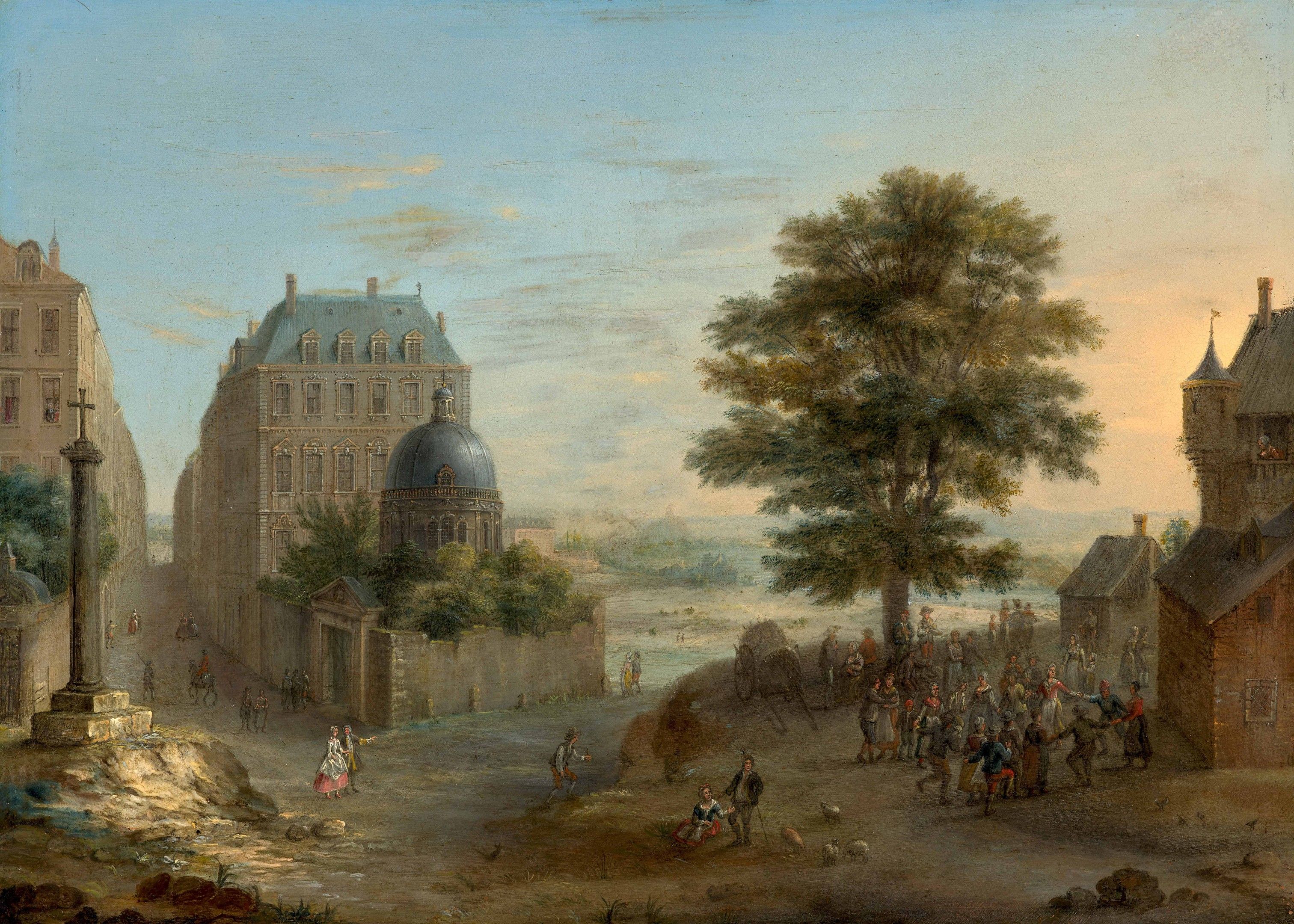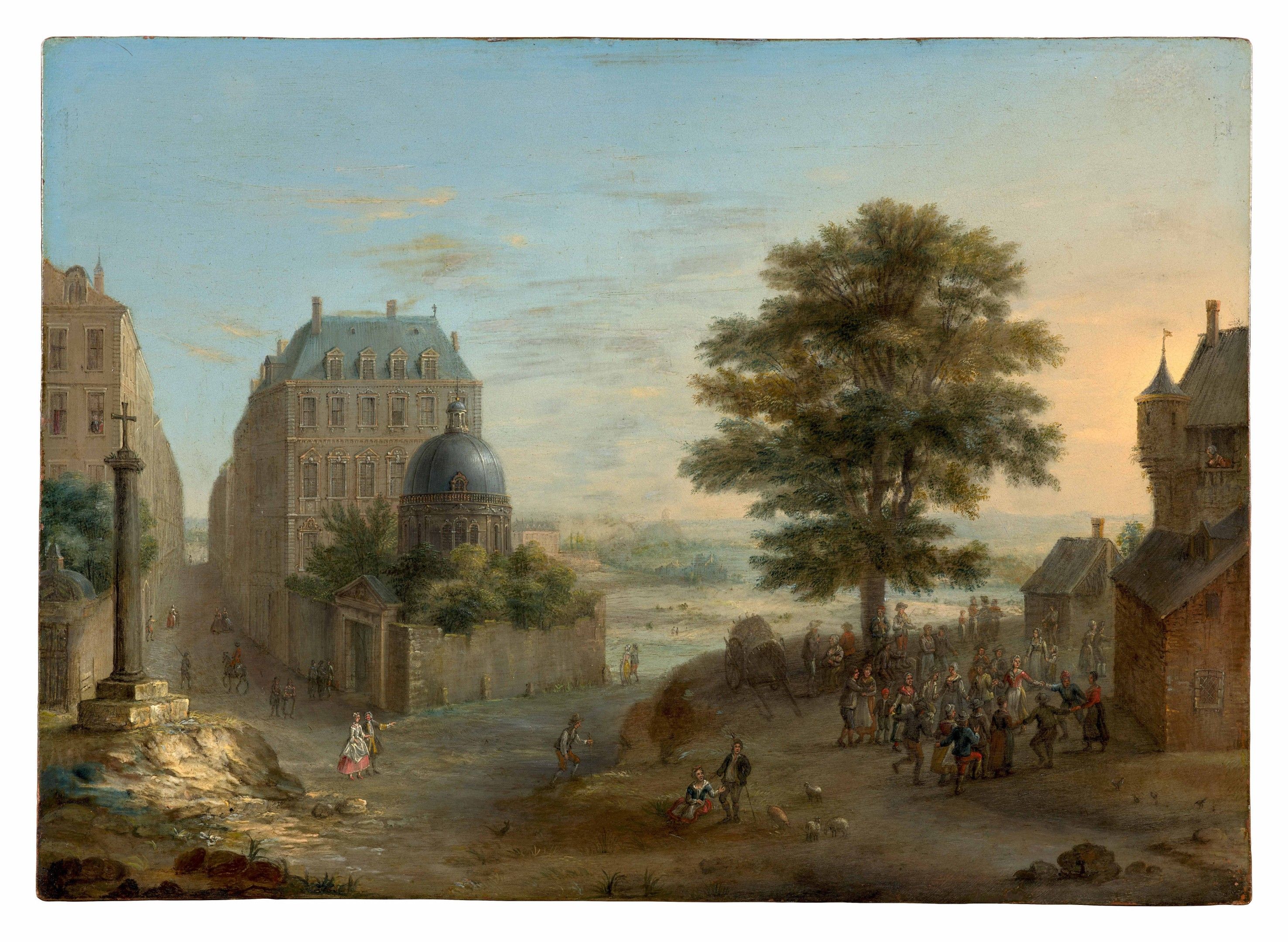 Presumed view of Paris with the Seine river in background, oil on copper, by C. L. Grevenbroeck