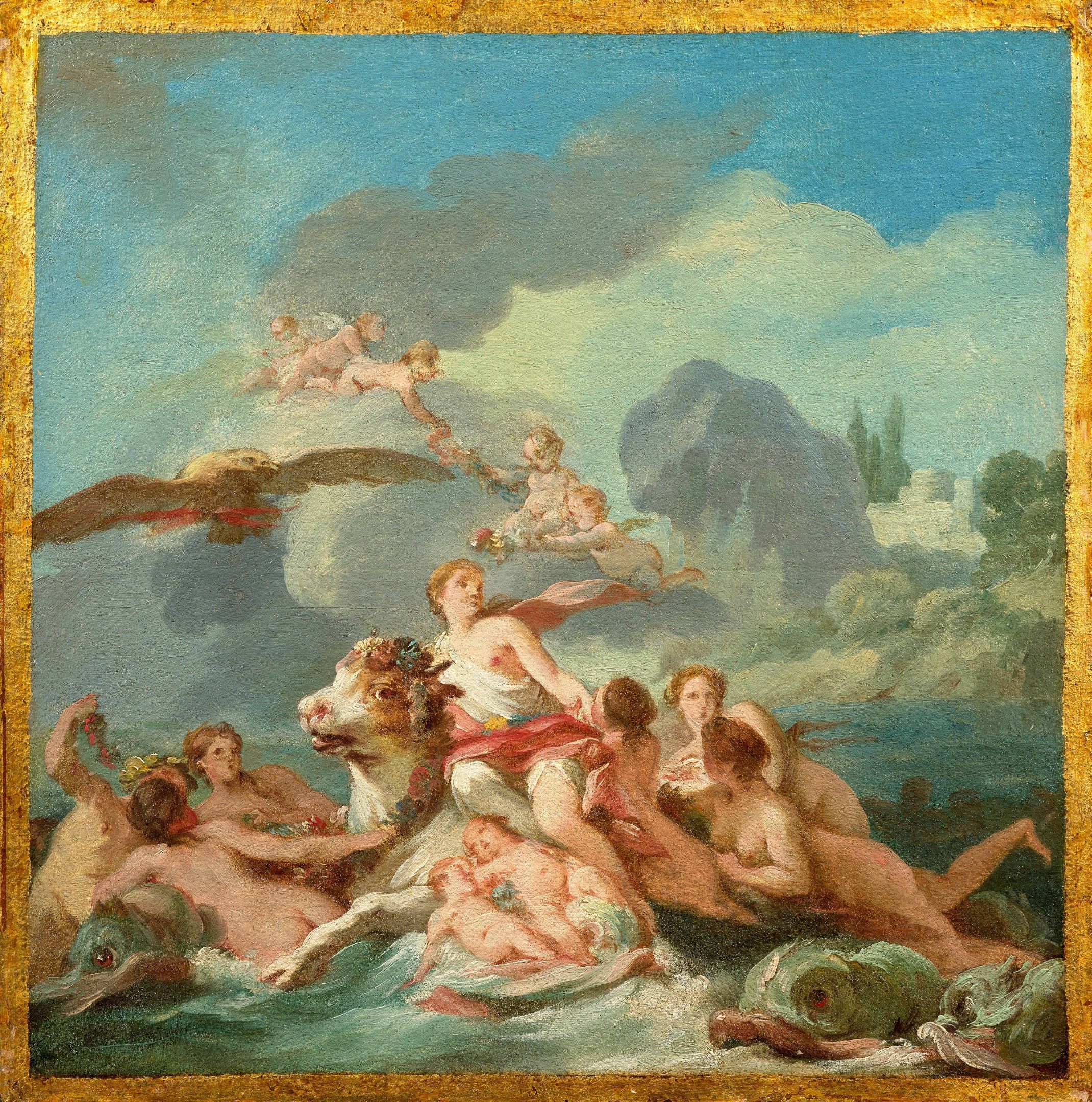 The Abduction of Europa, oil on paper laid down on canvas, by J.-B. M. Pierre