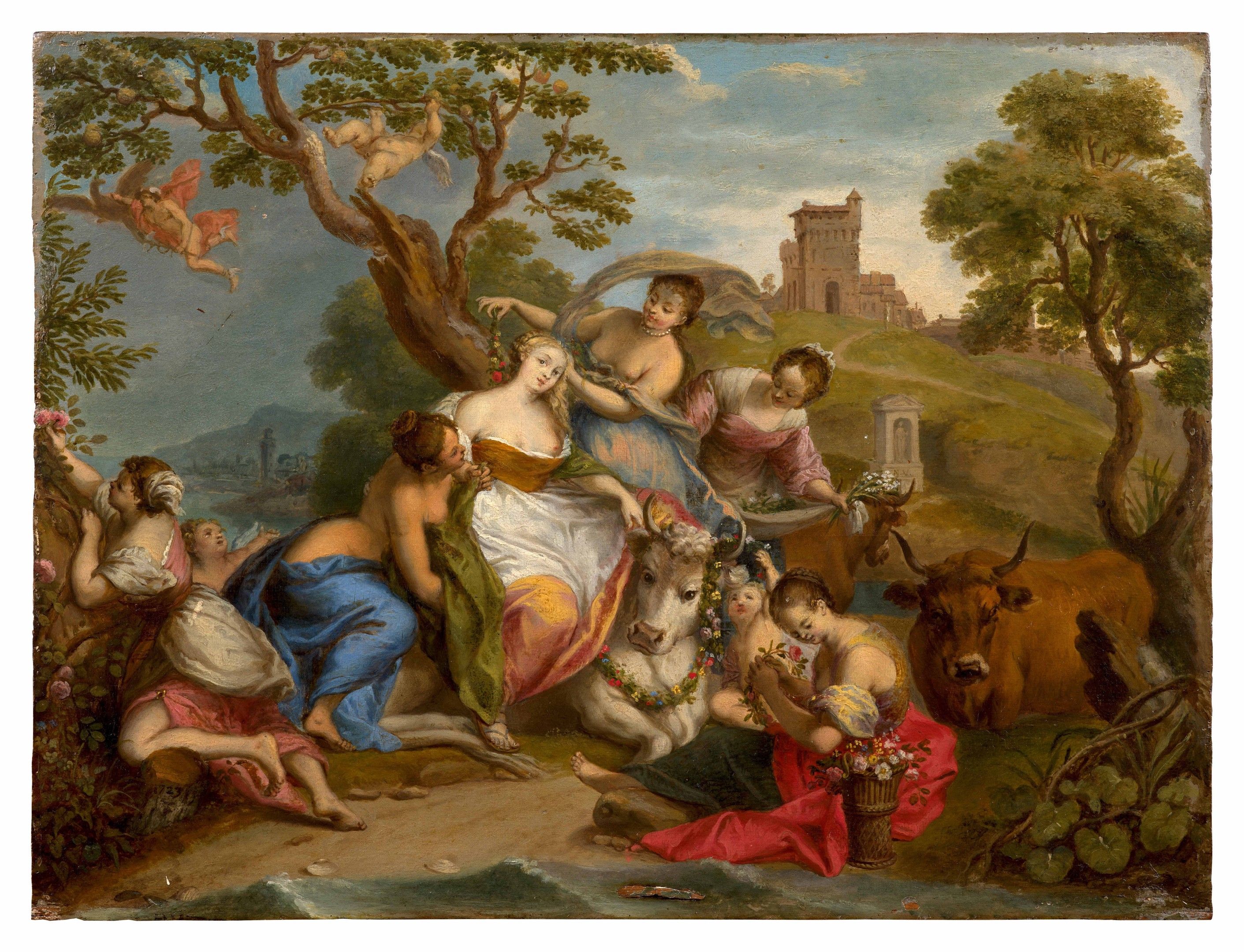 The Abduction of Europa, oil on oak panel, dated, by N. Vleughels