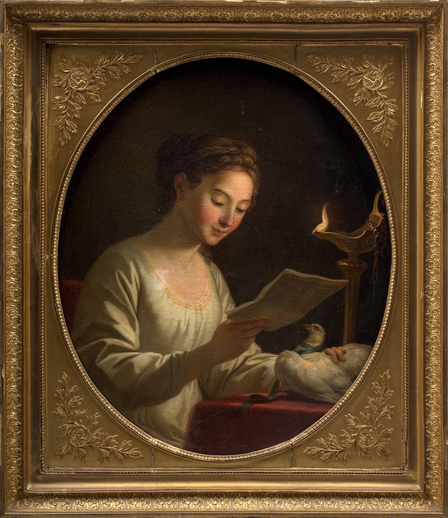 Vestal reading a letter, oil on canvas, signed and dated, by J.-M. Vien