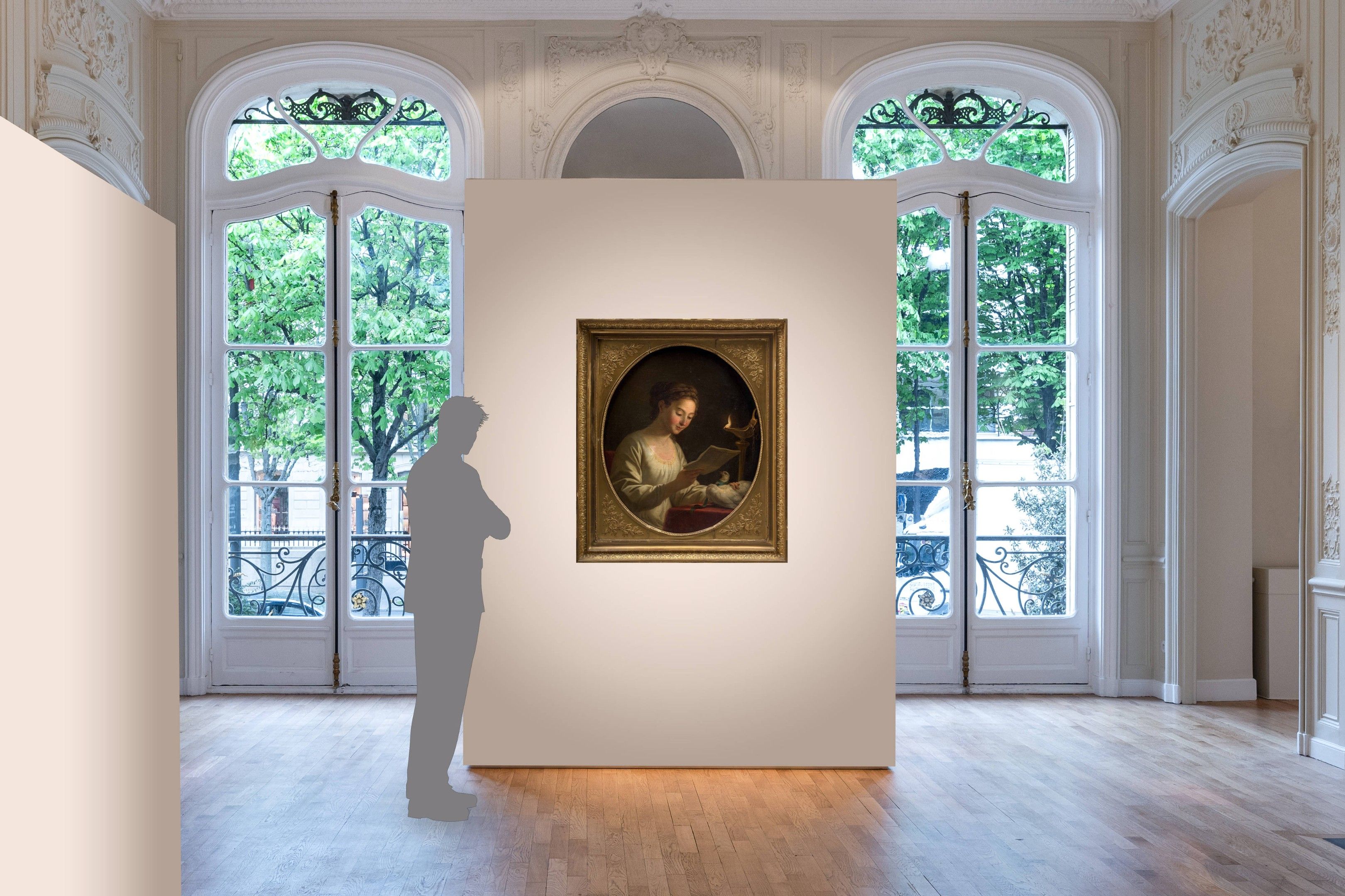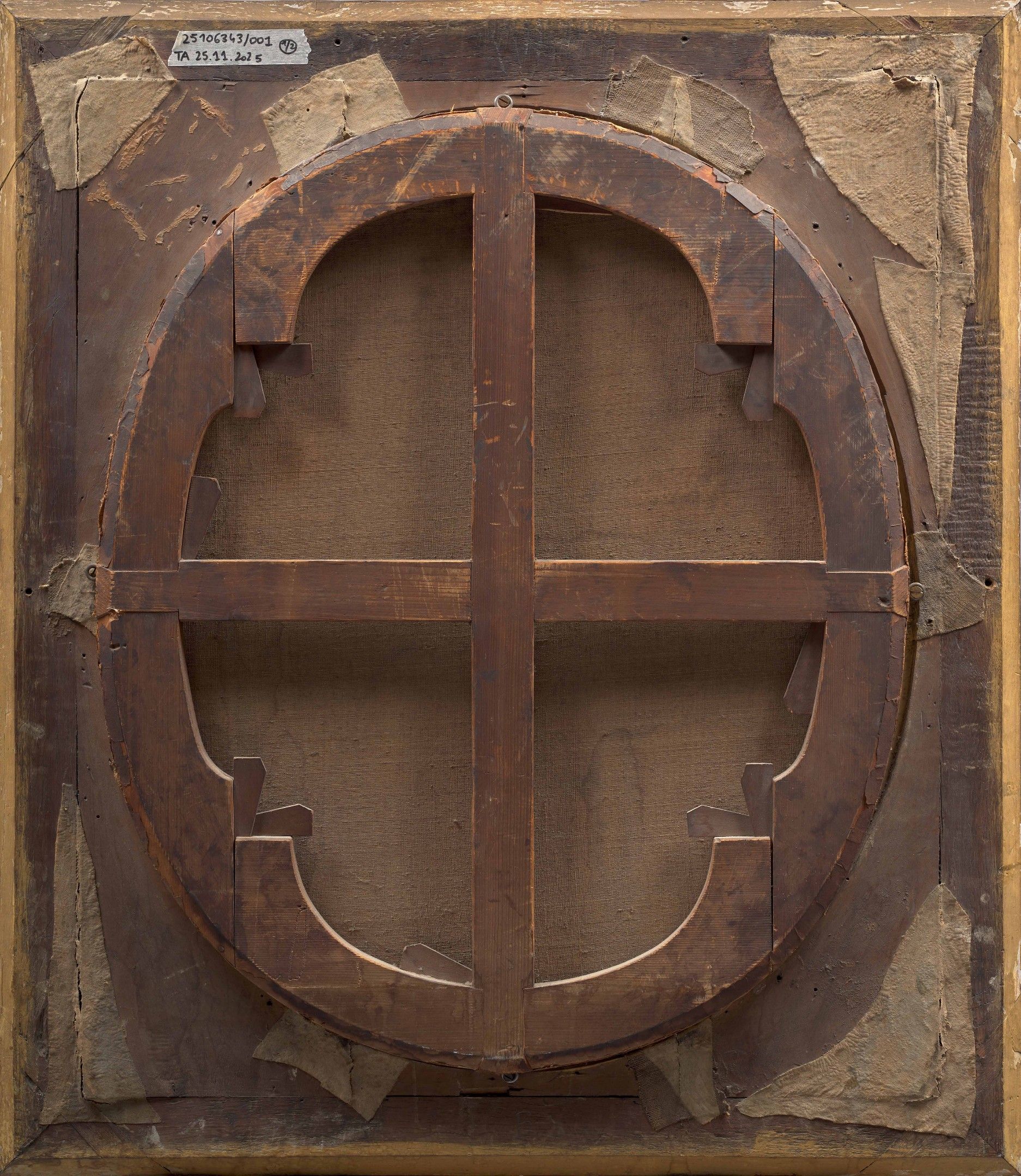 Joseph-Marie Vien produced several series of oval paintings around 1754-1755. At the Salon of 1755, Vien exhibited under the same number Buste d'une vestale couronnée de roses, Prêtresse tressant une couronne de fleurs and Prêtresse brodant pour l'ornement d'un temple1. A sketch for the Prêtresse brodant pour l'ornement d'un temple and preparatory drawings for the three paintings in the Salon of 1755 are in the Musée des Beaux-Arts in Béziers2. Three other subjects listed in the artist's catalogue raisonné can be related to our painting: Jeune fille venant de former une couronne, Jeune grecque considérant un nid d'oiseaux and Une femme qui arrose un pot de fleurs3.