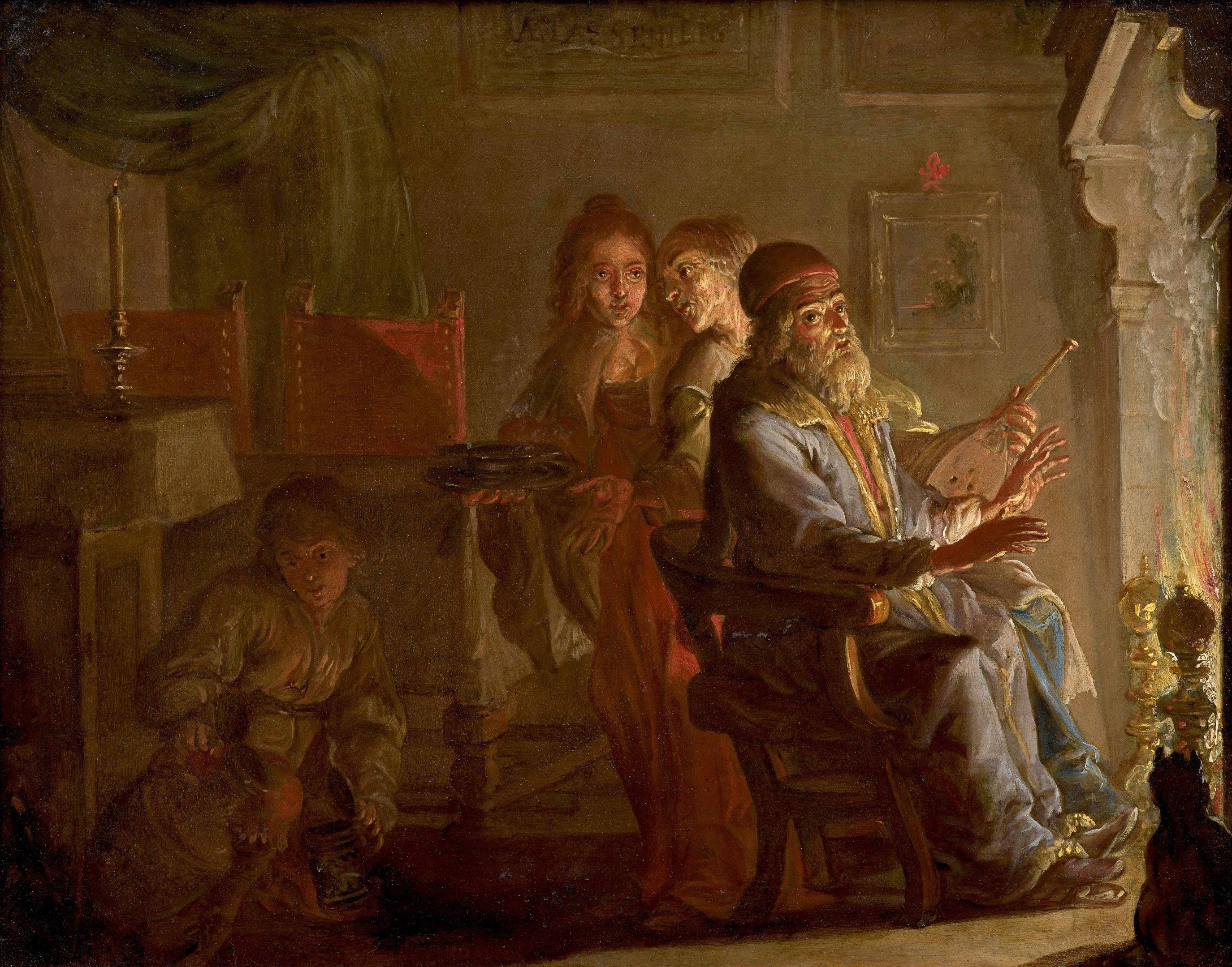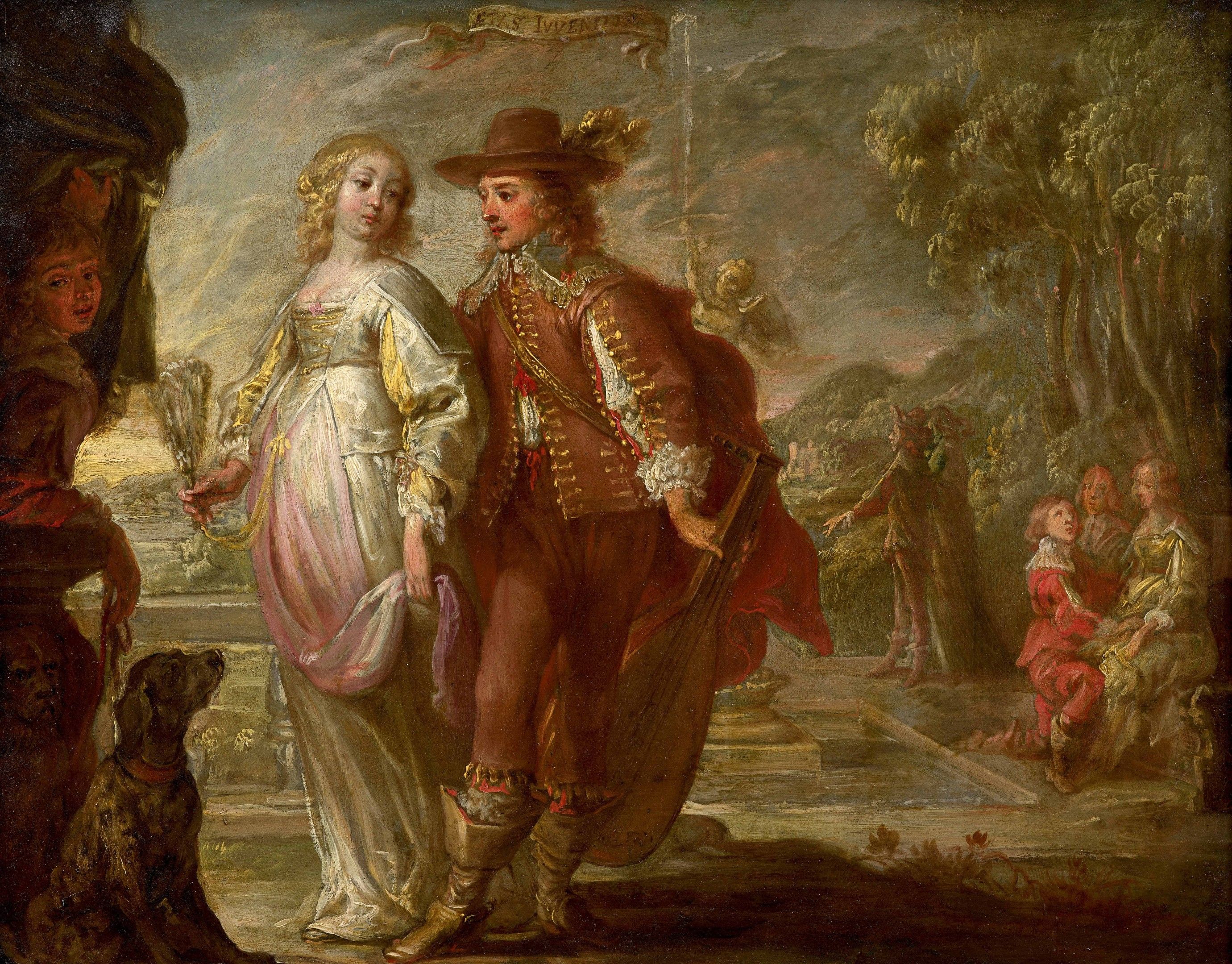 Allegory of Old Age and Allegory of Youth, oils on copper, a pair, by J. de L'Ange