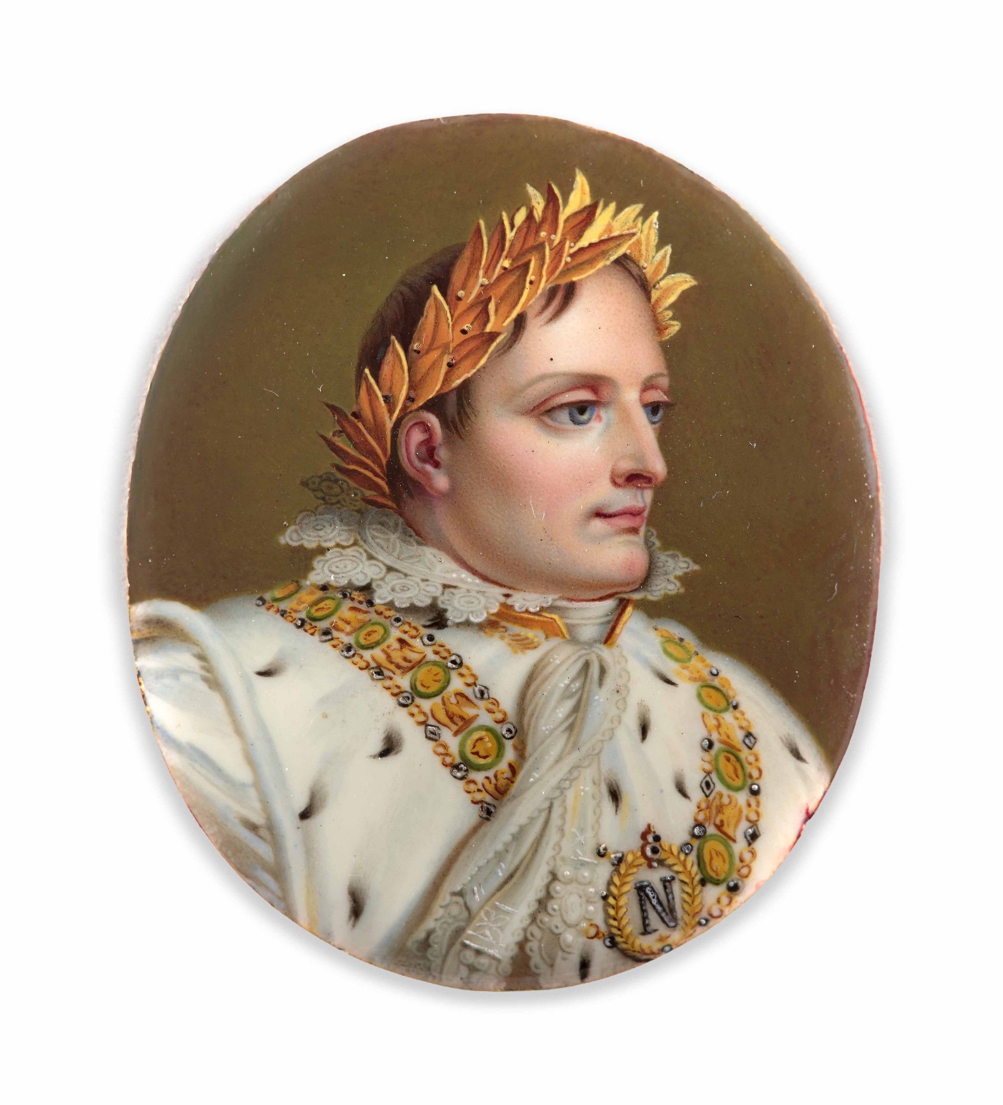 Emperor Napoleon I in coronation robes, after Anne-Louis Girodet de Rouçy-Trioson, enamel on gold, attr. to J.-F. Soiron