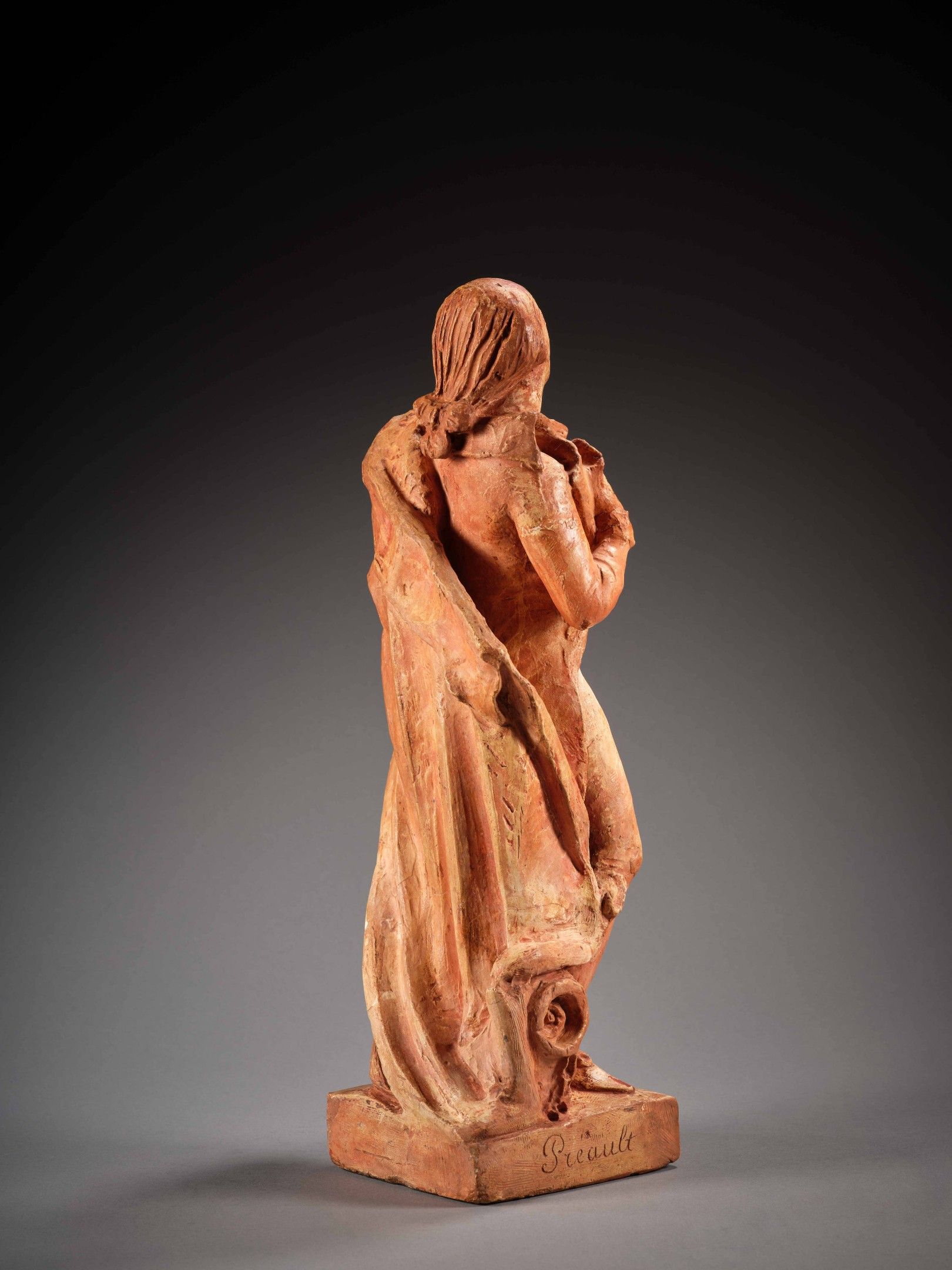 Keen to take part in this prestigious project, and after several unsuccessful applications, Préault was finally entrusted in 1856 with one of the elements in this colossal programme of over three hundred sculptures for the new palace décor. The statue of André Chénier was completed in just five months, and Charles Bataille commented on its execution: ''Préault has almost made an academy, but a true academy, intelligent, luminous, internally enlightened'' (p.54 of Leroy-Jay's work).