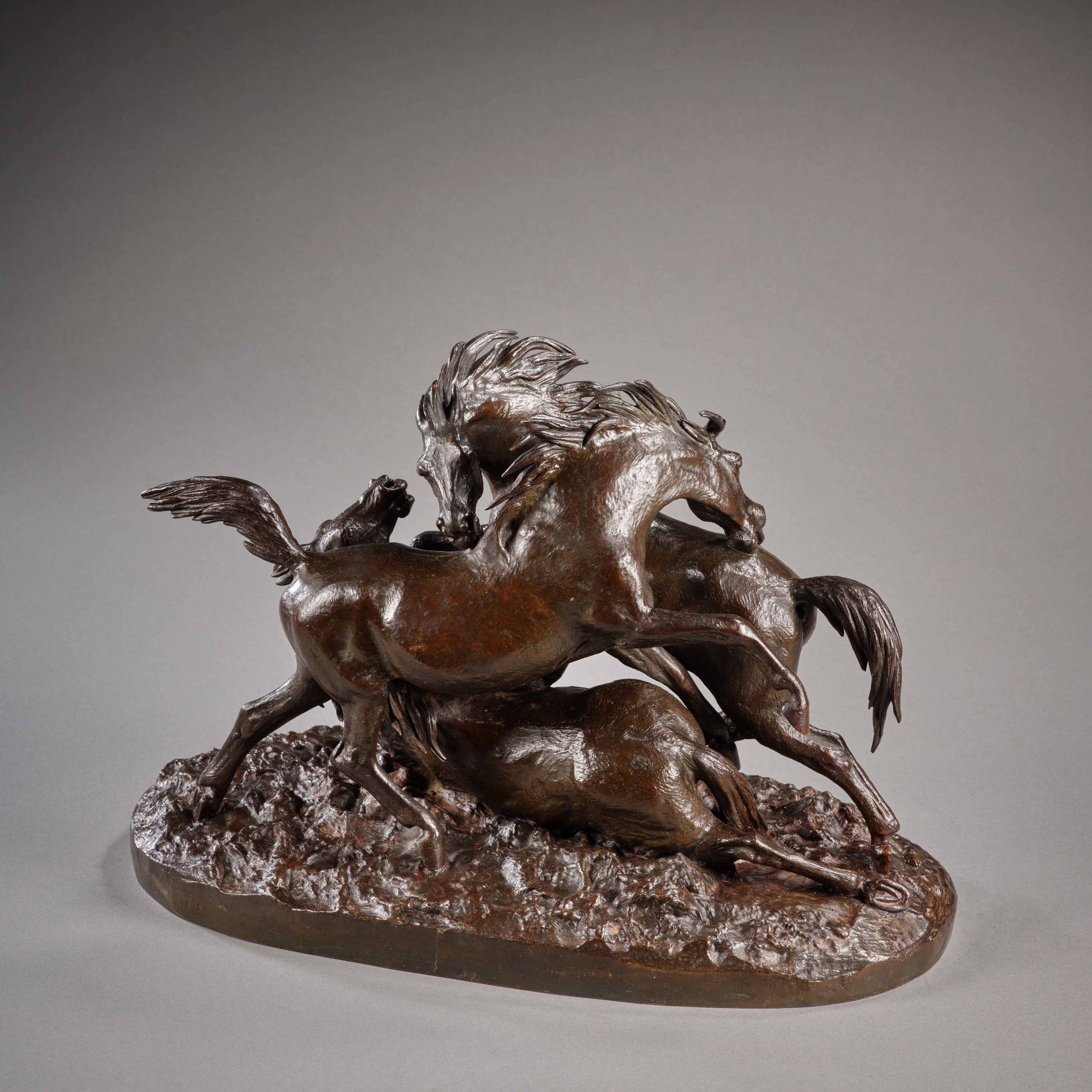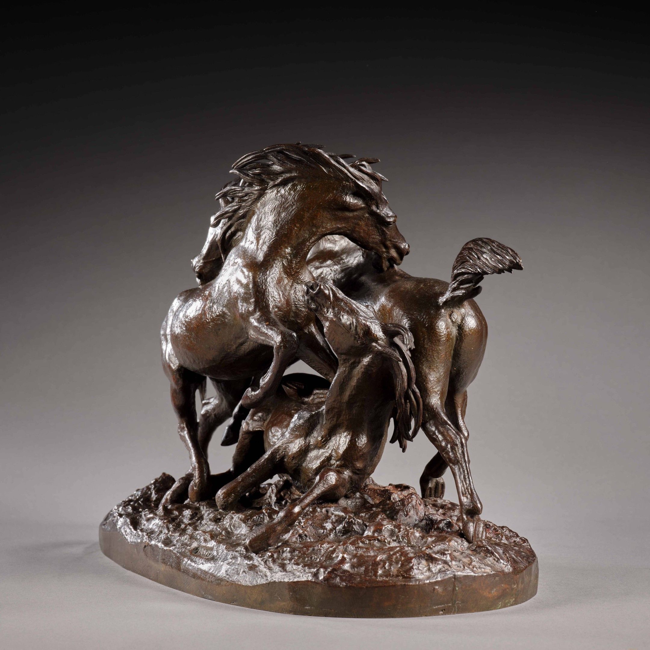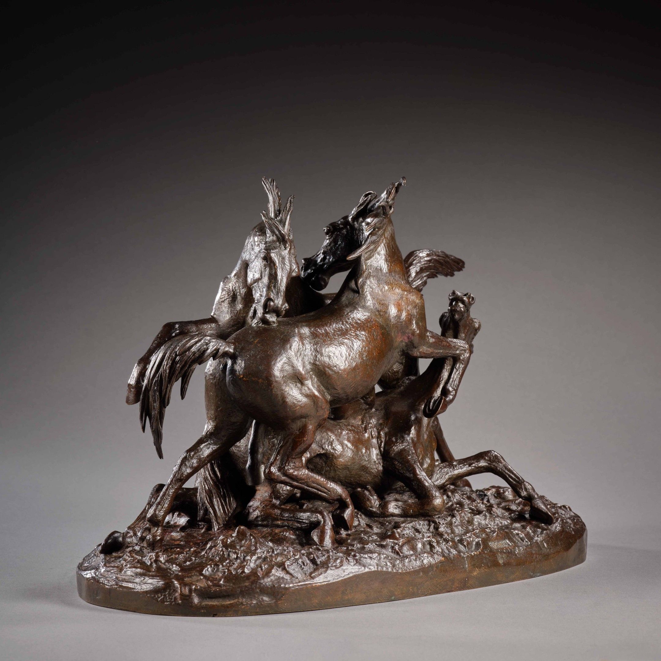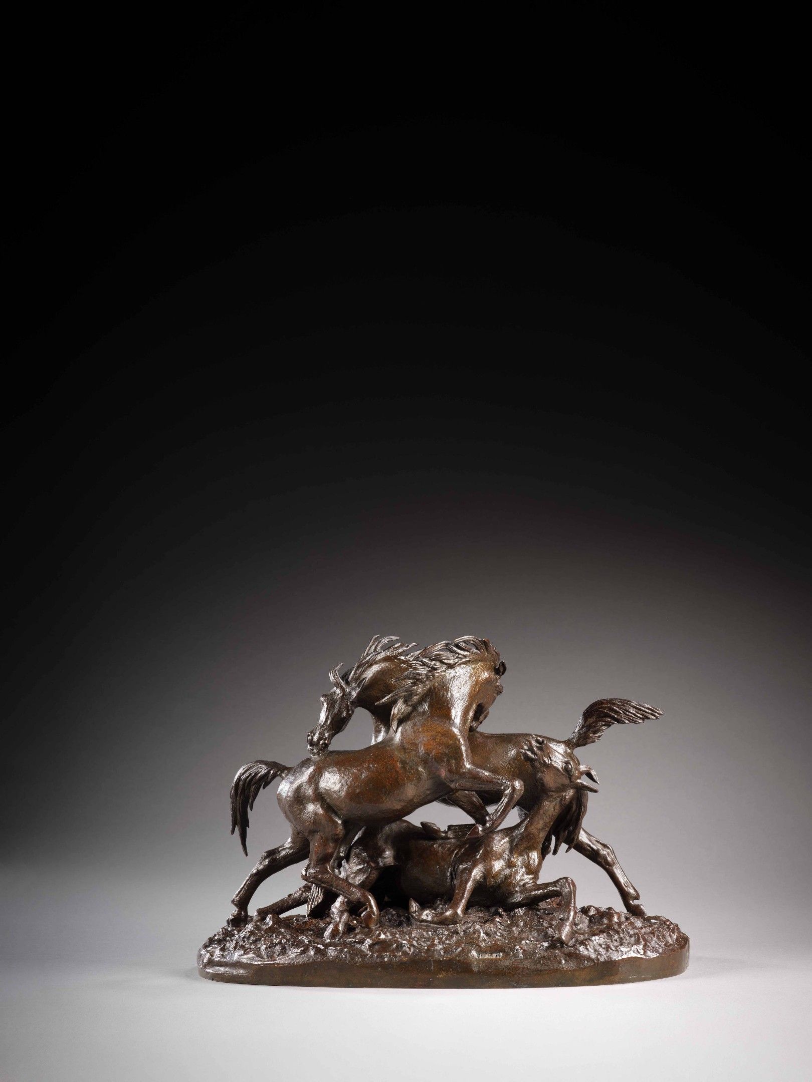 In designing this important group of three horses, Fratin was certainly inspired by the Duncan's horses by the English sculptor John Graham Lough, exhibited in London in 1832 and now in the Los Angeles County Museum of Art.