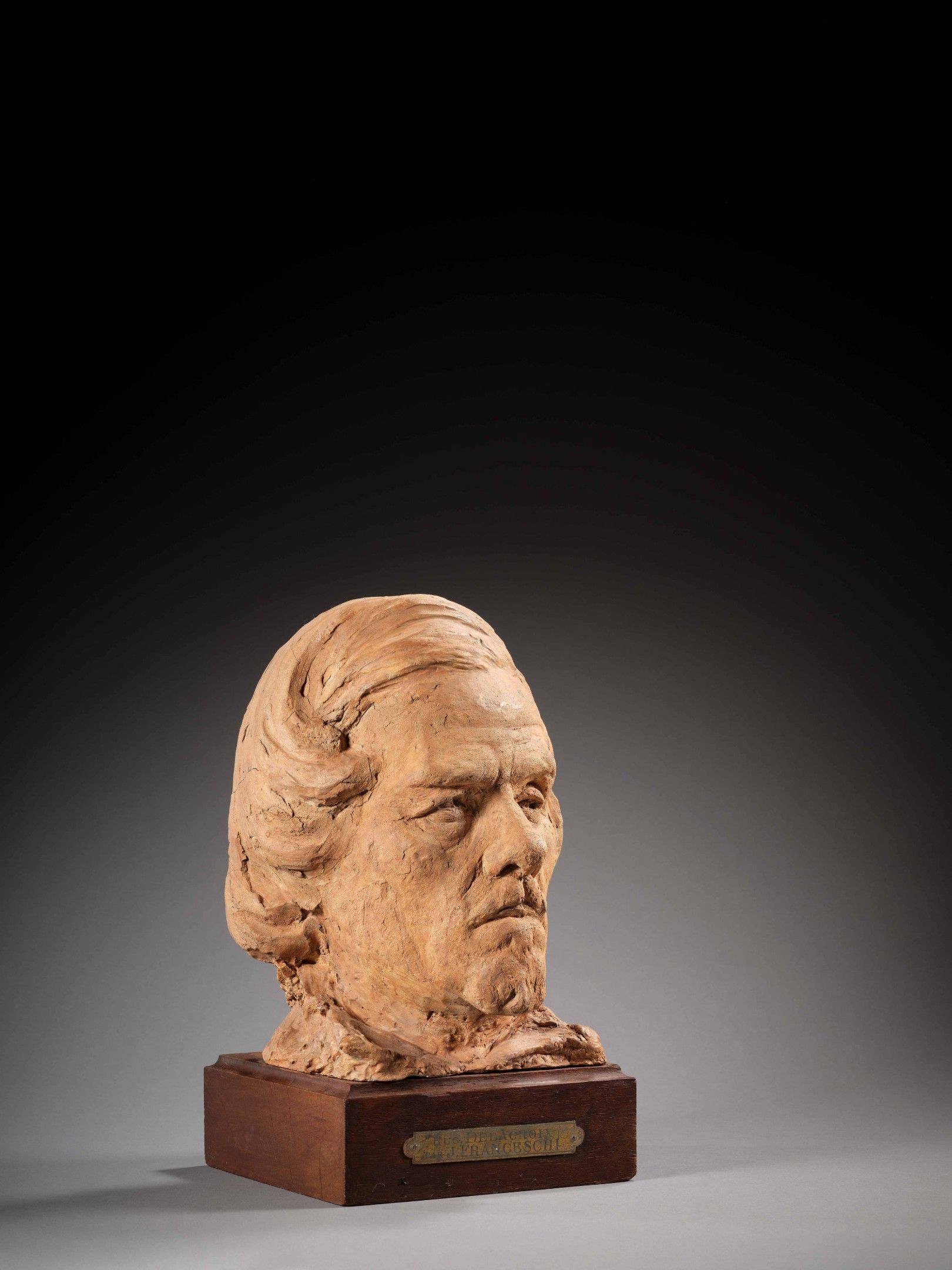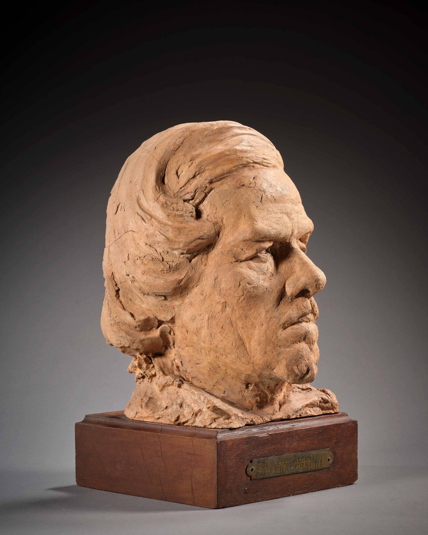 Portrait of Eugène Delacroix, terracotta and patinated plaster, signed, by L. J. Franceschi