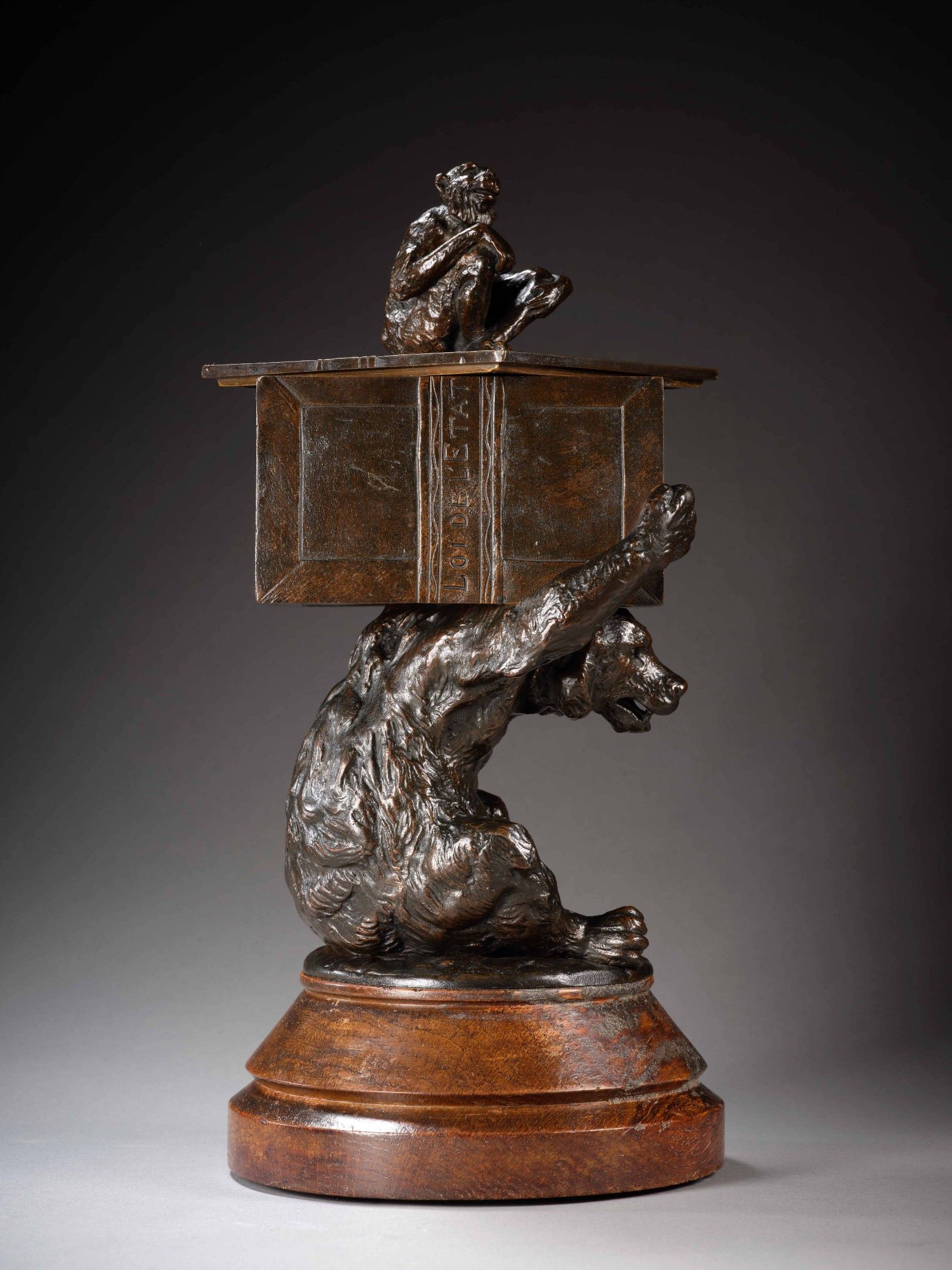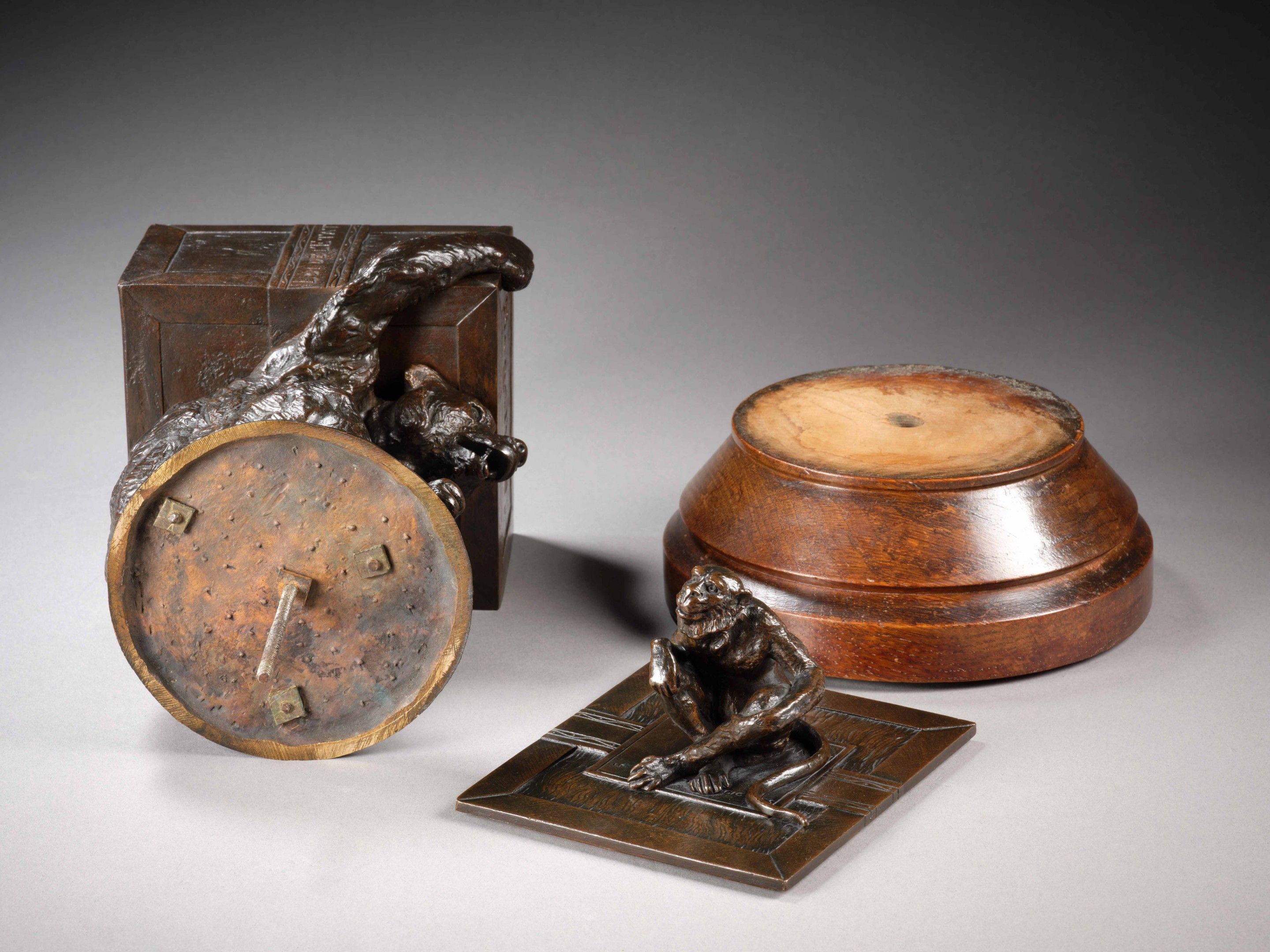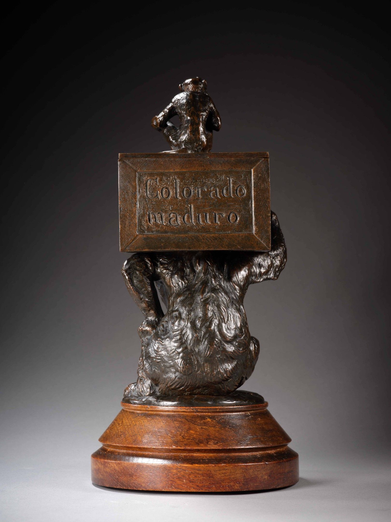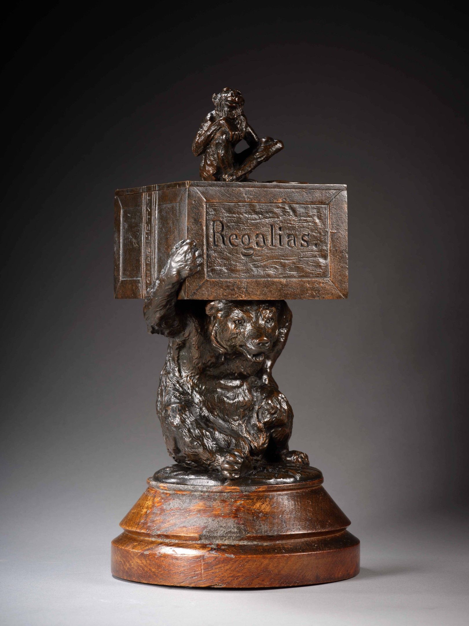 Bear and monkey cigar holder, bronze, light brown patina, by C. Fratin