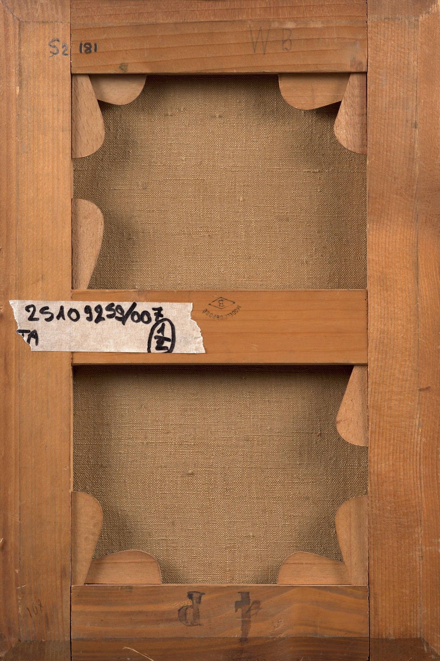 Signed on the reverse with the initials 'W.B' on the stretcher
