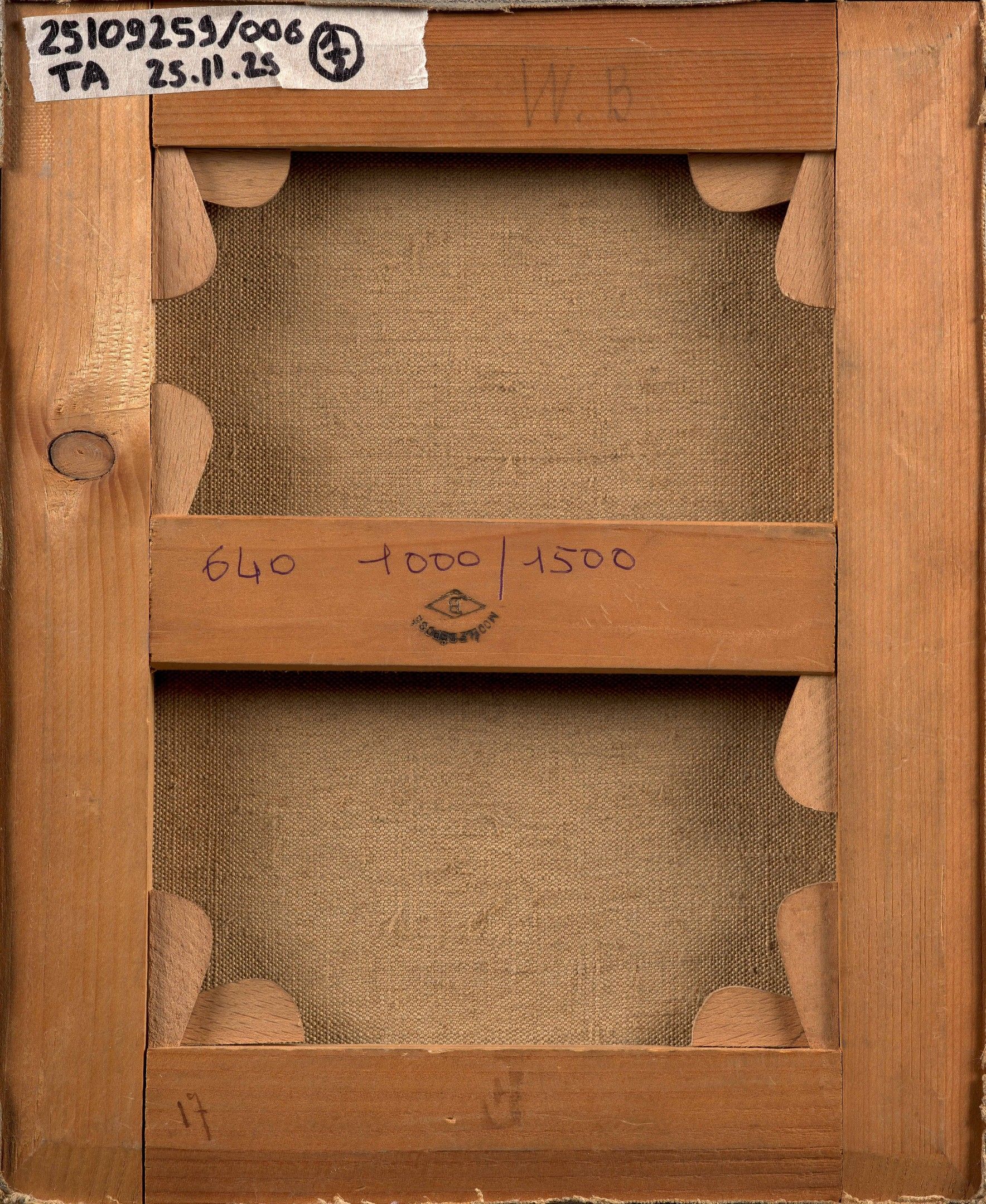 Signed on the reverse with the initials 'W.B' on the stretcher