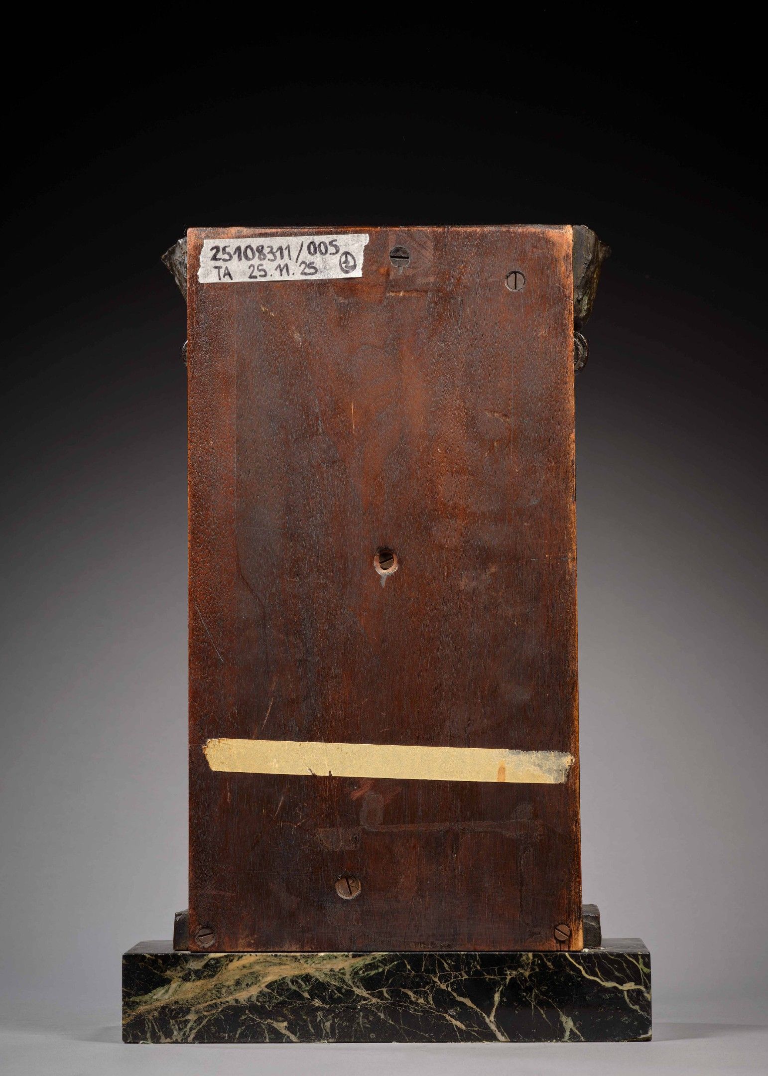 Resting on a white veined green marble base