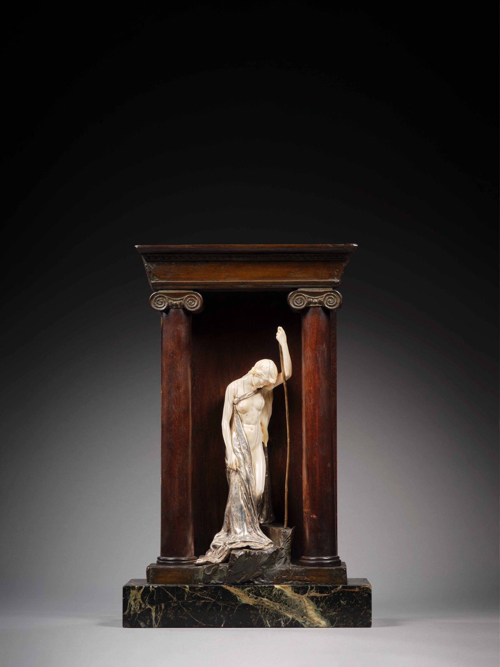 Ivory, bronze and silver-plated metal