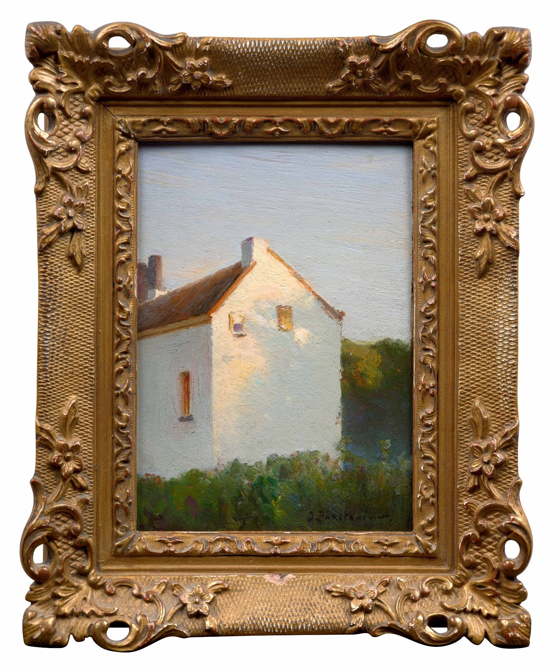 Light effect on a house gable, oil on cardboard, signed, by I. Pokhitonov