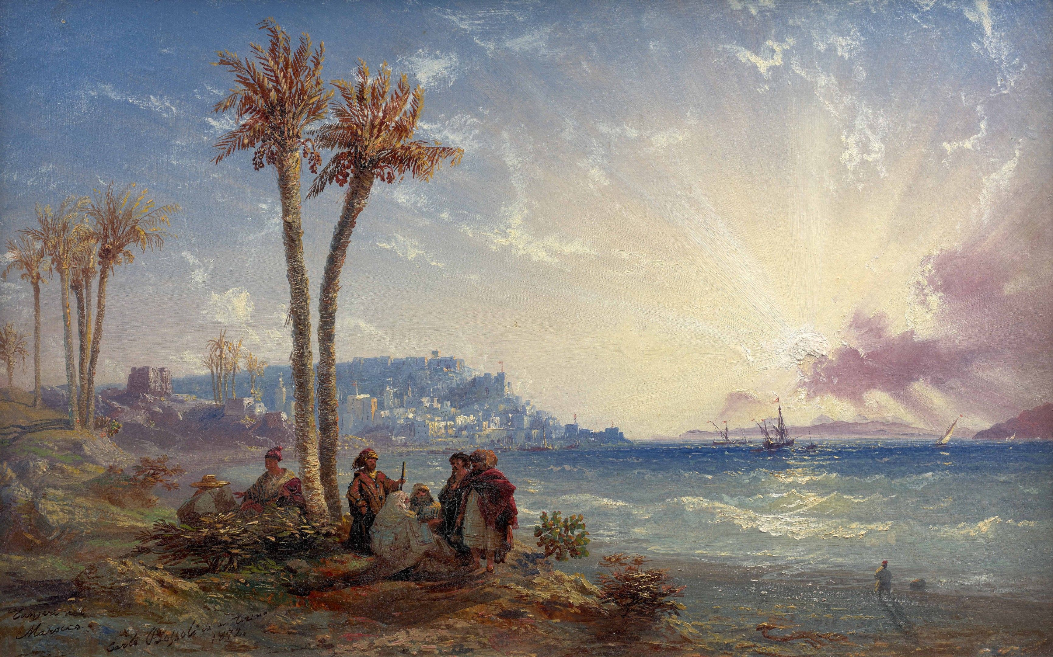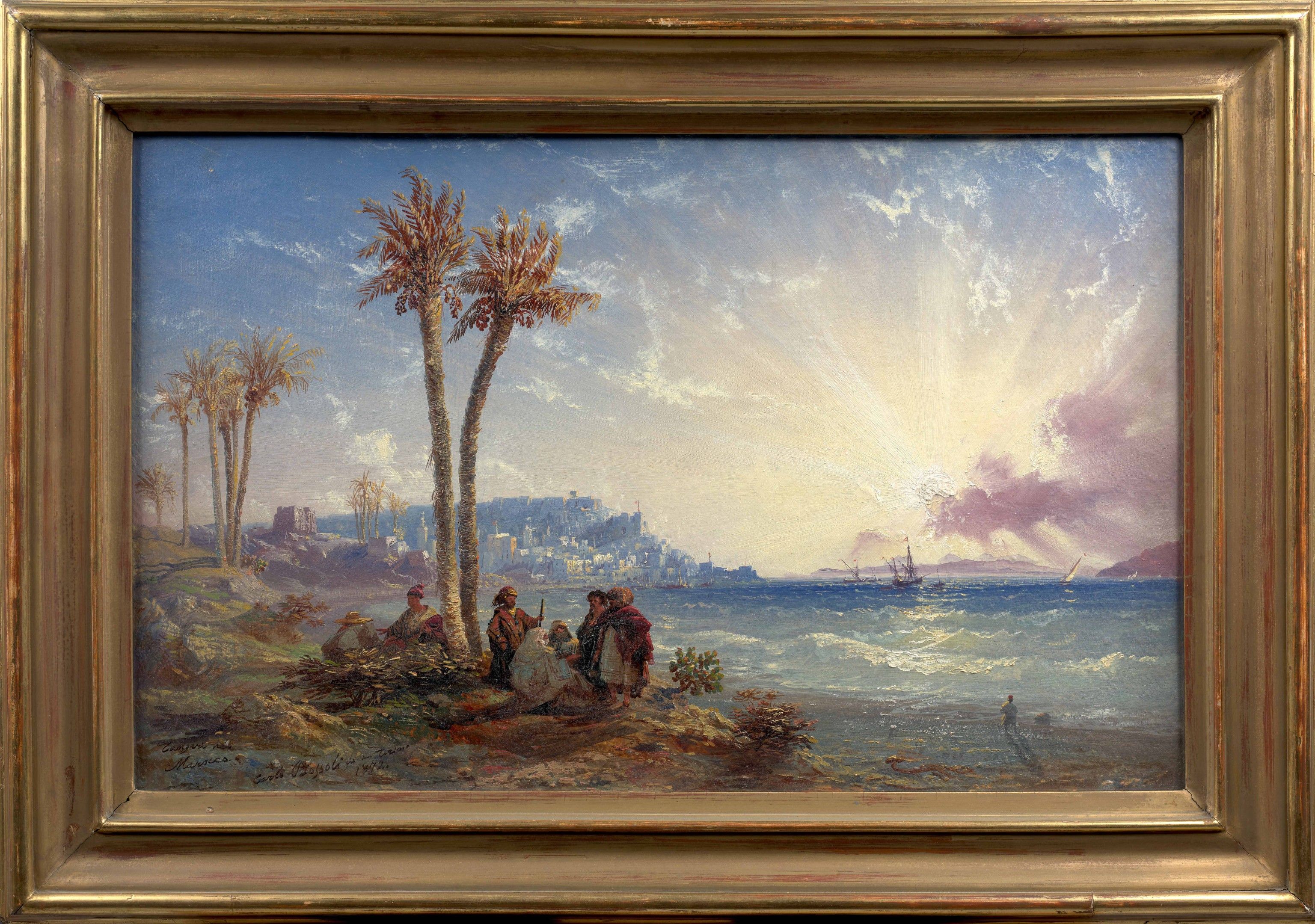 Sunlight effect in front of Tangier, Morocco, oil on paper laid down on canvas, signed and dated, by C. Bossoli