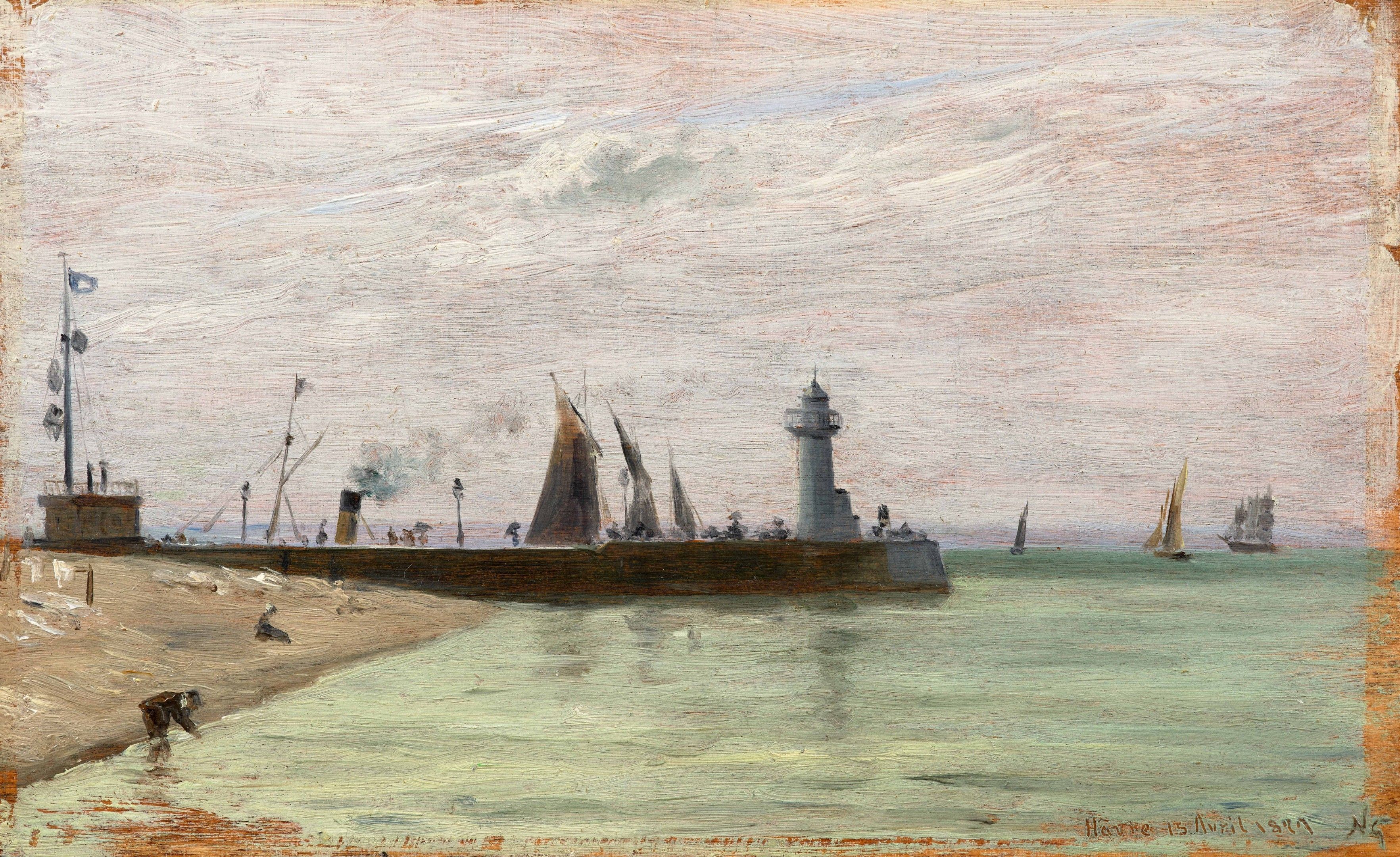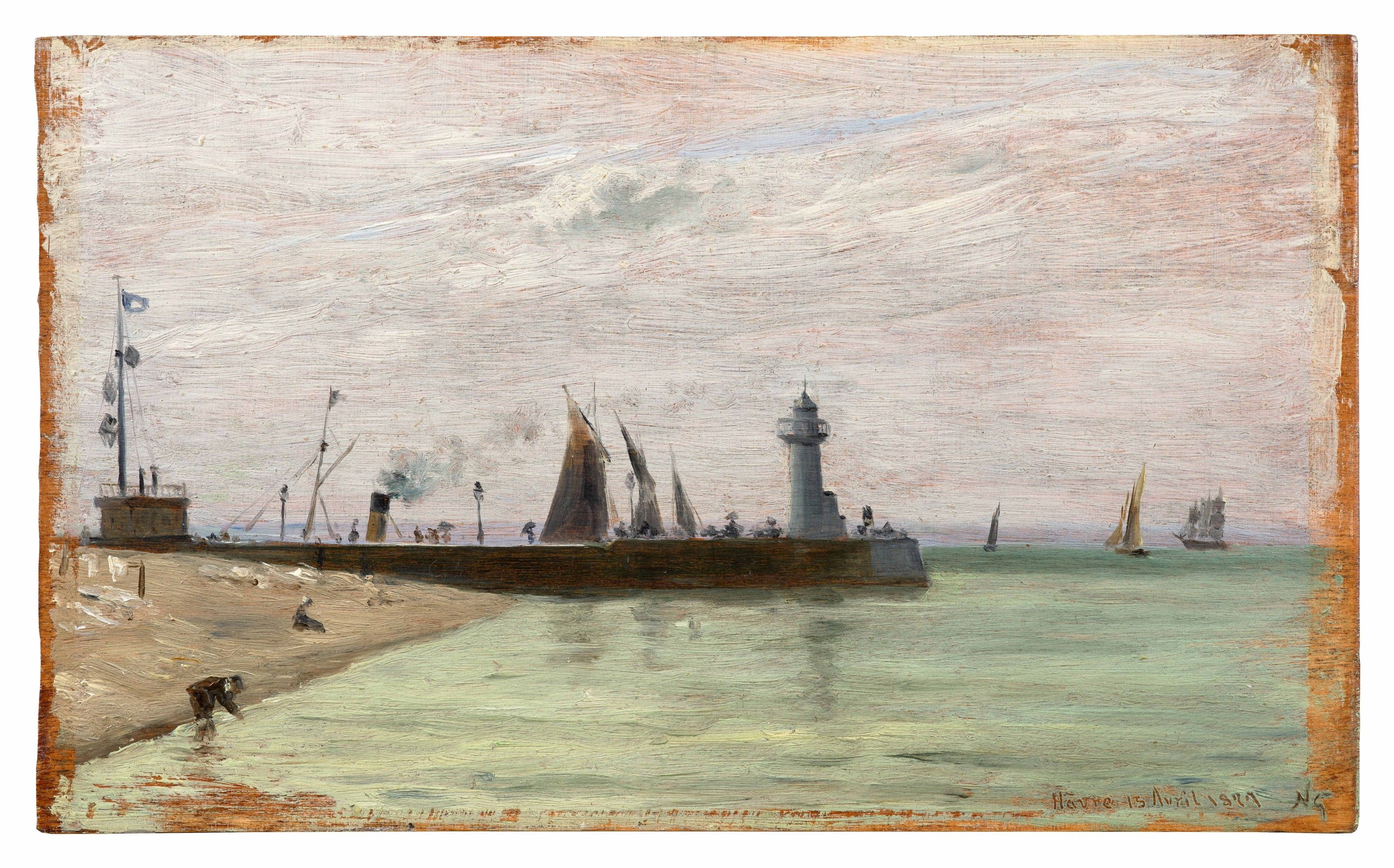 "Port du Havre - La jetée", oil on panel, signed and dated, by N. Goeneutte