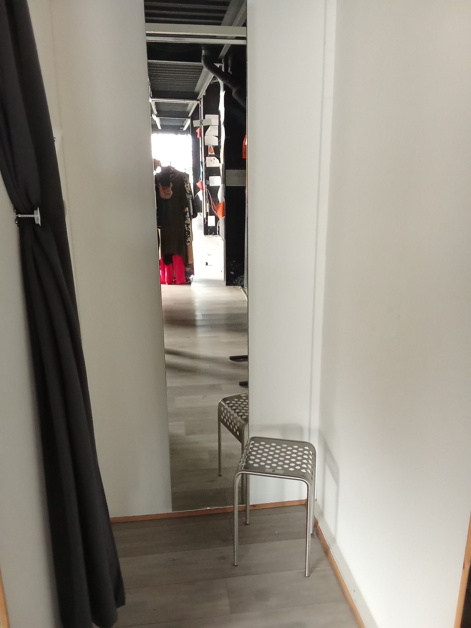 Nine 230 x 40 rectangular mirrors, five stainless steel stools.