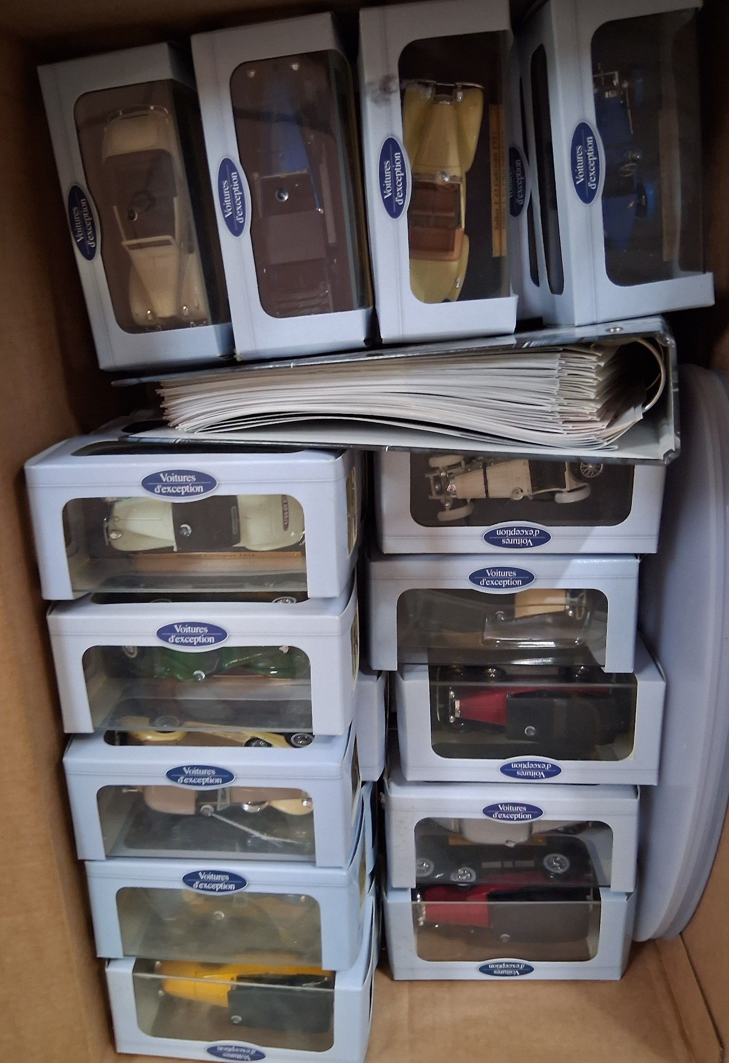 Exceptional cars, Atlas Editions. Set of approximately 41 collector cars in metal, scale 1/43 in their box with a binder.