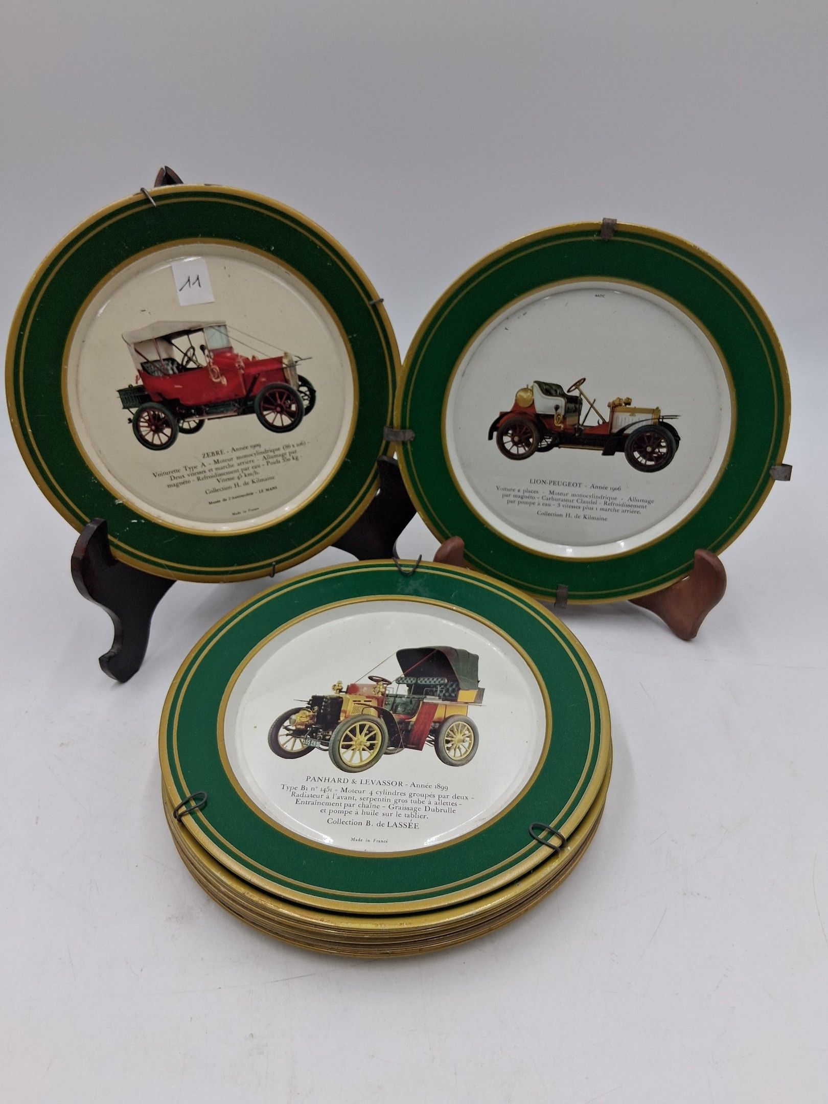 Set of 12 old Shell metal advertising plates decorated with vintage cars (accidents).
