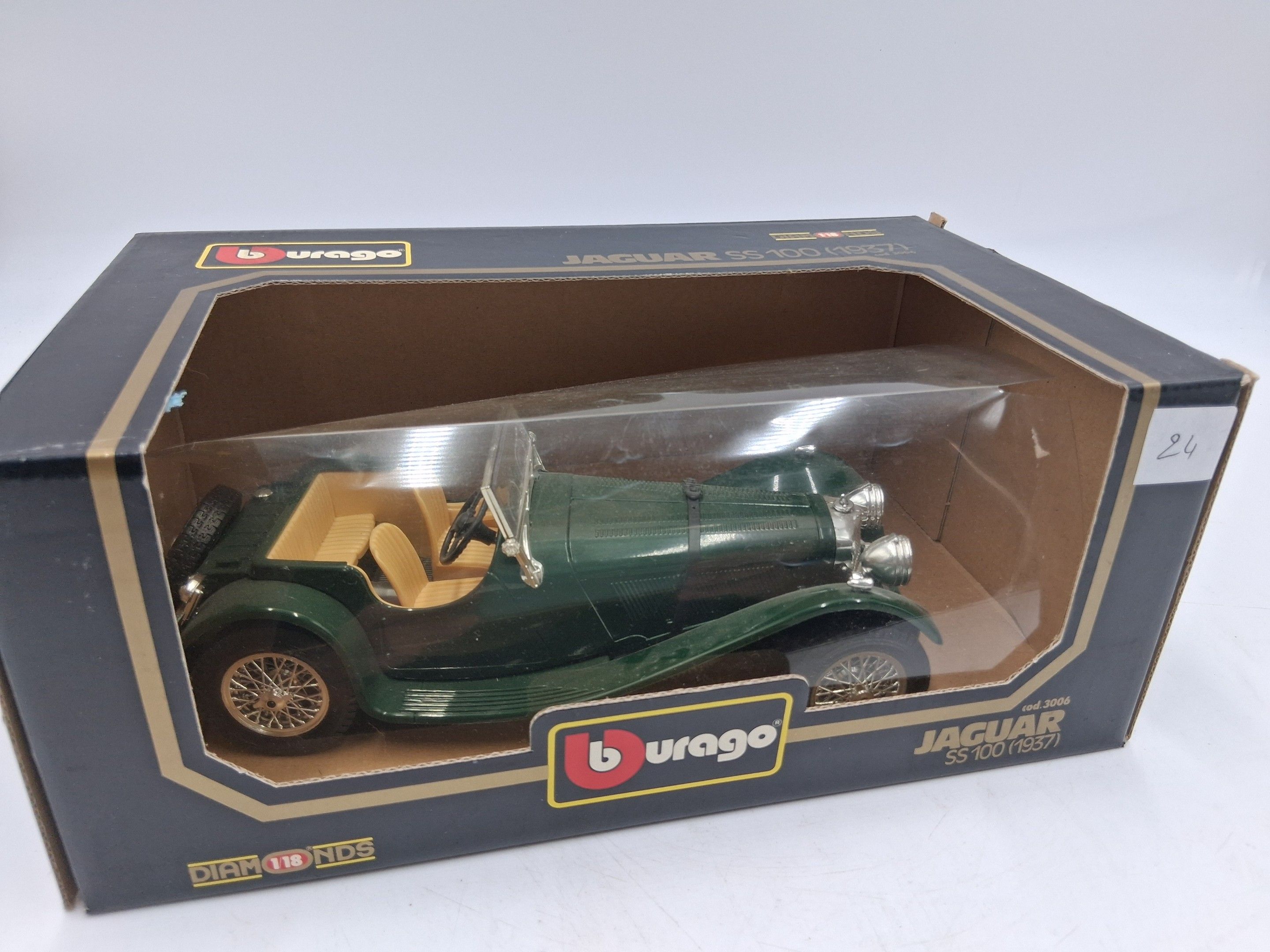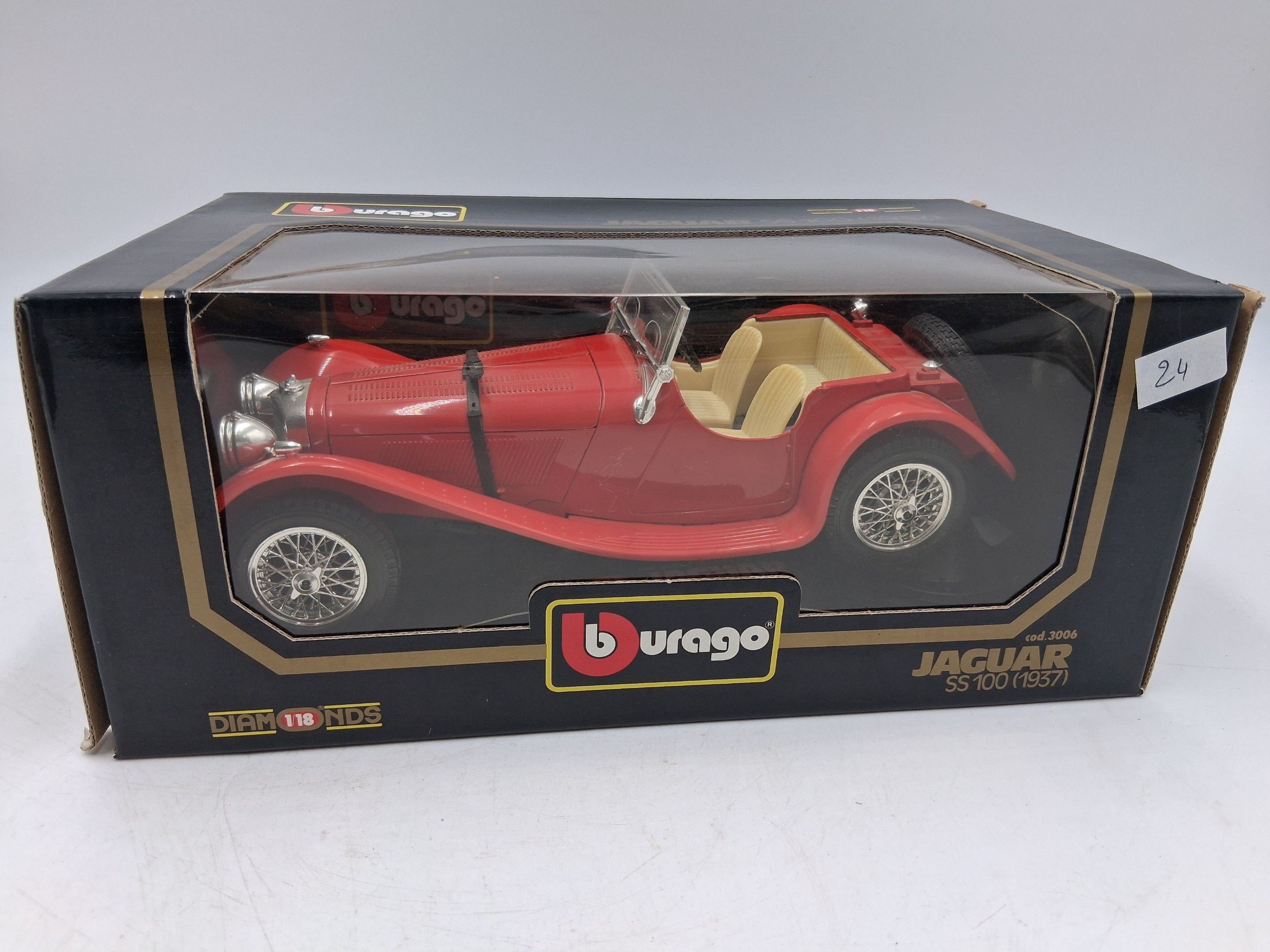 Three Jaguar BURAGO cars, scale 1/18, including: two SS 100 …