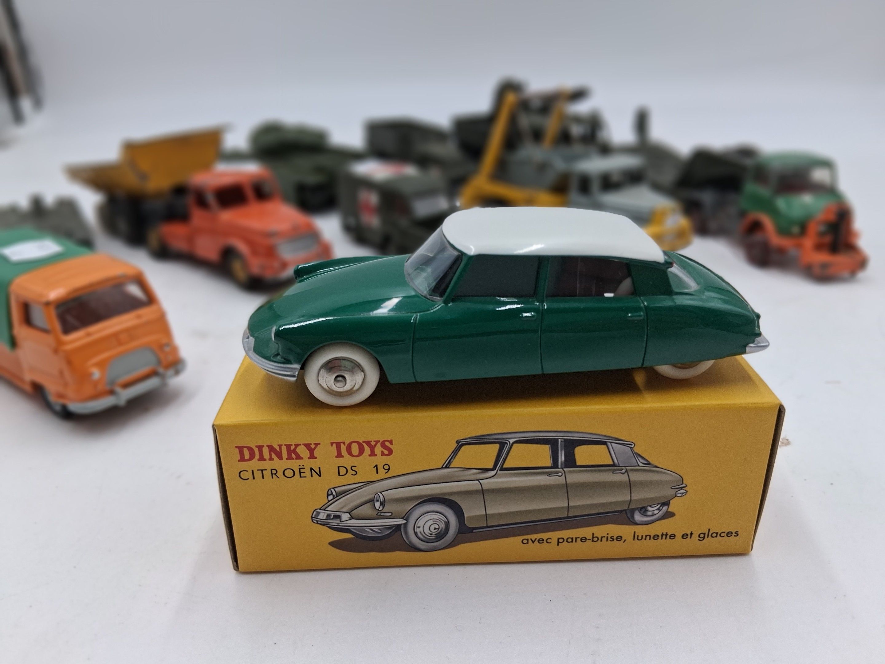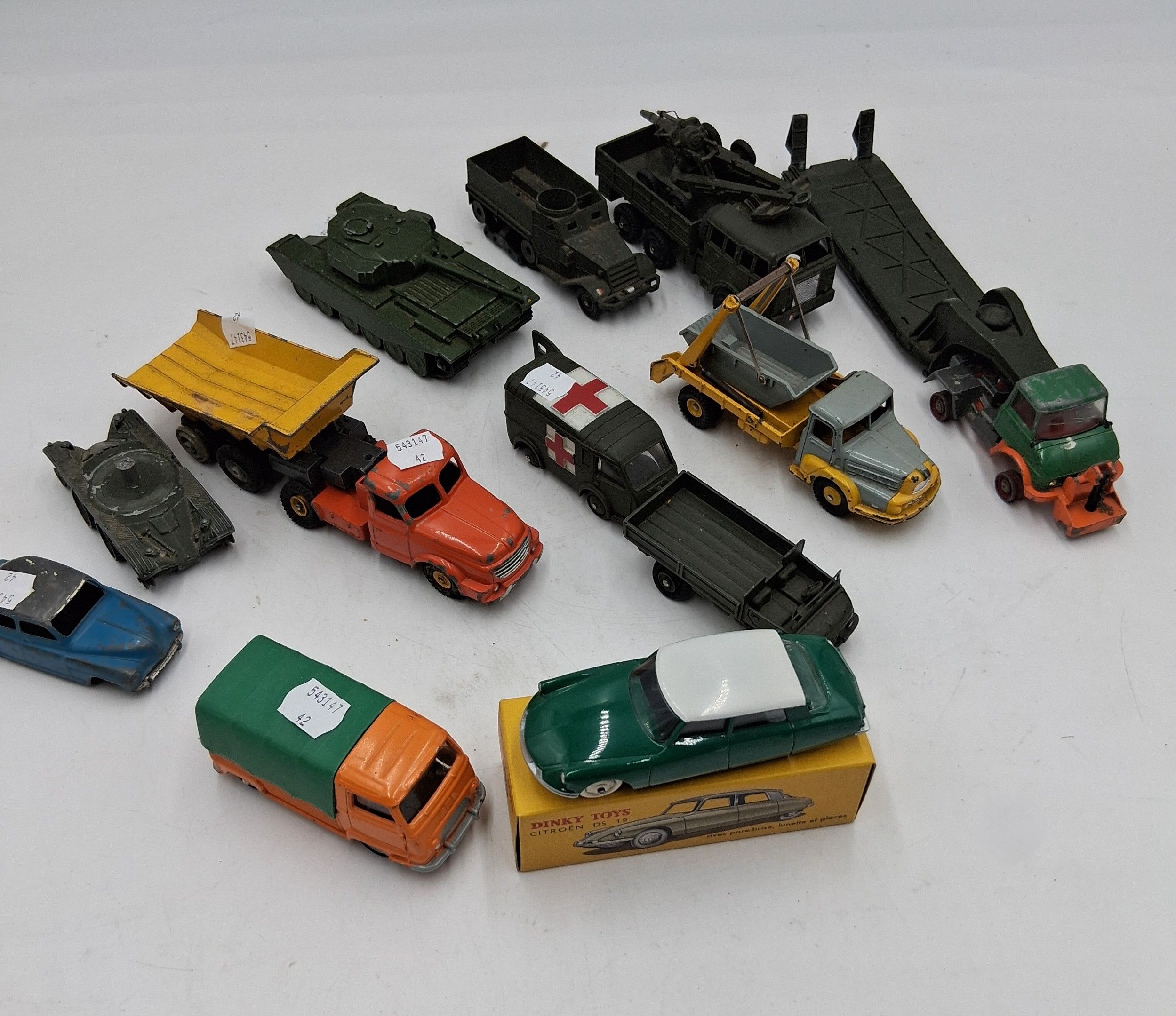 Lot of ten damaged DINKY TOYS without their boxes and a Citroën DS 19 DINKY TOYS in new condition in its original box.