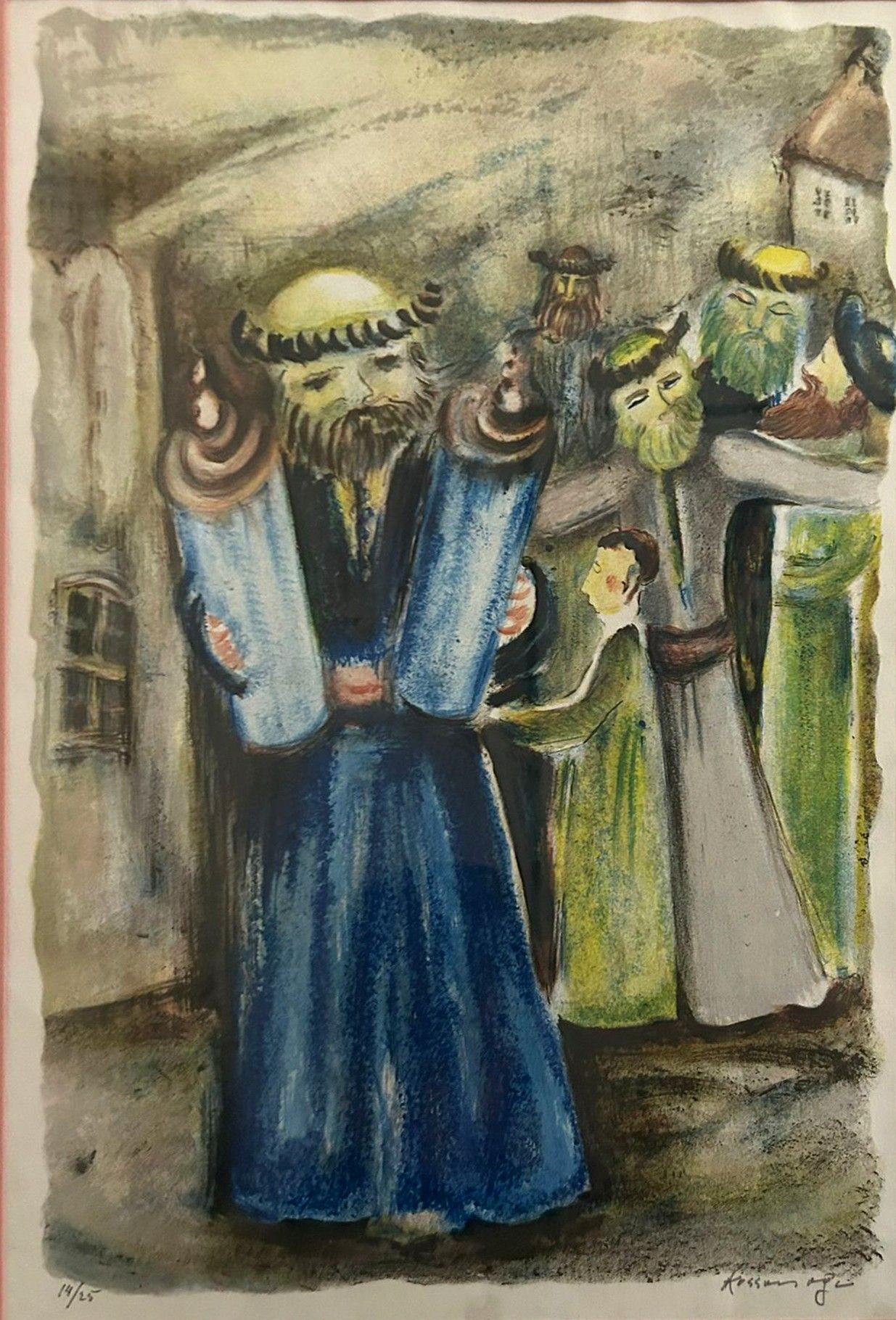 School of the XXth Rabbi holding the tables of the law. Lithograph signed and numbered 14/25. 27 x 21 cm