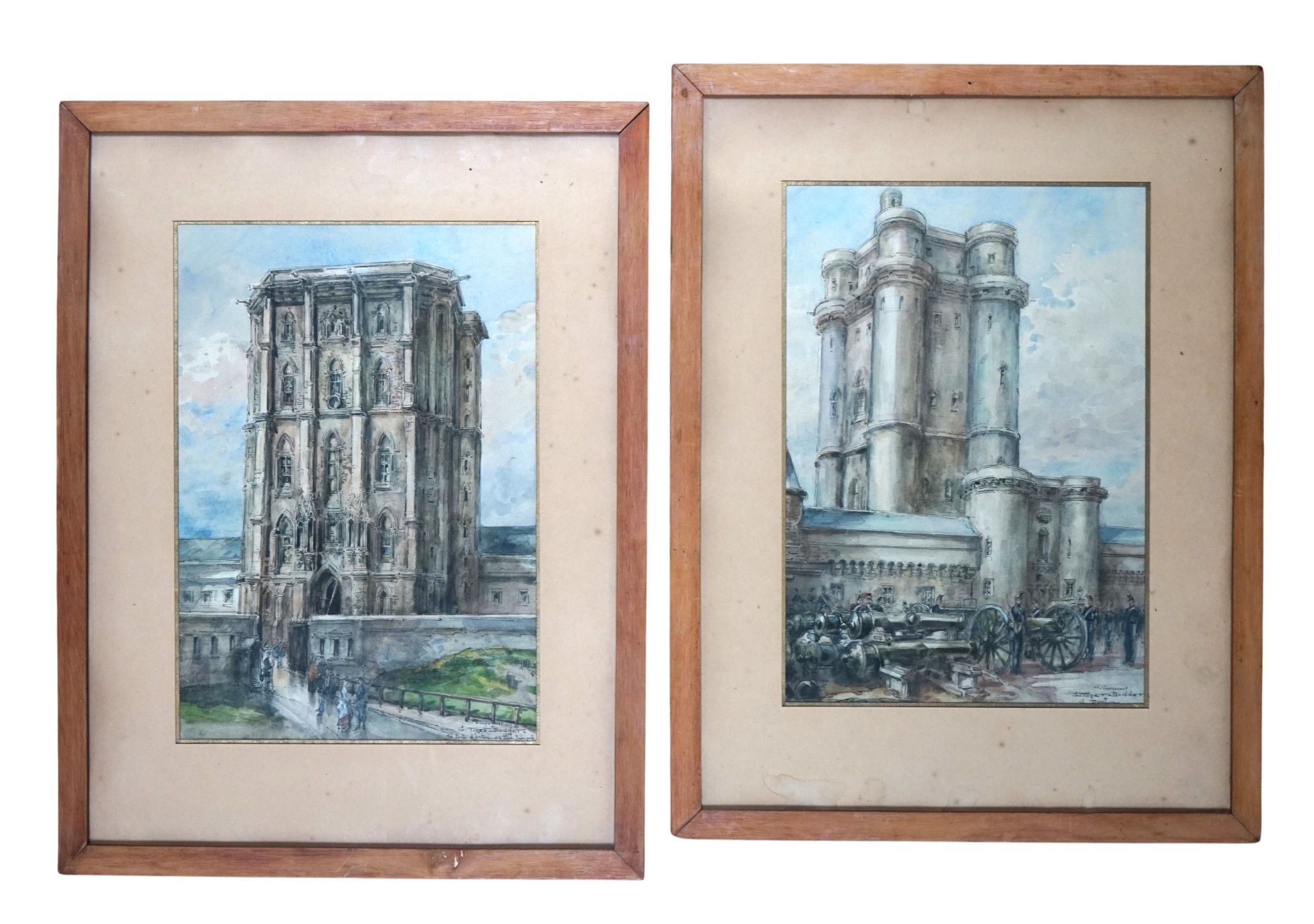Georges TIRET-BOGNET (1855-1935) The keep and the main tower. Two watercolours signed and located in Vincennes lower right. 32 x 23 cm.