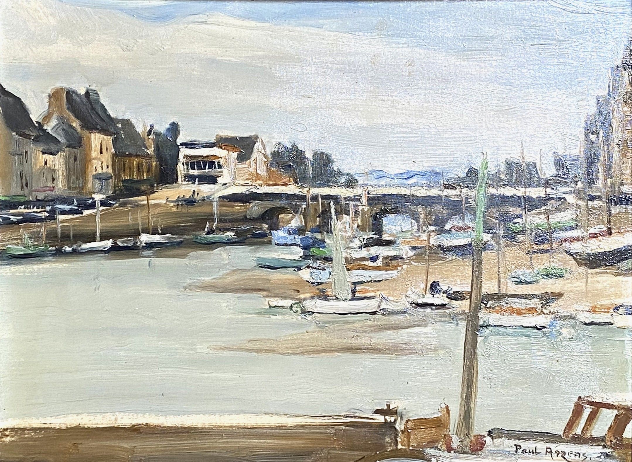 Paul ARZENS (1903-1990) View of a port. Oil on board signed lower right. Giltwood and natural wood frame. 40 x 30 cm.