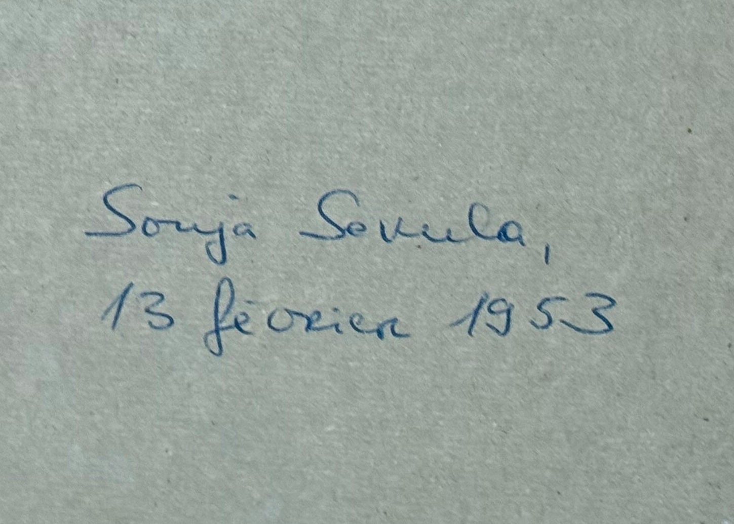 Sonja SEKULA (1918-1963) Abstract composition. Mixed media, gold paint, on paper, unsigned, annotated on the back Sonja Sekula 13 February 1953. 21 x 28 cm.