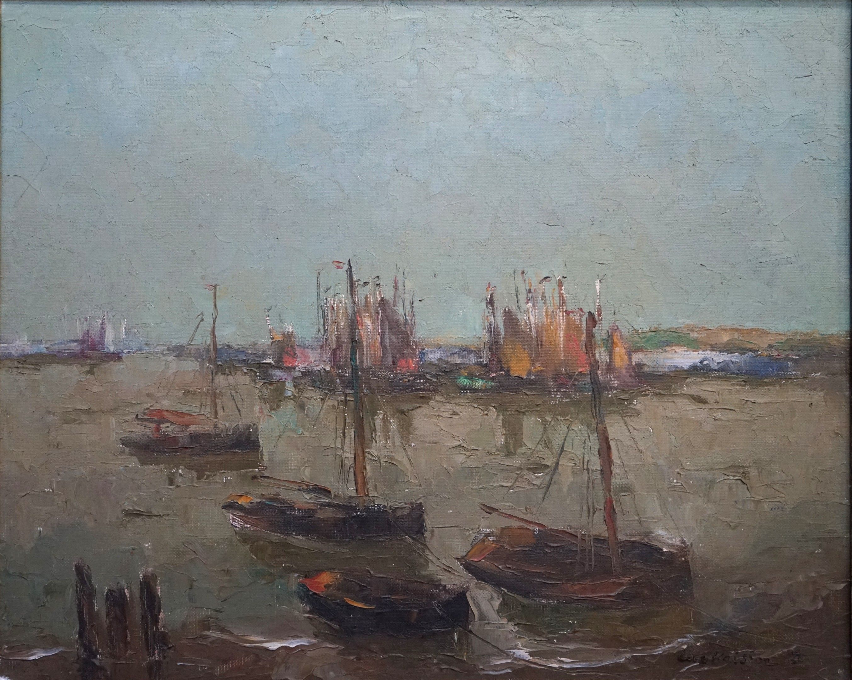 Luc KAISIN (1901-1963) Boats moored. Oil on canvas signed lower right. 40 x 50 cm.