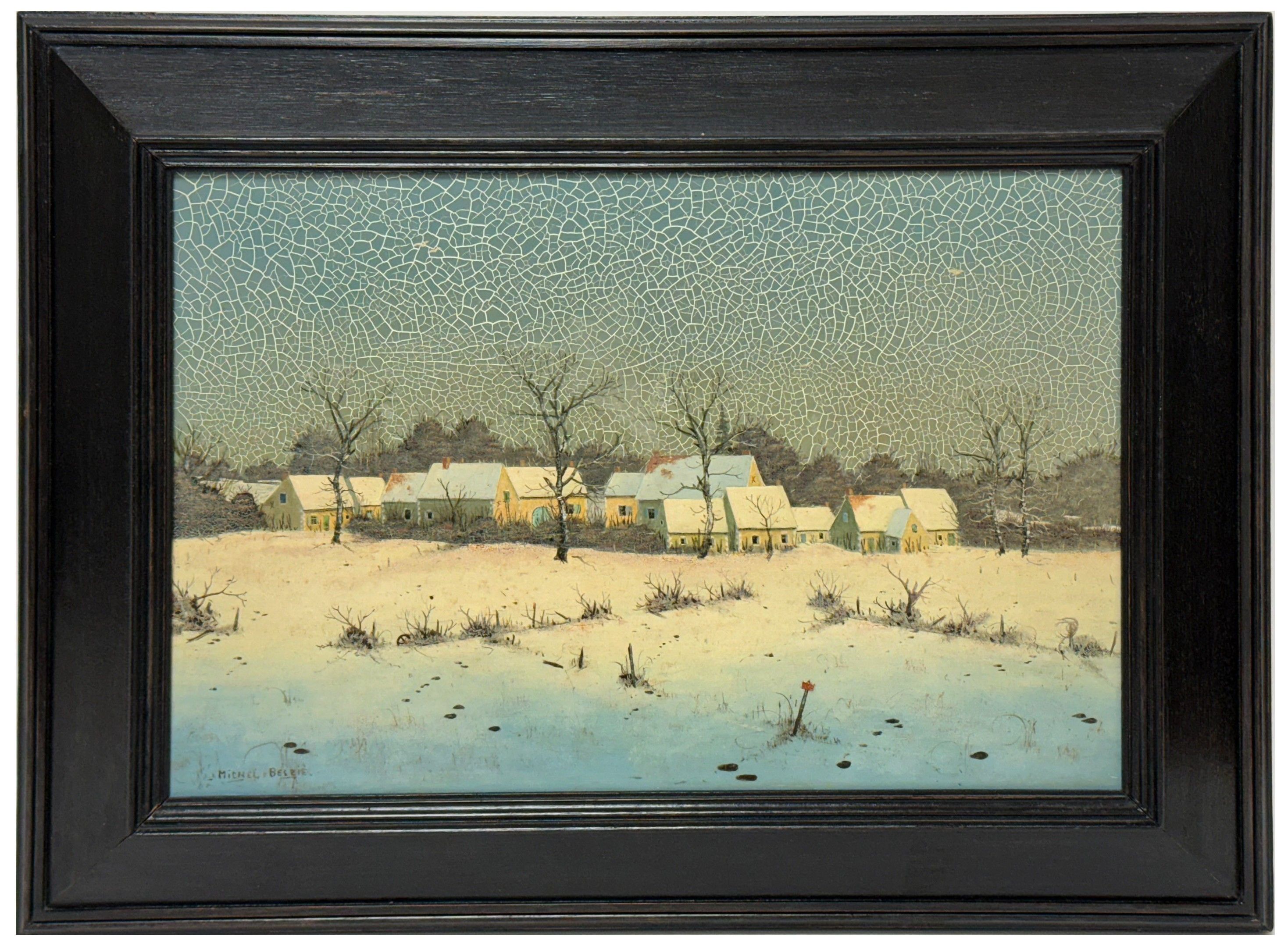 Michel BESZIE (1940) Village under the snow. Oil on canvas signed lower left. 24.5 x 34 cm (Craquelures in the sky).