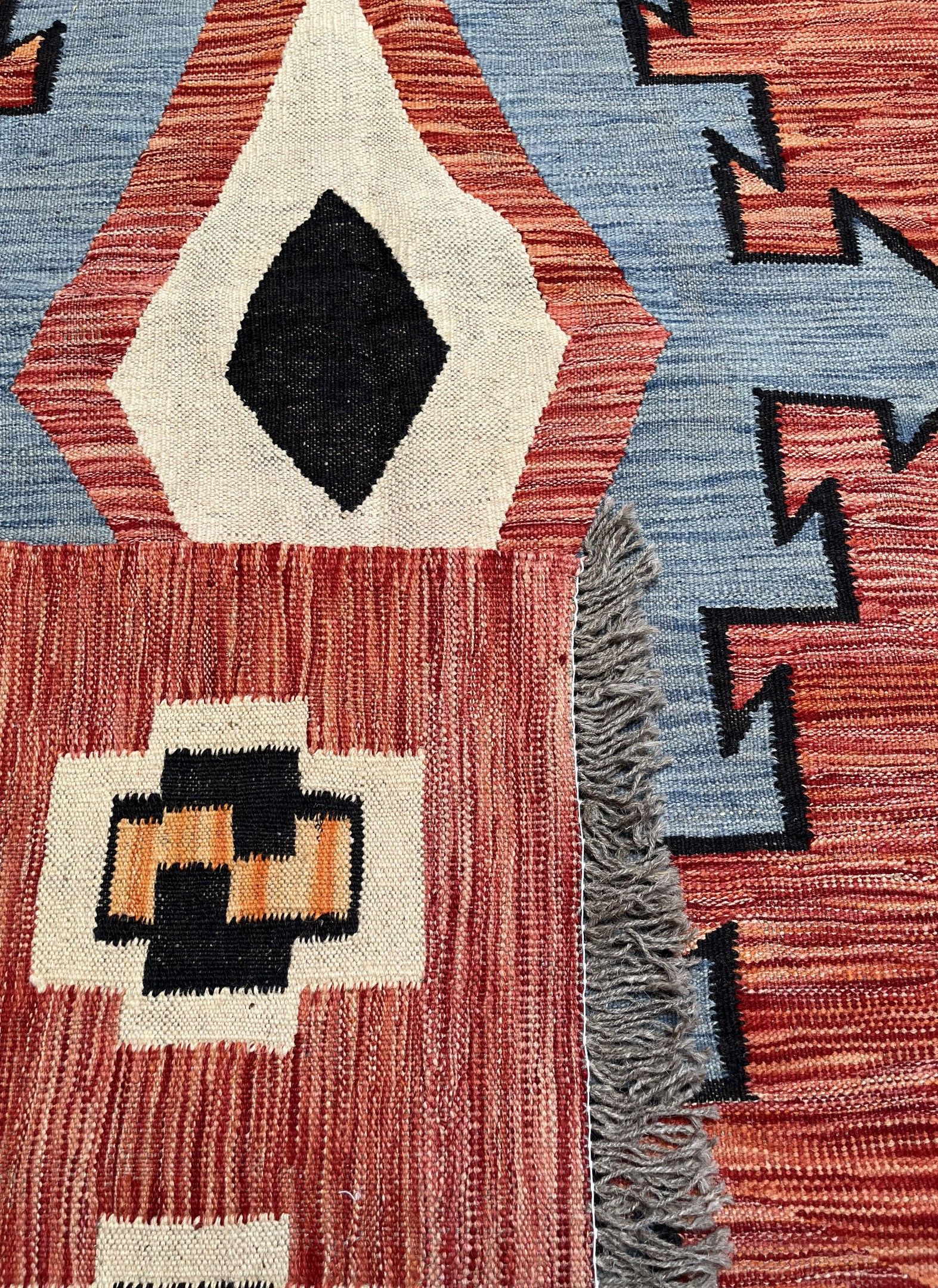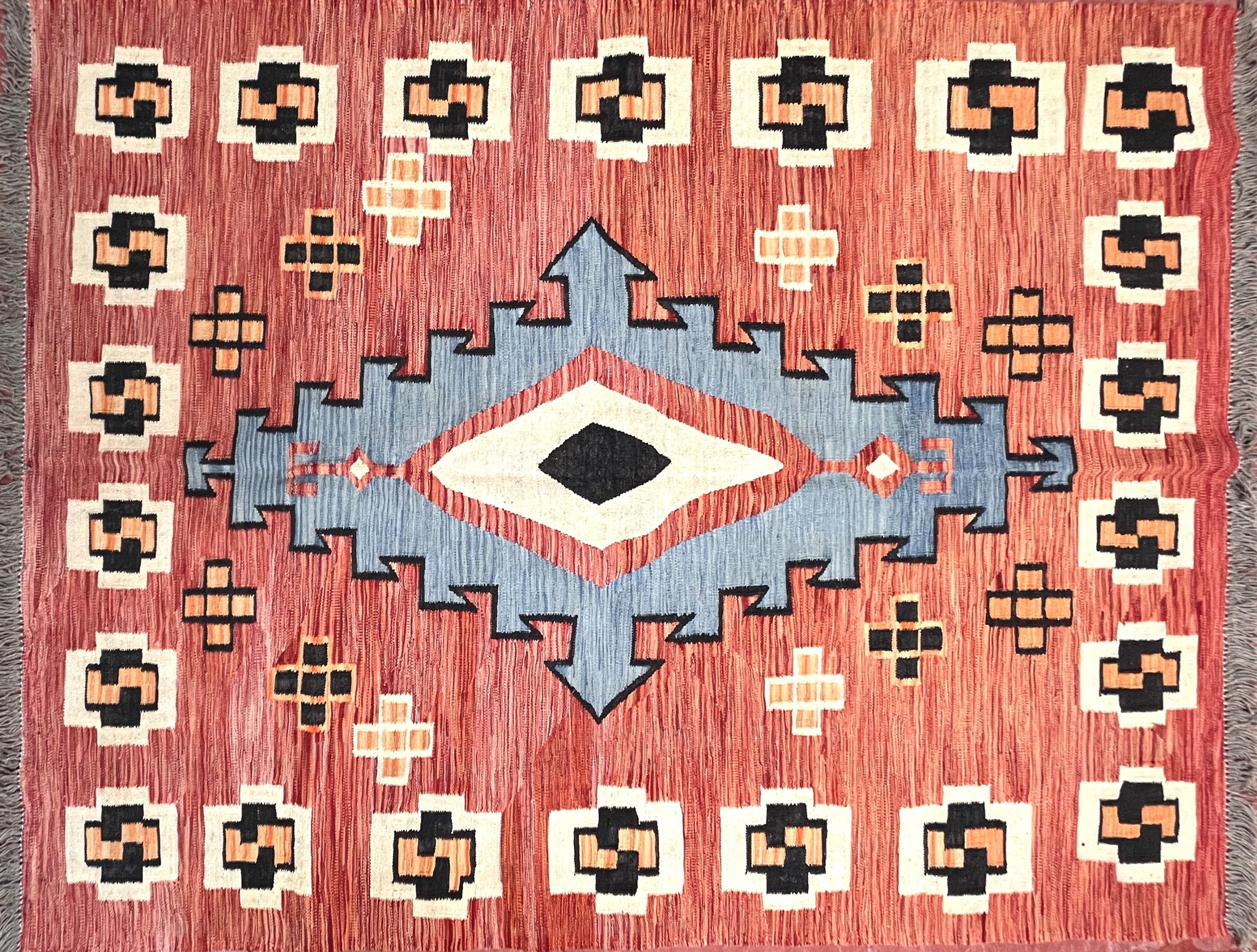 WOOL RUG with geometric motifs on a brick background after A…