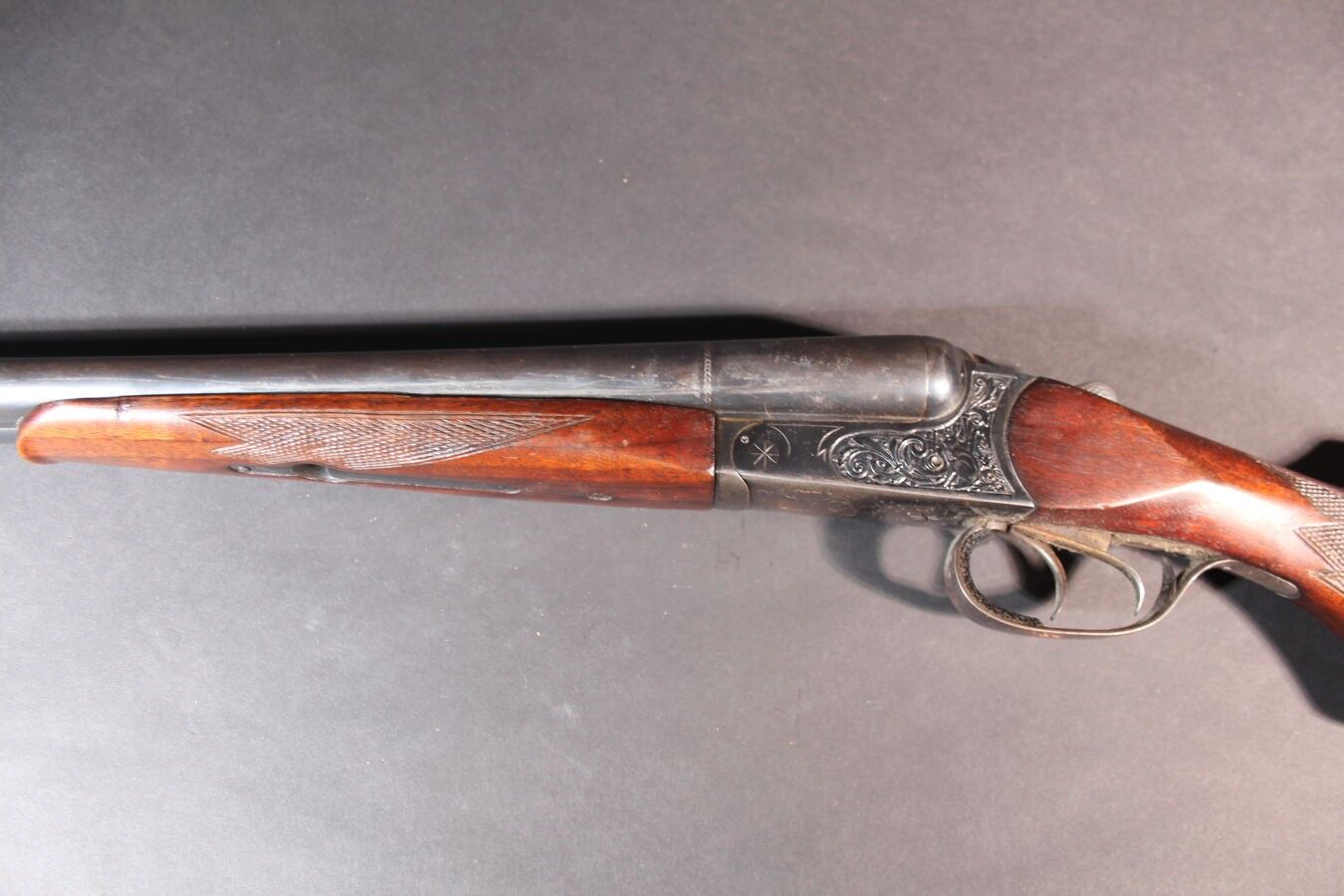 Baïkal rifle model 58-MBE calibre 12-70, 725 mm side-by-side barrels, engraved cut-out rocker, ejectors, double trigger, Galand trough front (crack), pistol grip at 370 mm, wear, oxidation, TL 1140 mm, n° K09751, AS656-C22-K09751, category C 1° c).