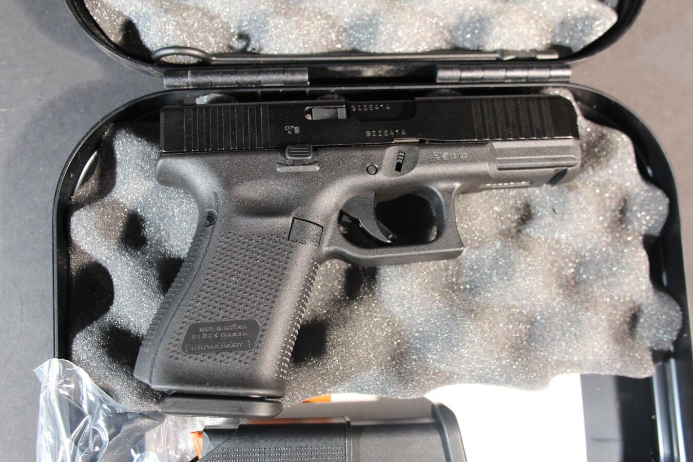 GLOCK 19 Gen 5 calibre 9 mm Luger (9x19) pistol, 102 mm rifled barrel, supplied in original case with documents, extra magazine and grip back, new condition from stock, n° BZZE414, BF360-C23-BZZE414, category B 1°)
