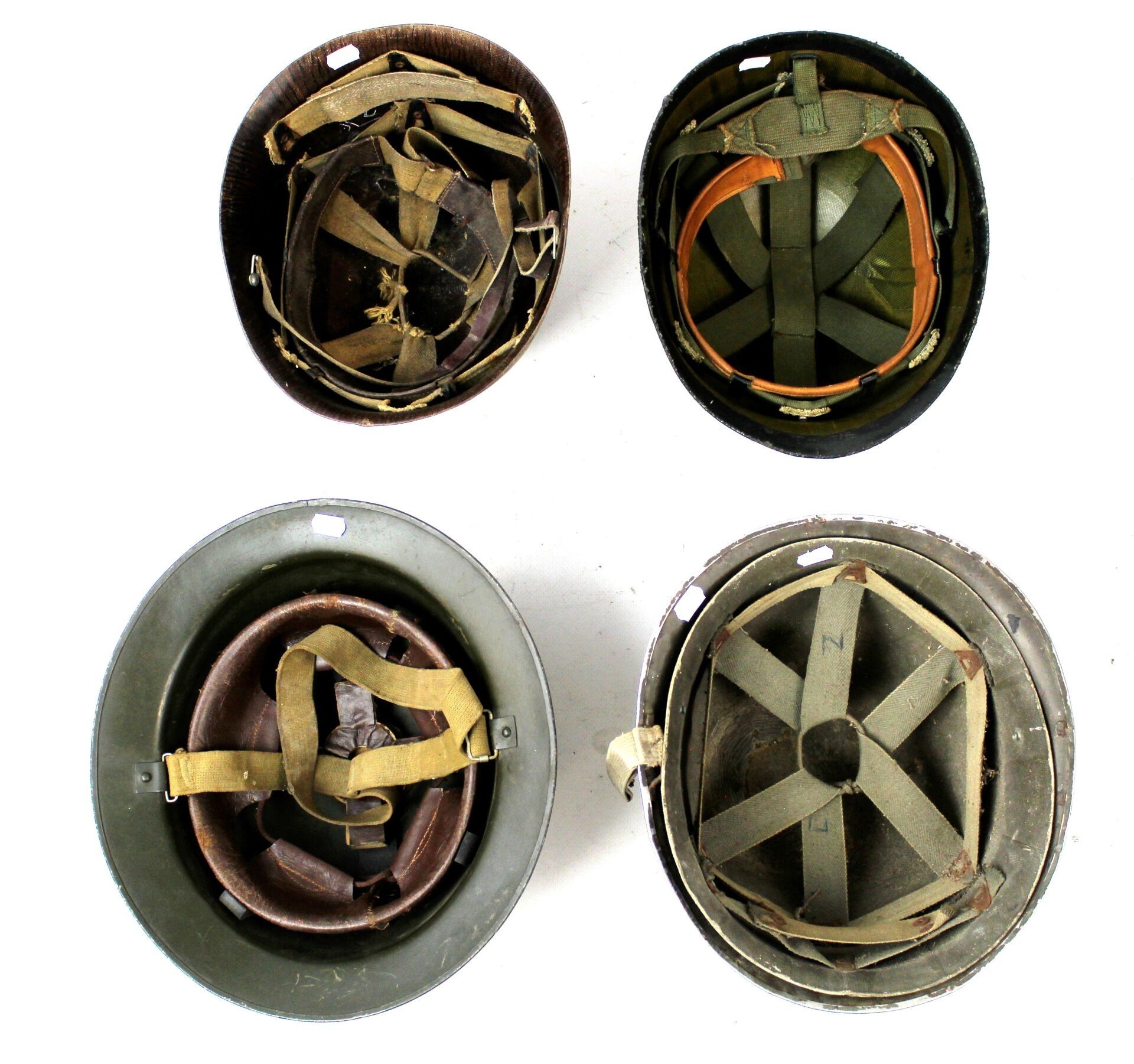 Set of 4 helmets comprising Belgian, US and French M1951 helmets. ABE