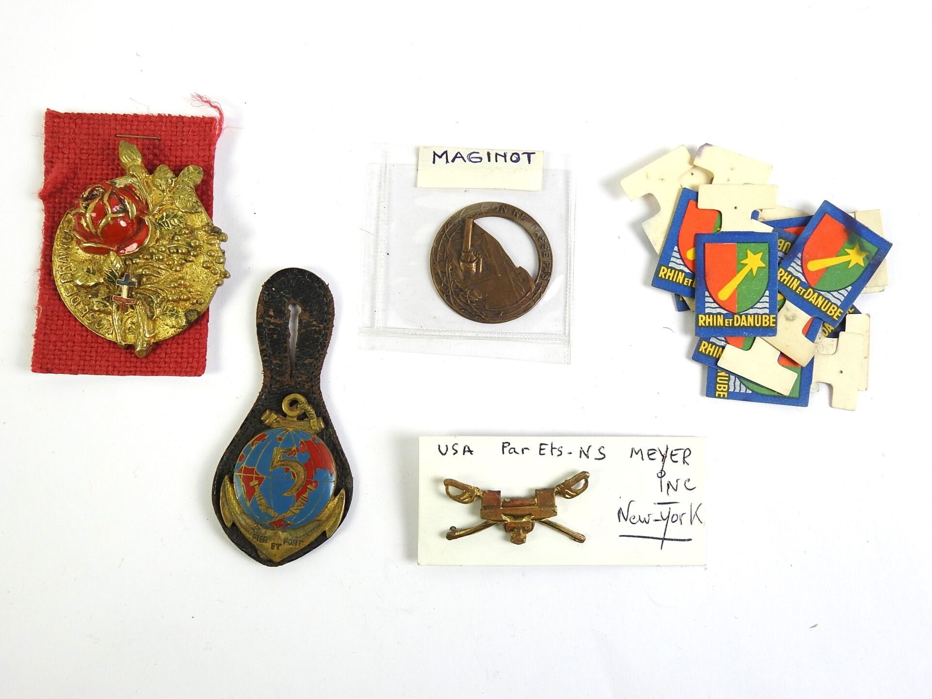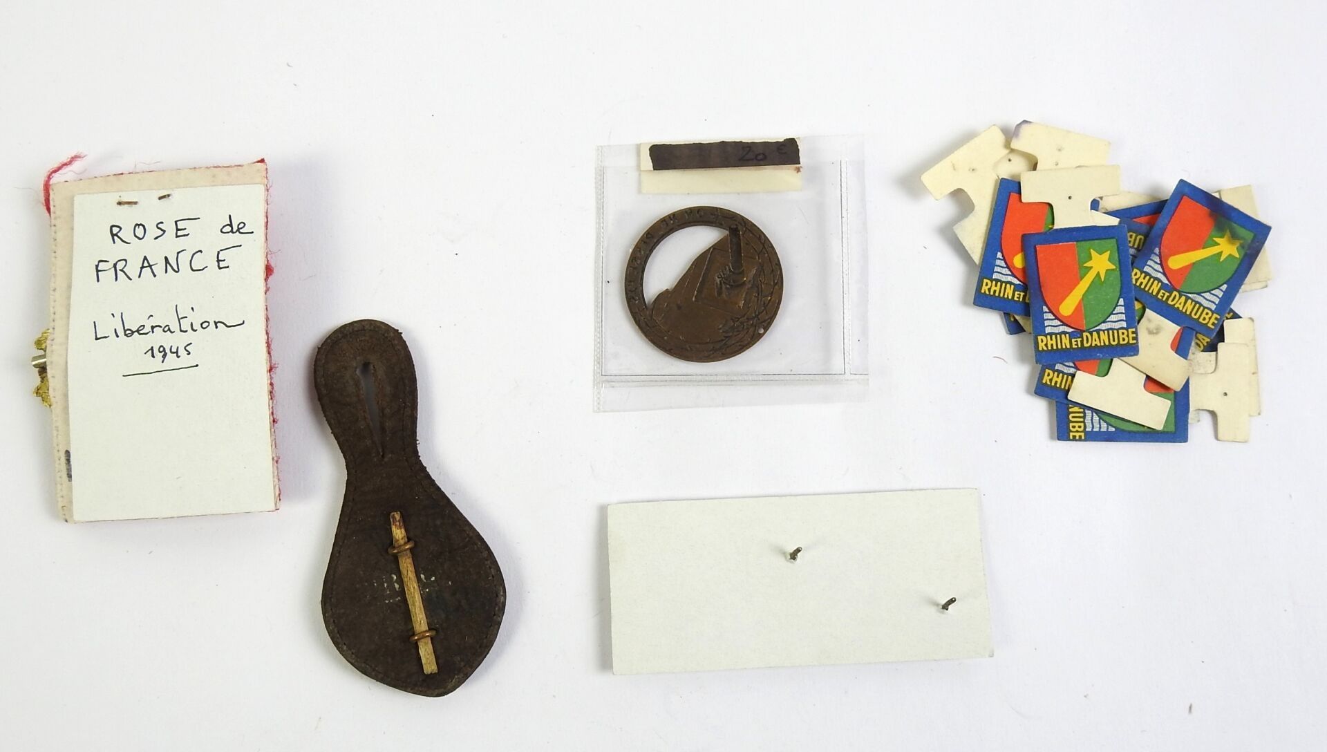 Miscellaneous insignia set, approx. 16 Rhine & Danube insignia, Maginot fortress troops insignia, Rose de France. ABE