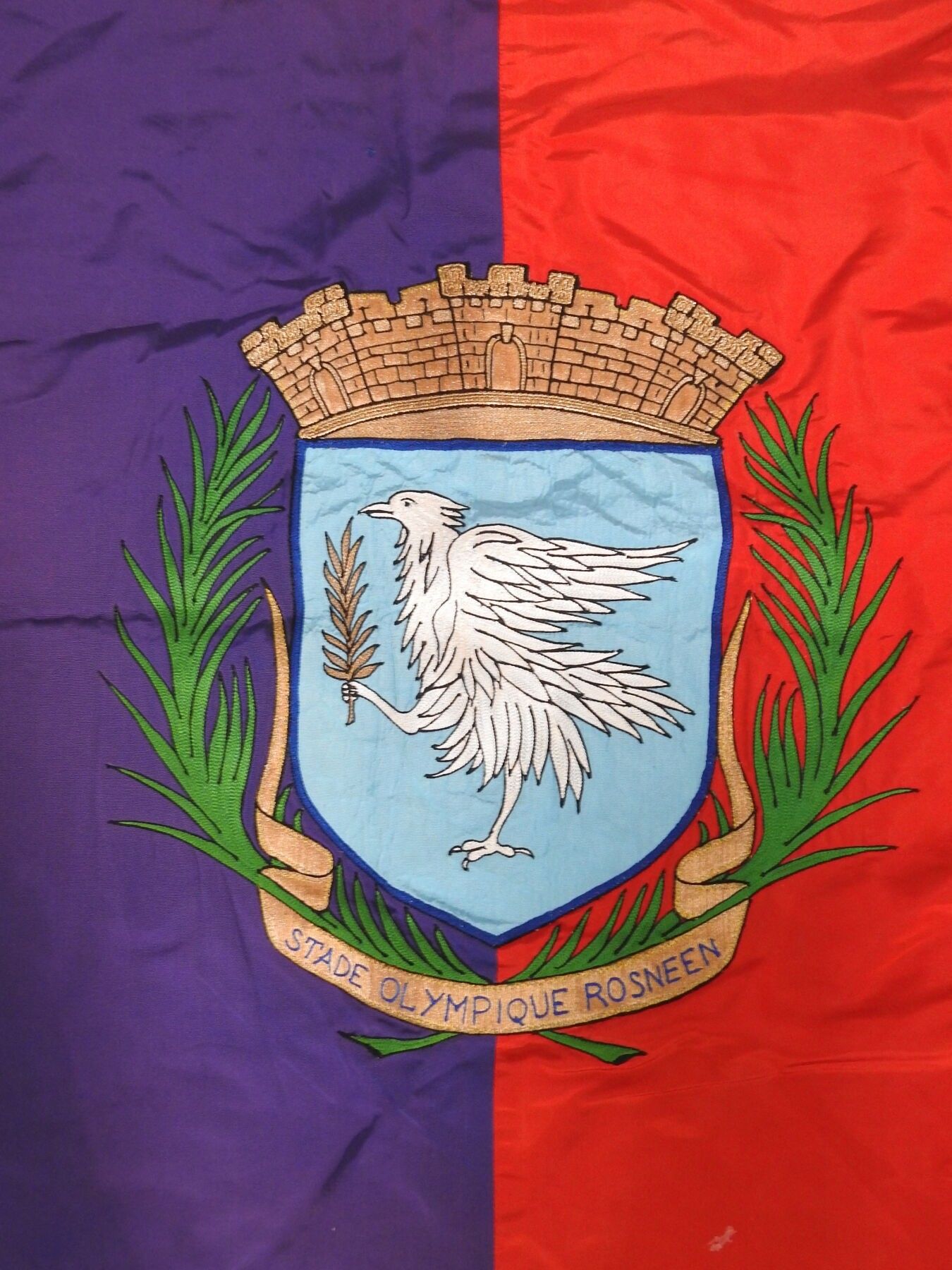 Flag of the Rosne Olympic Stadium with the town's coat of arms; 98 X 120 cm. BE