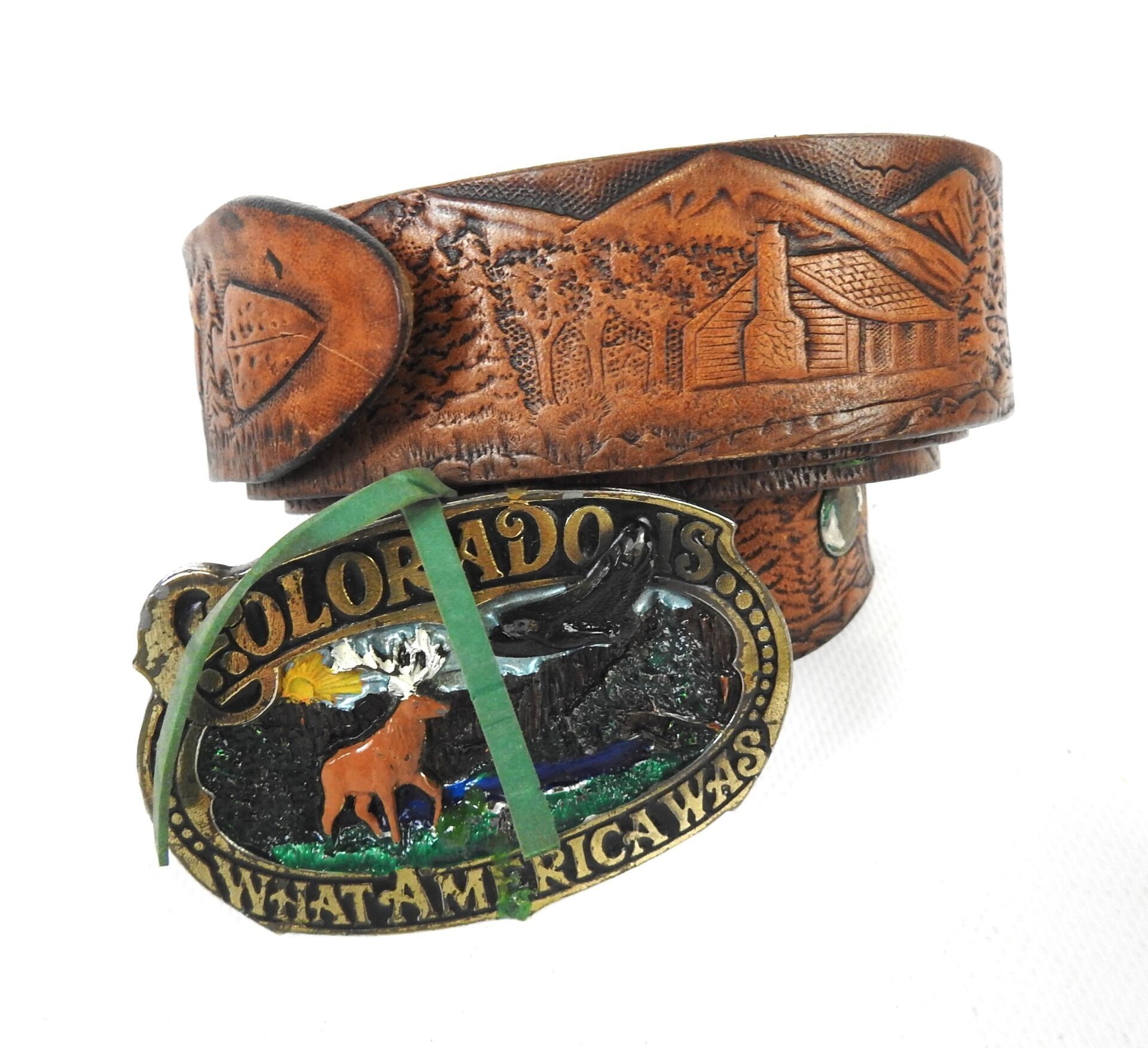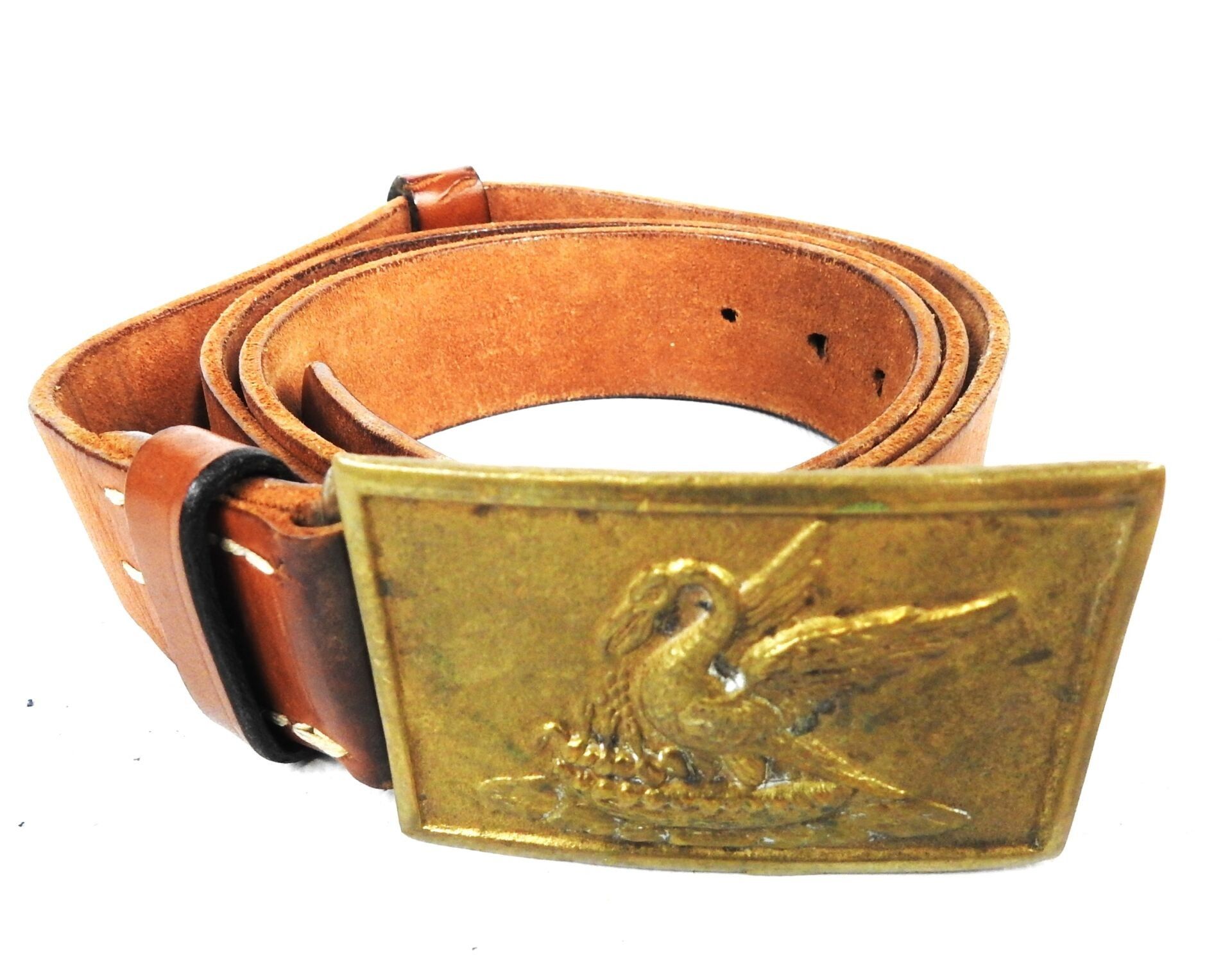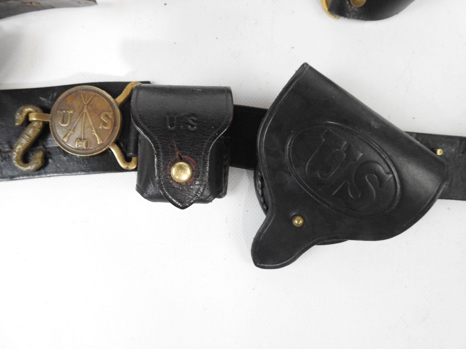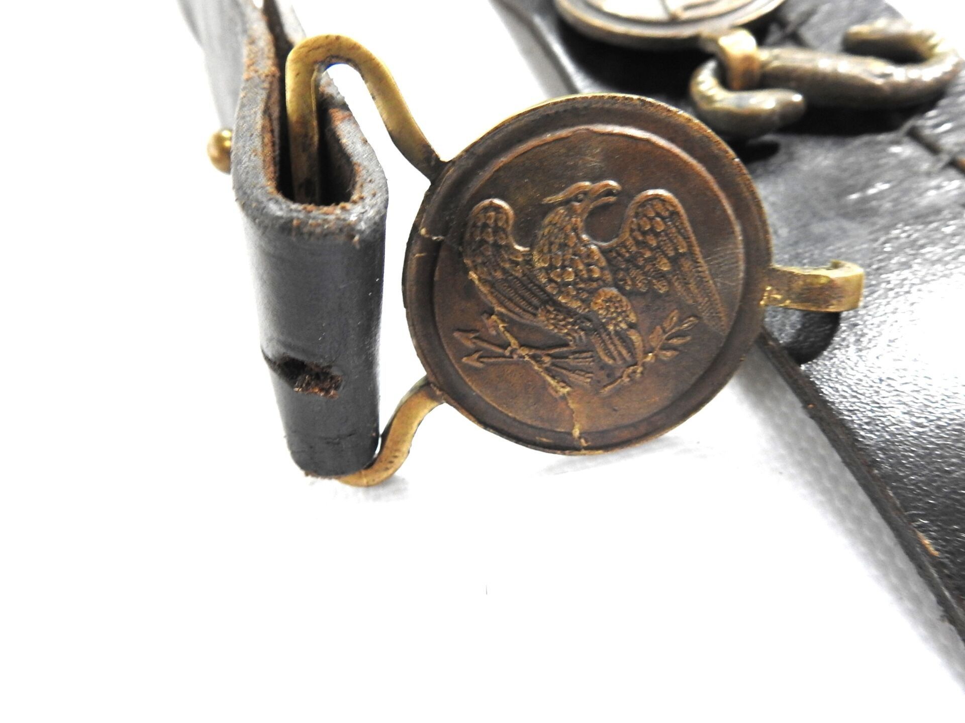 USA. Pair of leather and hide fonts, saddle rifle case with iron peg. Modern reproductions for re-enactment. BE
