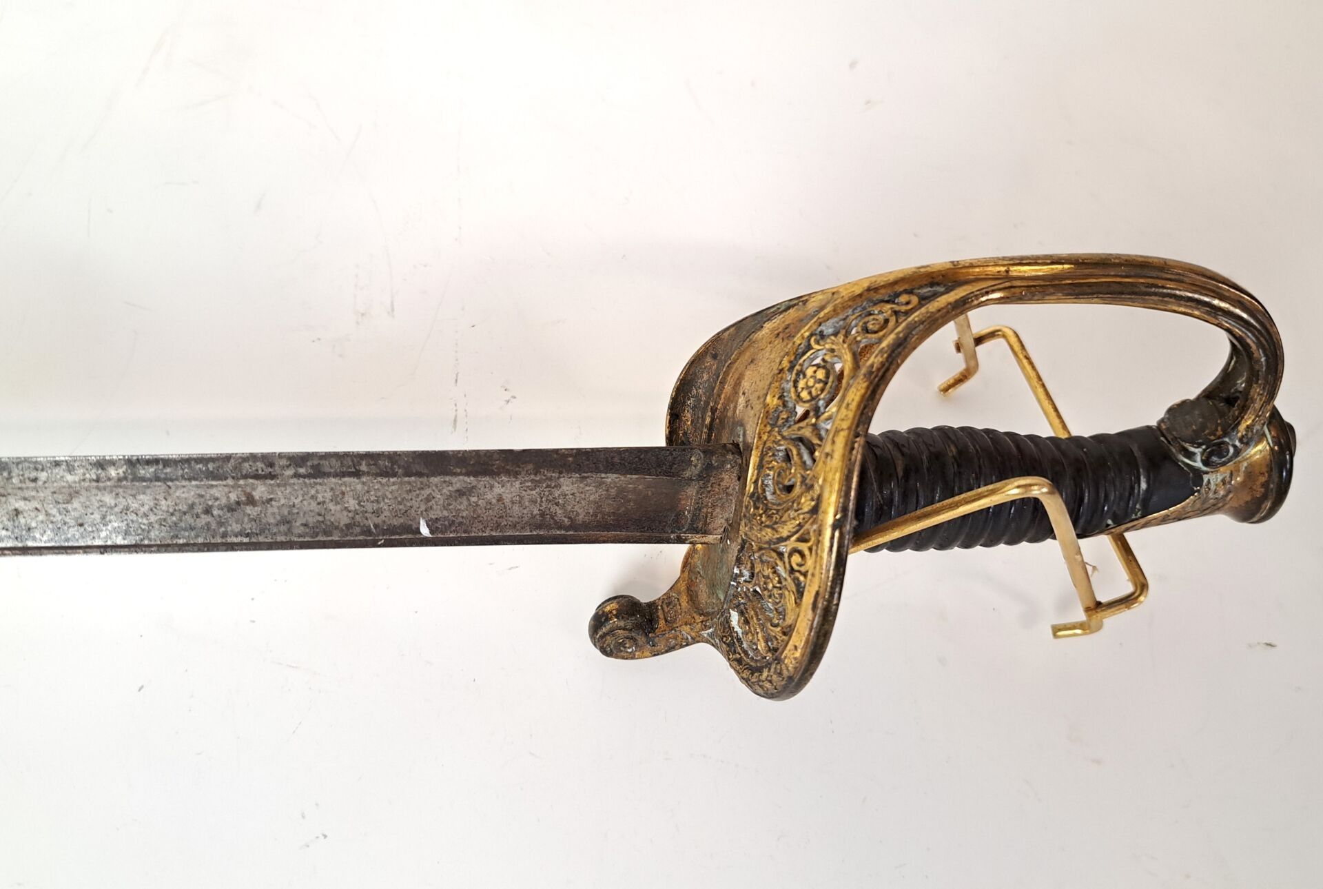 French warrant officer's sabre model 1845, oxidised blade, horn butt, watermark missing, gilt bronze mounting, no scabbard.