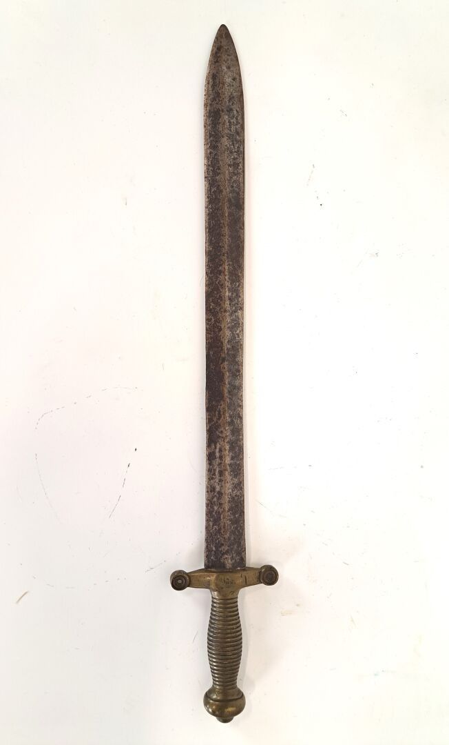 Glaive type 1831, of small proportion, symmetrical four-sided blade, straight, cast bronze mounts, no scabbard, overall length: 565 mm