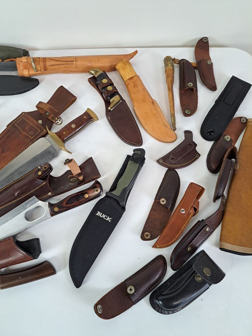 A set of 24 modern knives and daggers, including a U.S.M.1 bayonet, plus knife and dagger sheaths.