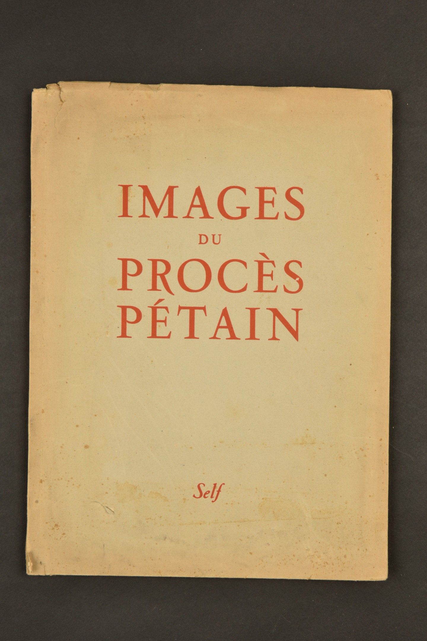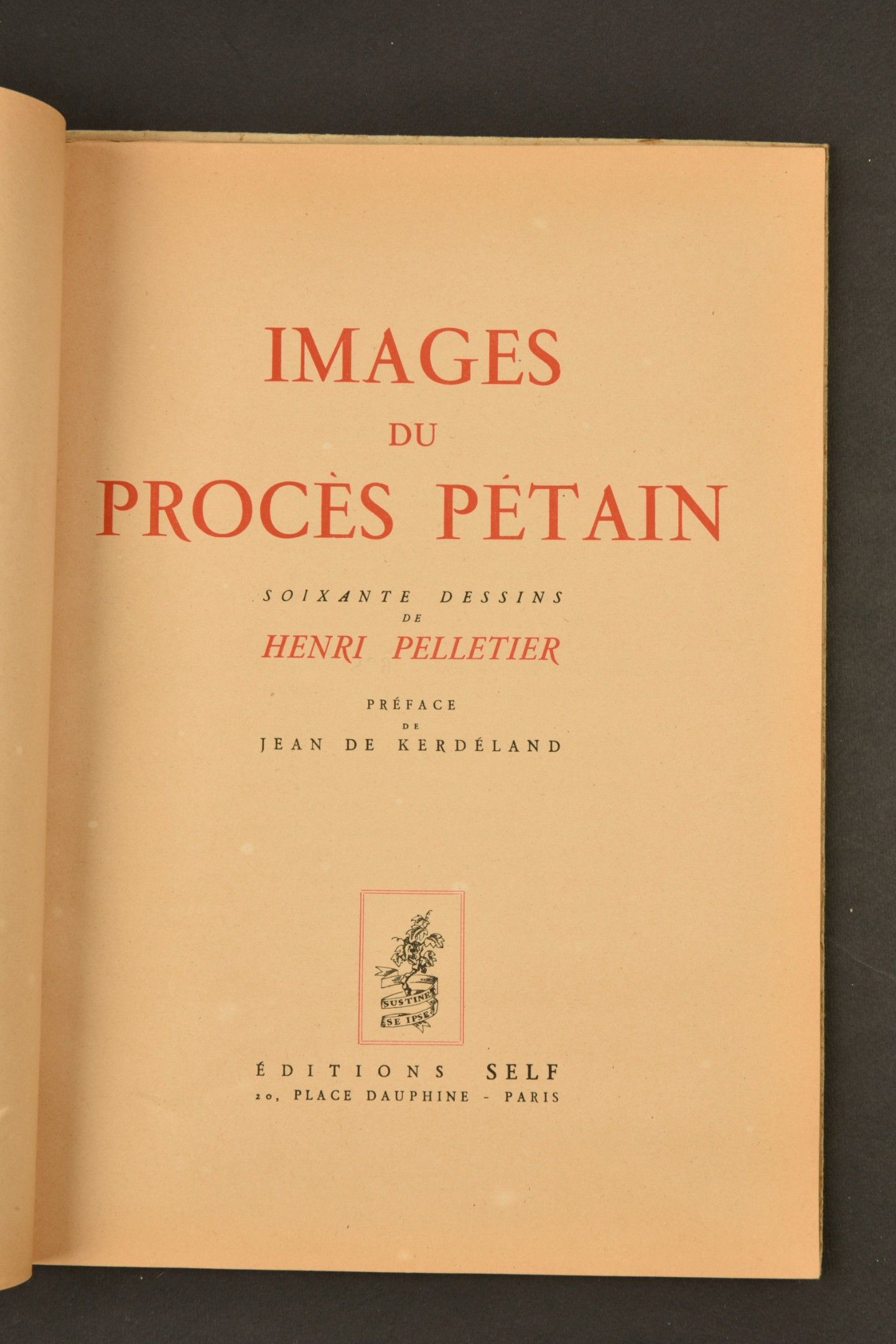 Images du Procès de Pétain comprising sixty drawings by Henri Pelletier, with a preface by Jean de Kerdéland, published by Self. There were 1,500 copies of this work, numbered 638. The cartoons depict the Marshal, as well as the Attorney General Mornet, the Marshal's lawyer Isorni, the Resistance jurors, Pierre Bloch, Leon Blum, Joseph Darnand, Pierre Laval, Trochu and General Weygand, and end with the reading of the verdict. Images from Pétain's trial comprising sixty caricatures by Henri Pelletier, with a foreword by Jean de Kerdeland, published by Self. This edition is limited to 1500 copies, with this one being number 638. The cartoons depict the Marshal as well as Prosecutor Mornet, Defence Attorney Isorni, resistant jurors, Pierre Bloch, Léon Blum, Joseph Darnand, Pierre Laval, Trochu, General Weygand and conclude with the reading of the verdict.