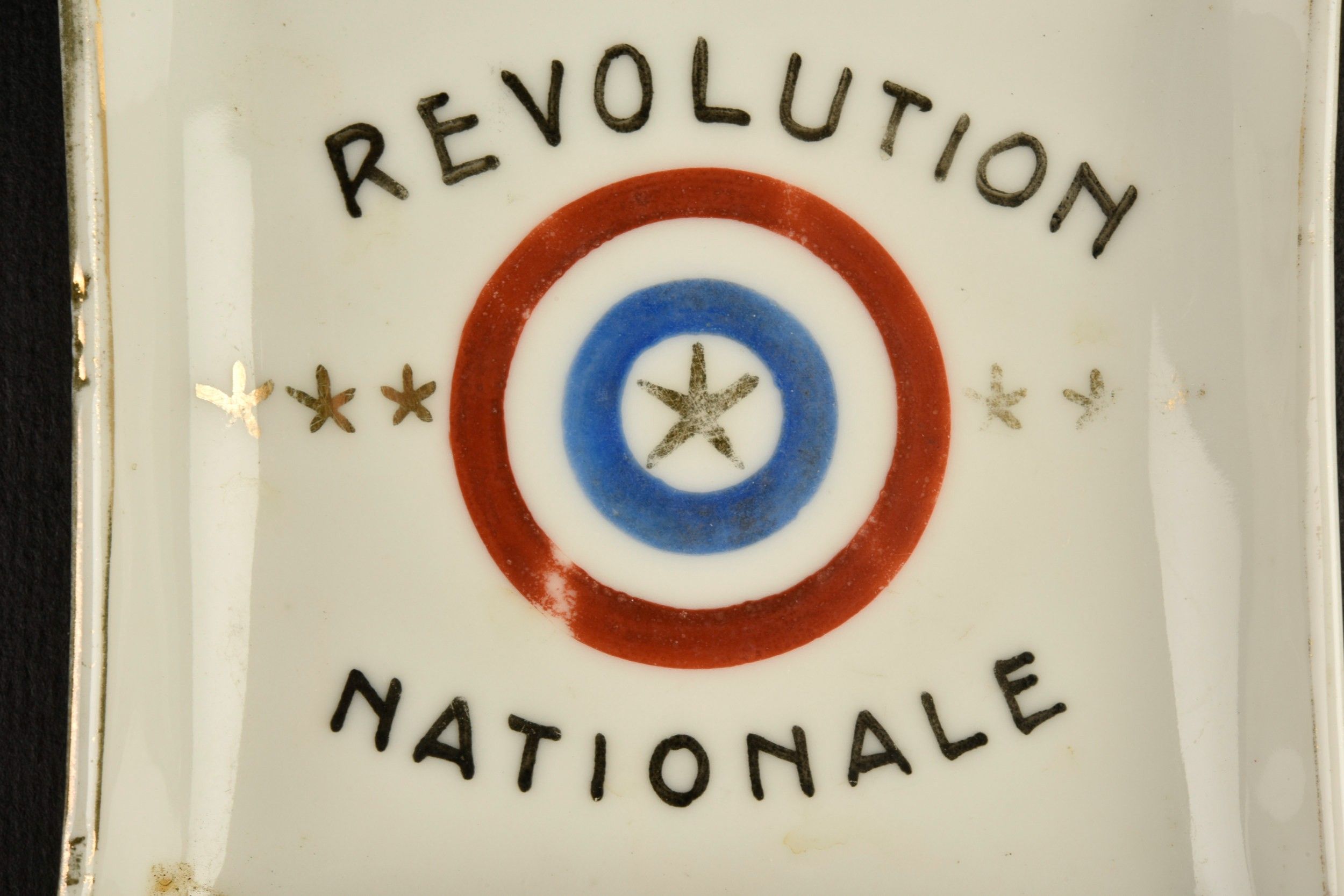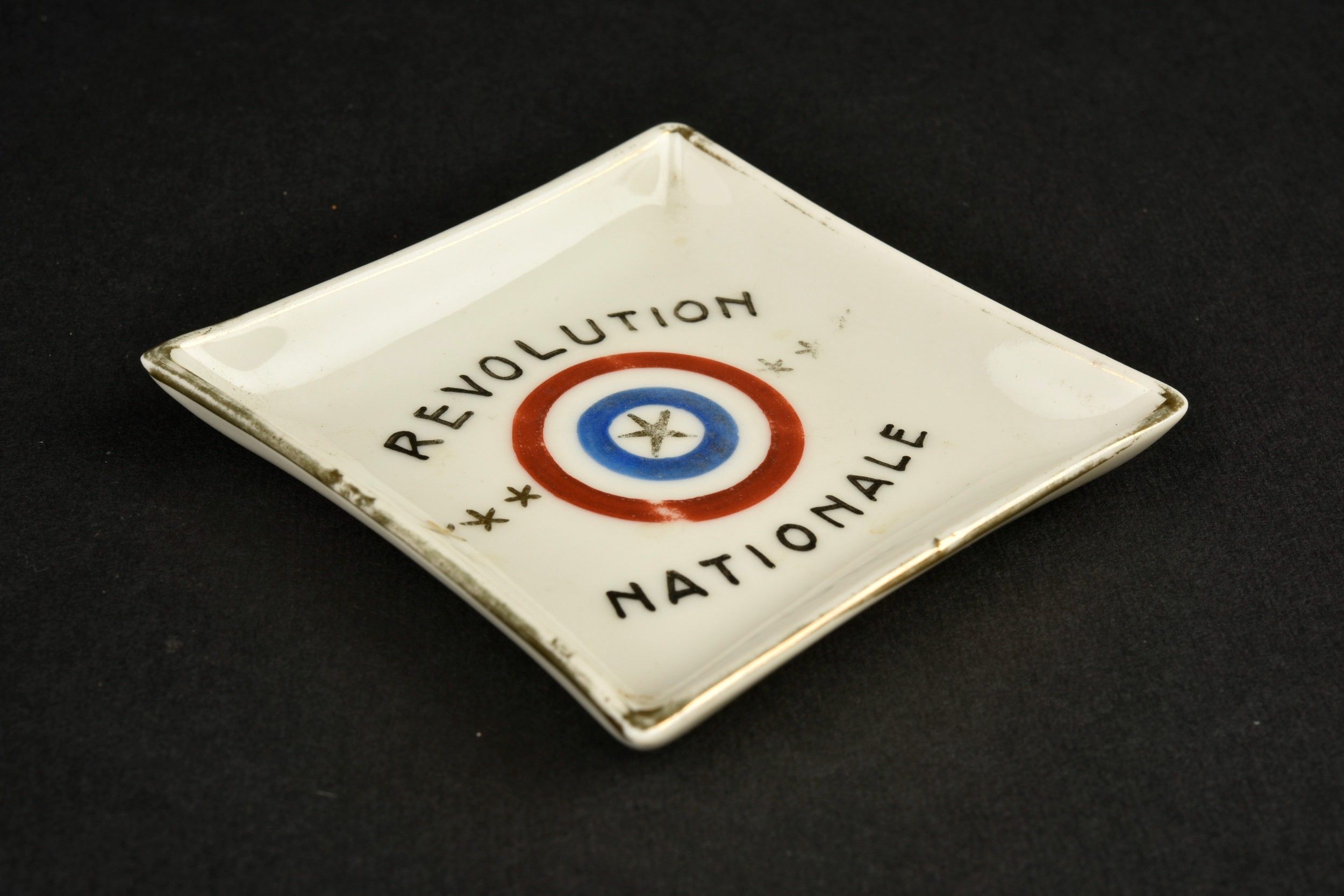 Ashtray featuring a tricolor cockade the Marshal's seven stars and the inscription National Revolution. Ashtray featuring a tricolor cockade the Marshal's seven stars and the inscription National Revolution