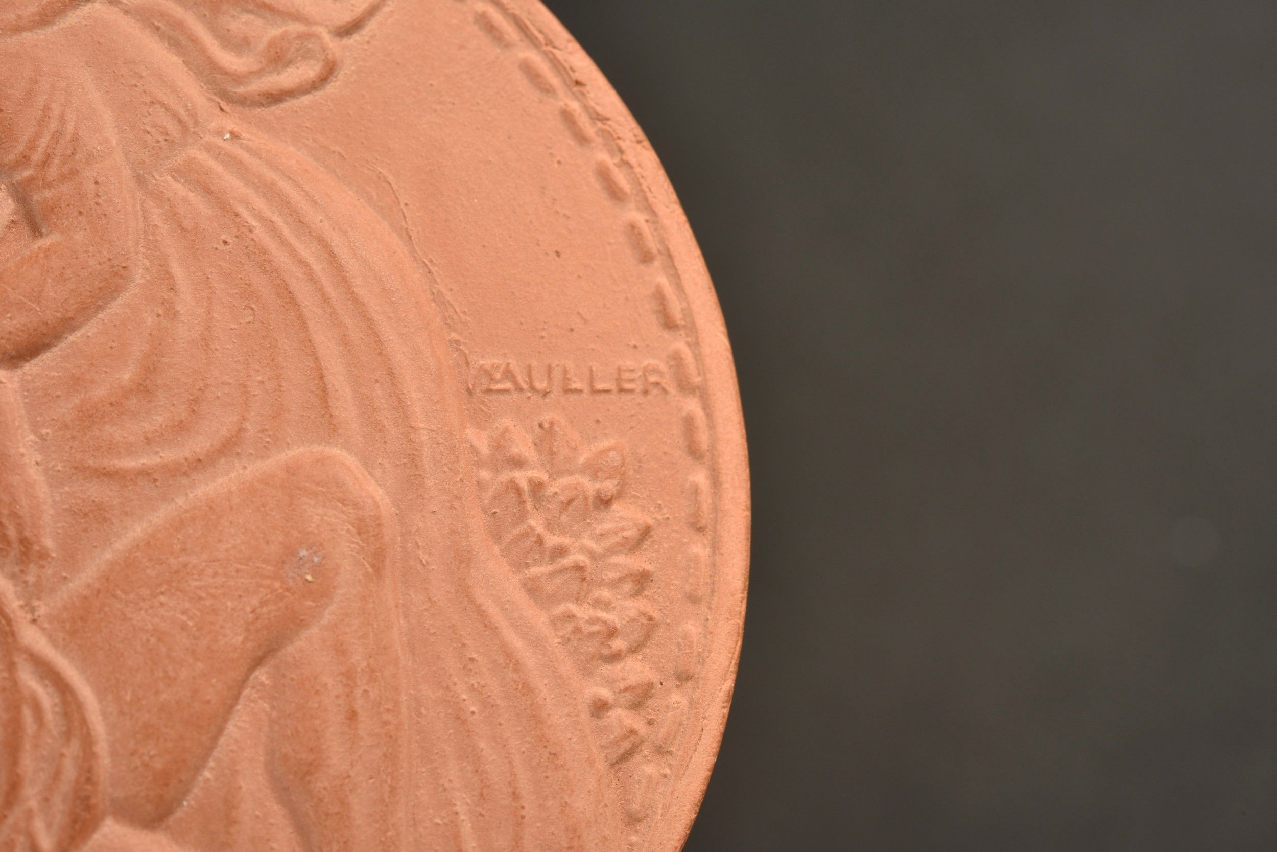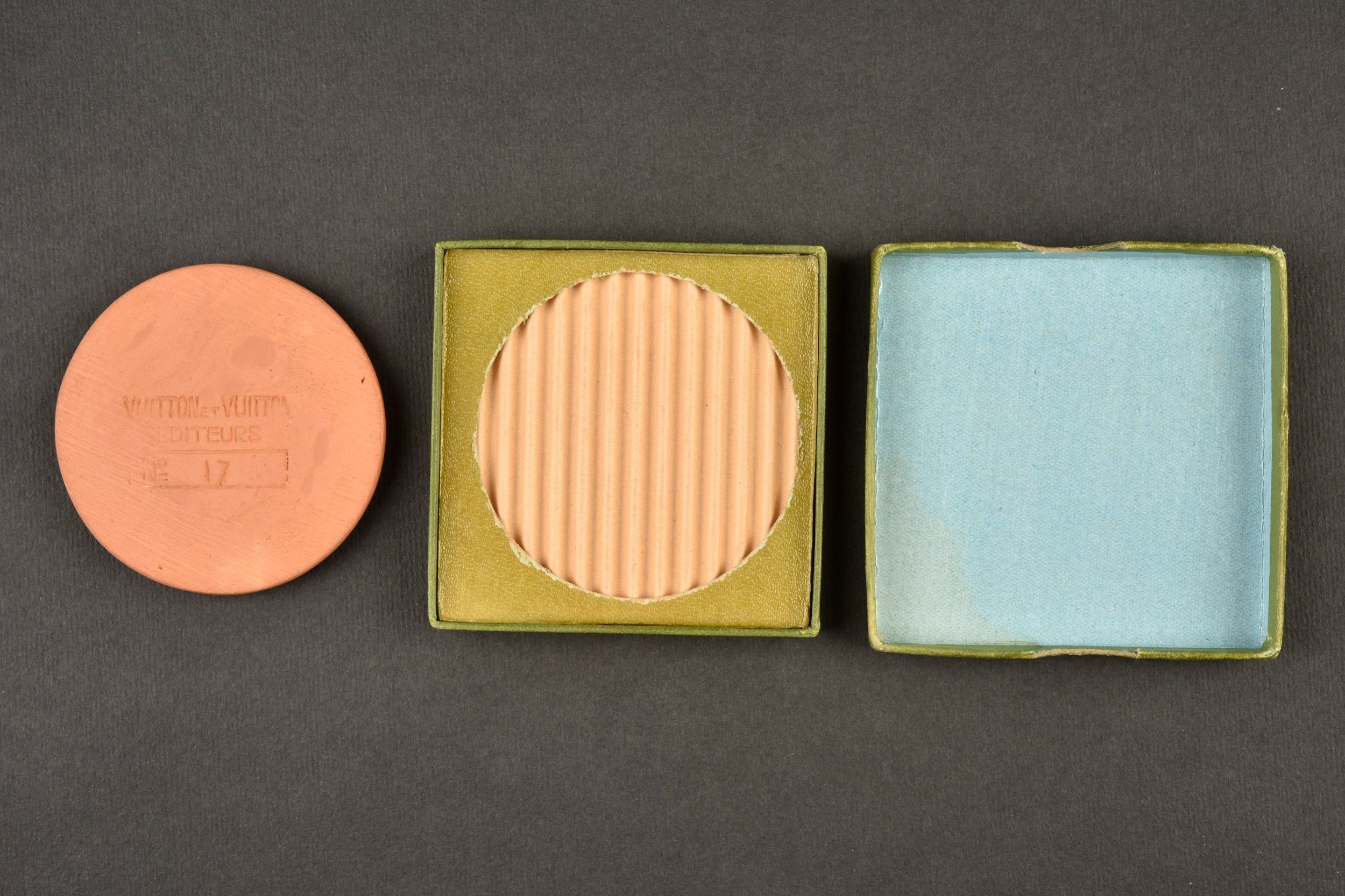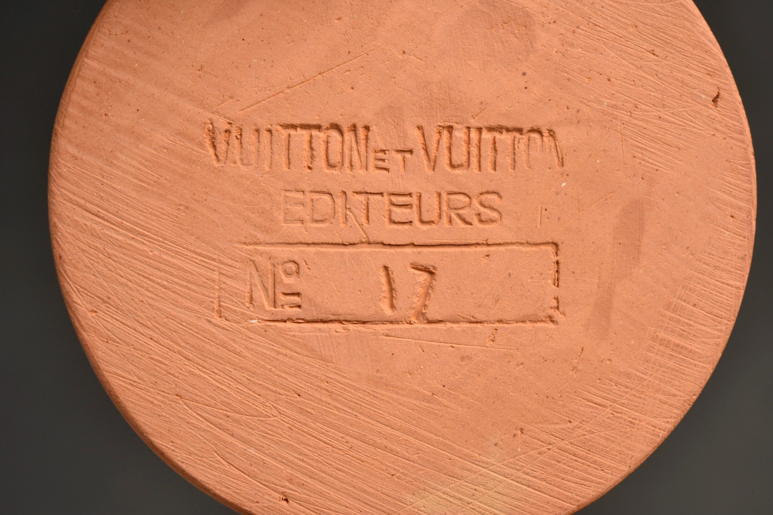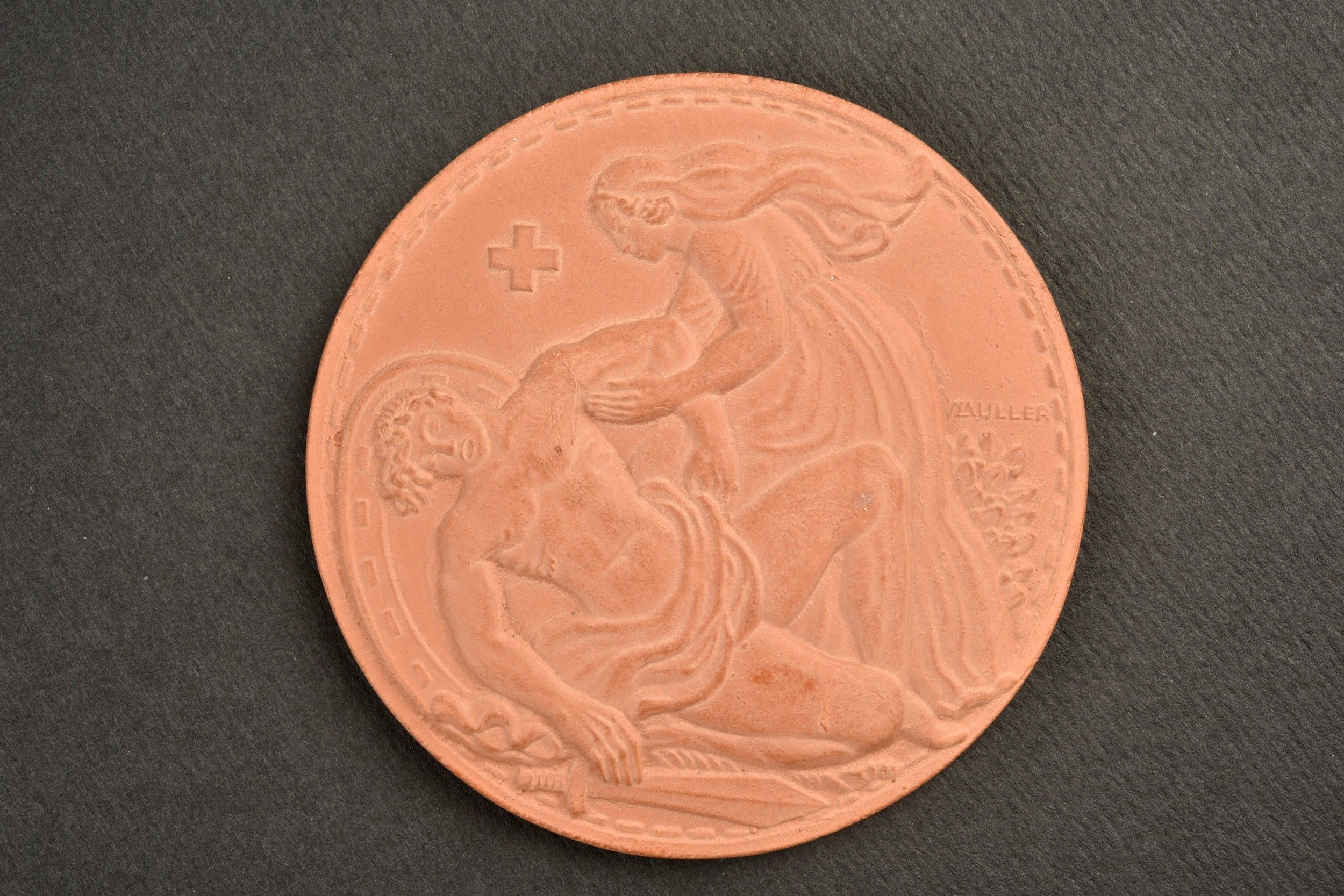 Red Cross Clay Table Medal by Vuitton Award medal for Red Cross volunteers, made entirely of clay and signed Muller. The reverse is marked Vuitton and Vuitton Éditeurs. Medal numbered 17. Diameter 6.5 cm. In its original cardboard box. A rare model. Red Cross table medal in clay by Vuitton. Volunteer reward medal made entirely of clay, signed Muller. Reverse marked "Vuitton" and "Vuitton Éditeurs". Numbered 17, diameter 6.5 cm. In original cardboard case. Rare model.
