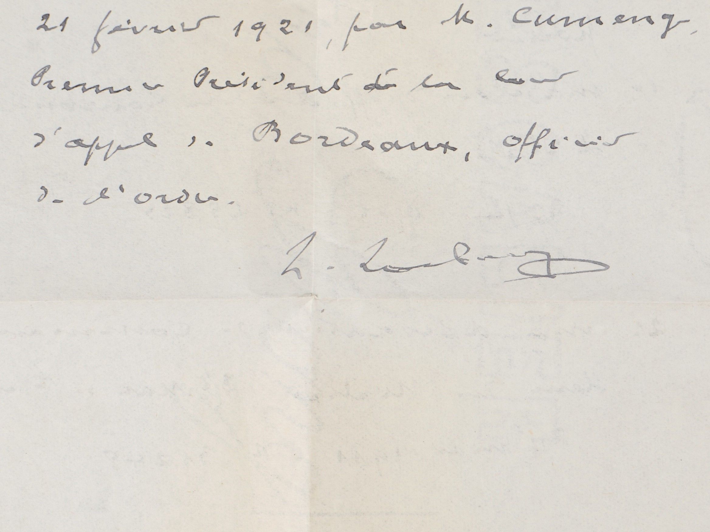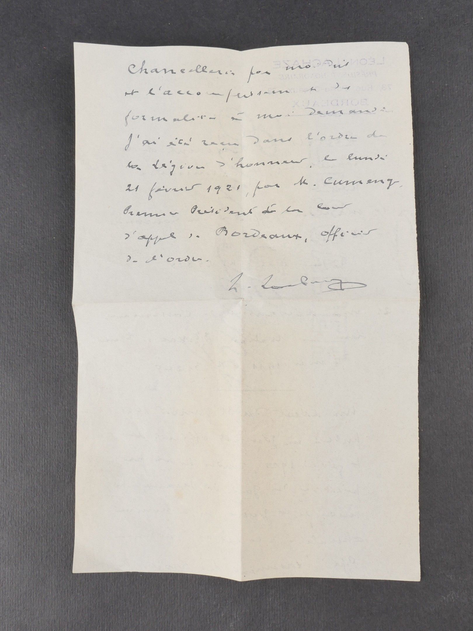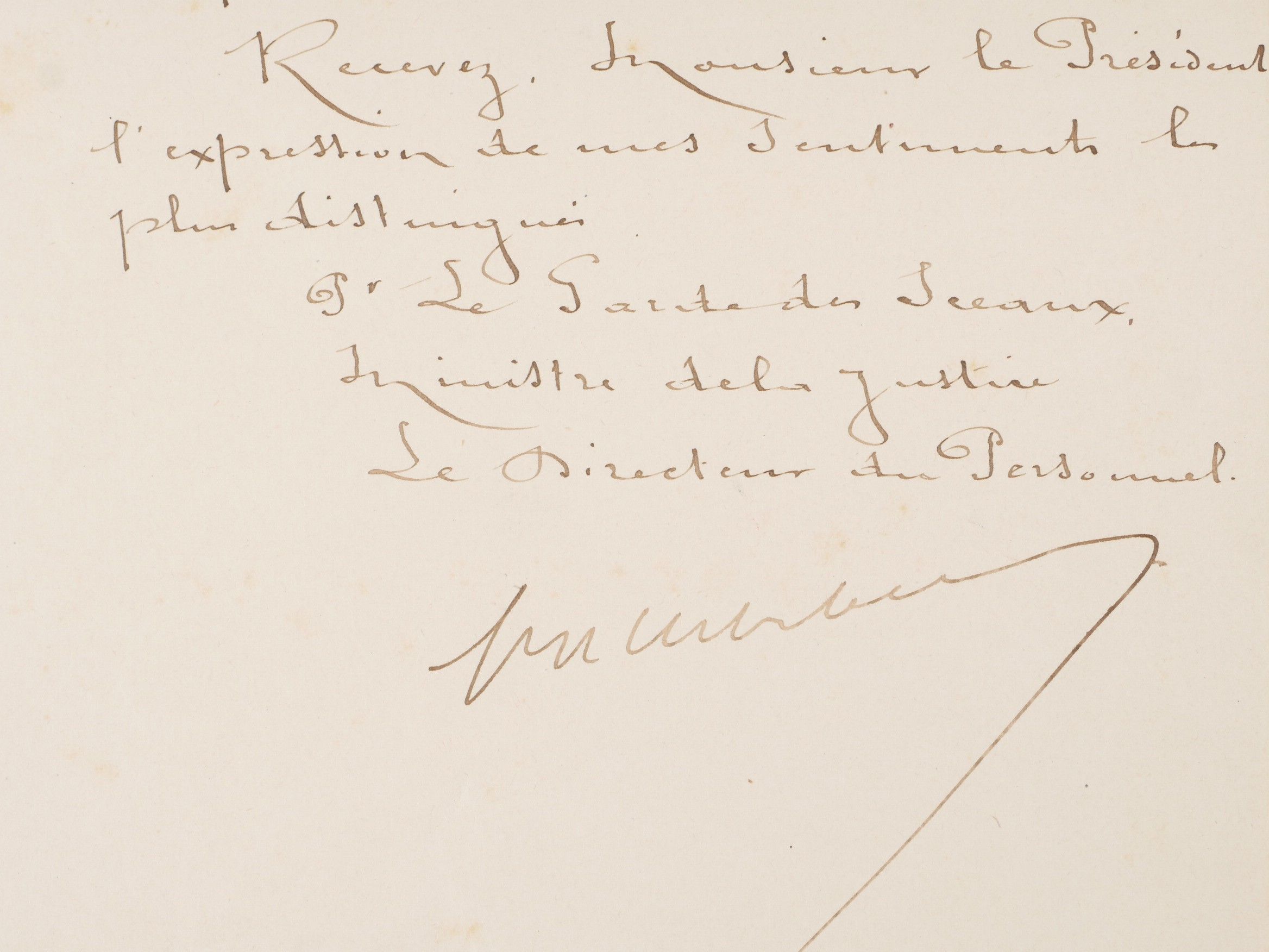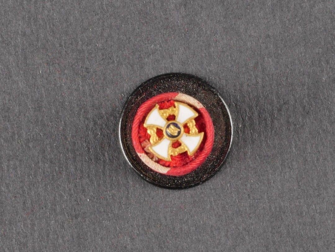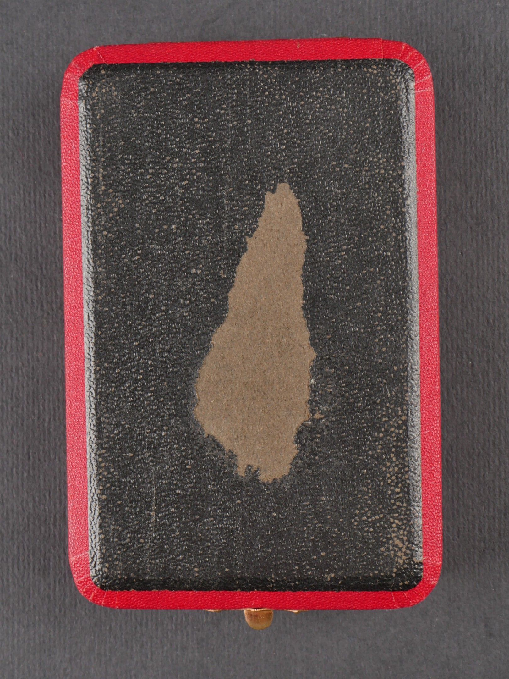 Officer's cross of the Crown of Italy with diplomas awarded to Léon Lachaze, French. The gold cross pattée is covered in white enamel. The arms of the cross are linked by four Savoy knot love lakes in braided gold wire. In the centre of the cross, on the obverse, is a gold medallion enamelled blue, featuring the crown of the King of the Lombards. The gold medallion on the reverse features a black-enamelled eagle with the enamelled Savoy cross in its mandorla, heraldic symbols taken from the great arms of the sovereigns of the House of Savoy. The ribbon is tierced with a white stripe between two red stripes, with a rosette. Miniature present. Beautiful complete box from the manufacturer DCO Cravanzola ROMA. Buttonhole and miniature of the same decoration also present. A handwritten letter from the Ministero degli affari esteri, dated 3 March 1902, awarding this decoration in the grade of officer to Enrico Leone Lachaze, President of the Civil Court of Dax. A handwritten letter from the Ministry of Justice, dated 1902, awarding him the insignia of the Crown of Italy. A parchment from the Grand Chancellery of the Legion of Honour authorising the wearing of this decoration. Some wear and patina. Condition II+. Officer's Cross of the Crown of Italy With accompanying diplomas awarded to Léon Lachaze, a French national. Rounded gilt cross pattée covered in white enamel. The arms of the cross are connected by four interlaced love knots Savoy knots in twisted gold wire. At the centre of the cross, on the obverse, a gilt and blue-enamel medallion depicting the crown of the Lombard kings, on the reverse, a gilt medallion showing a black-enamelled eagle bearing the Savoy cross, heraldic symbols of the House of Savoy. Ribbon composed of a white band between two red bands, with rosette. Miniature present. Fine, complete case by DCO Cravanzola, Rome. Buttonhole and miniature decorations of the same order also present. Includes a handwritten letter from the Ministero degli Affari Esteri dated March 3, 1902, granting the Officer grade to Enrico Leone Lachaze, President of the Civil Court of Dax, a handwritten letter from the Ministry of Justice 1902 transmitting the insignia, and a parchment from the Grand Chancellery of the Légion d'Honneur authorizing the wearing of the decoration. Some wear and patina noted. Condition II+.