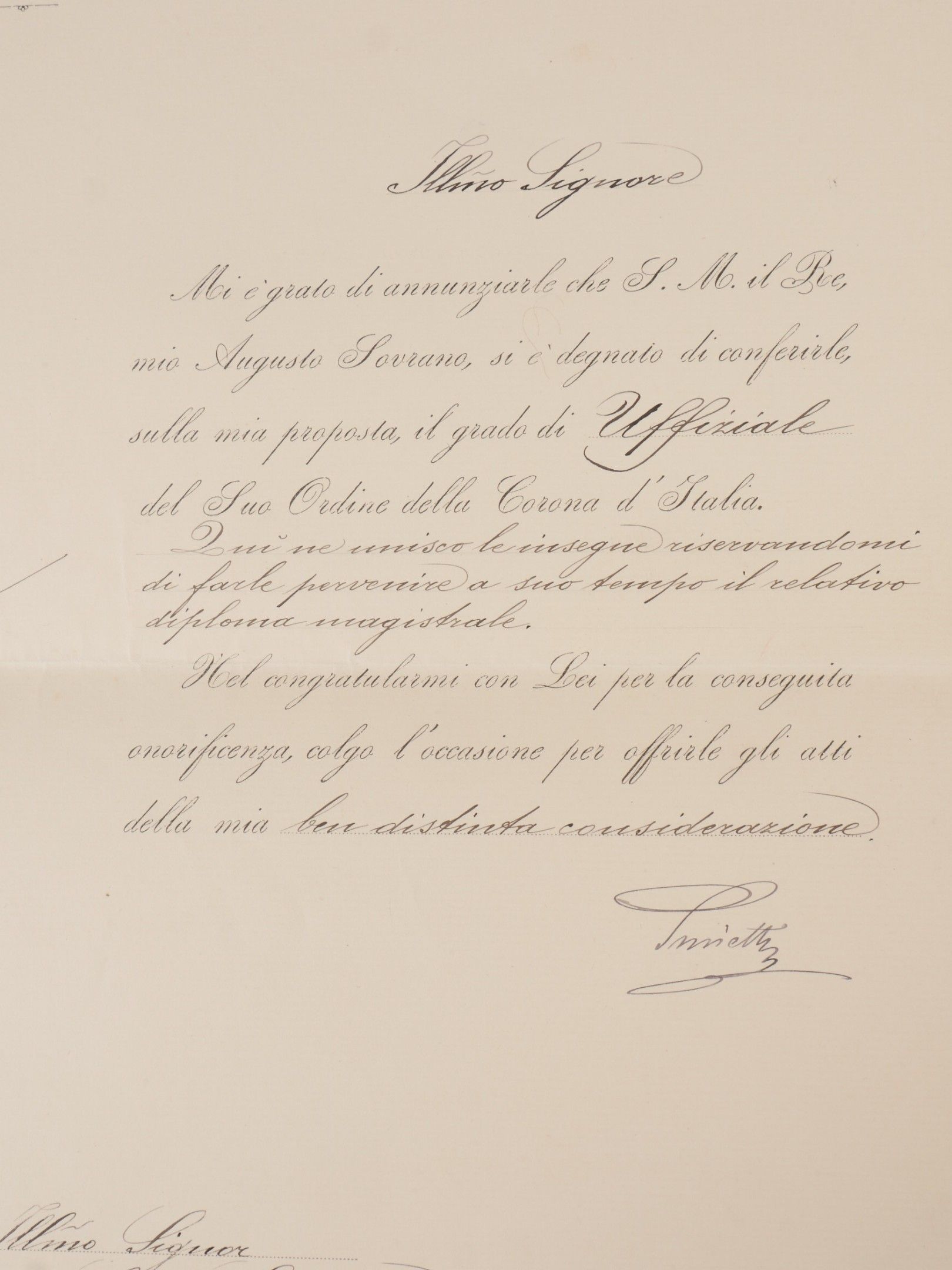 Officer's cross of the Crown of Italy with diplomas awarded …
