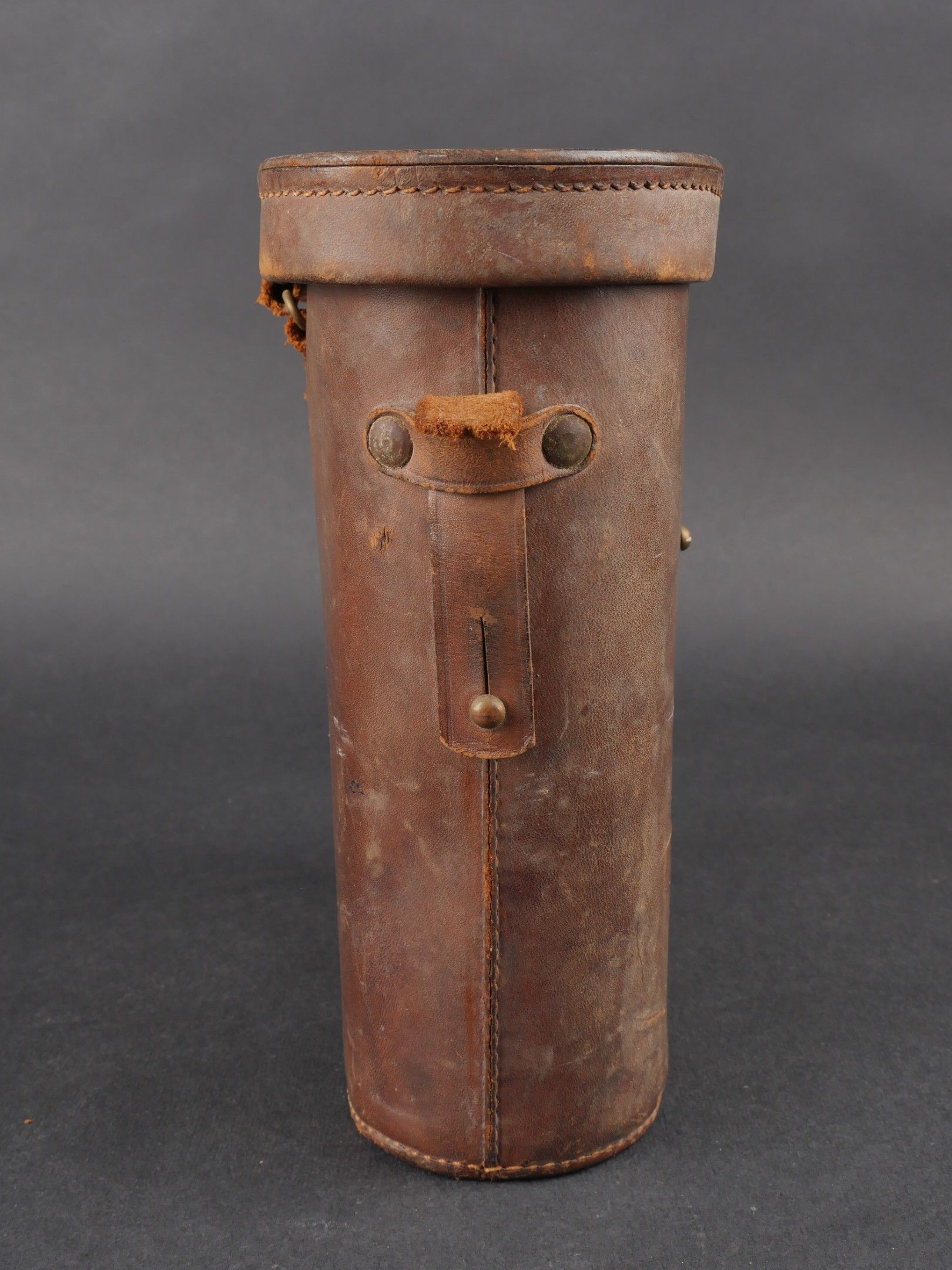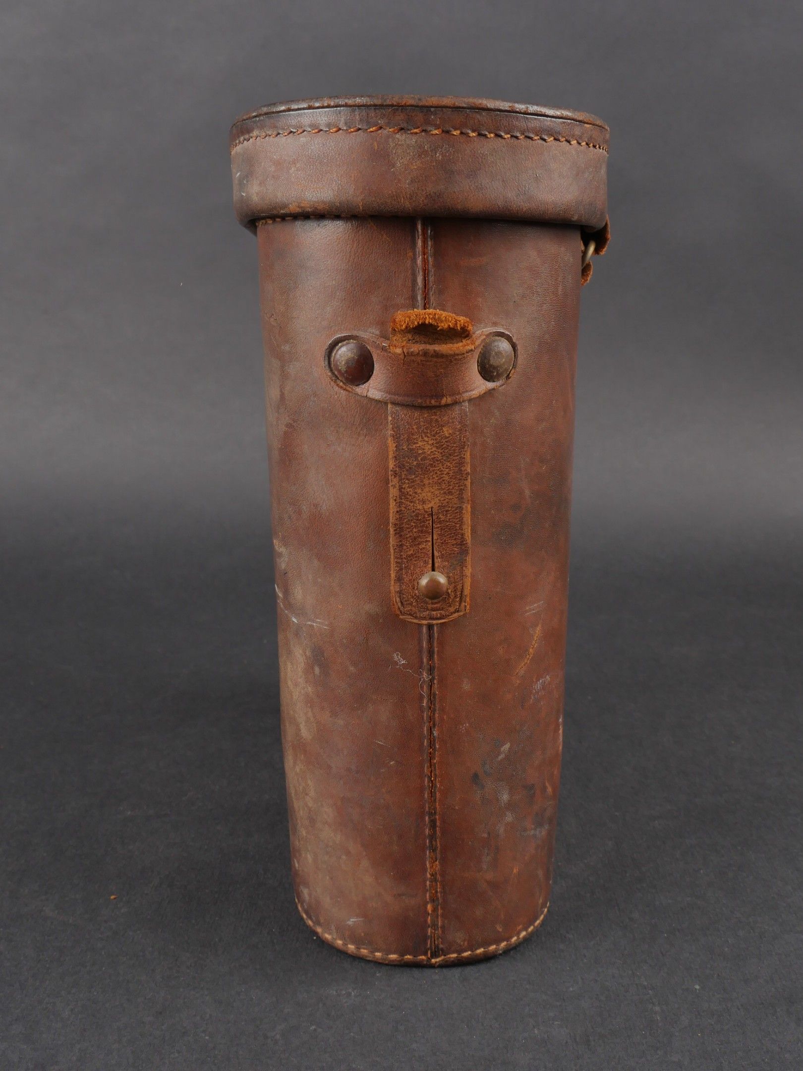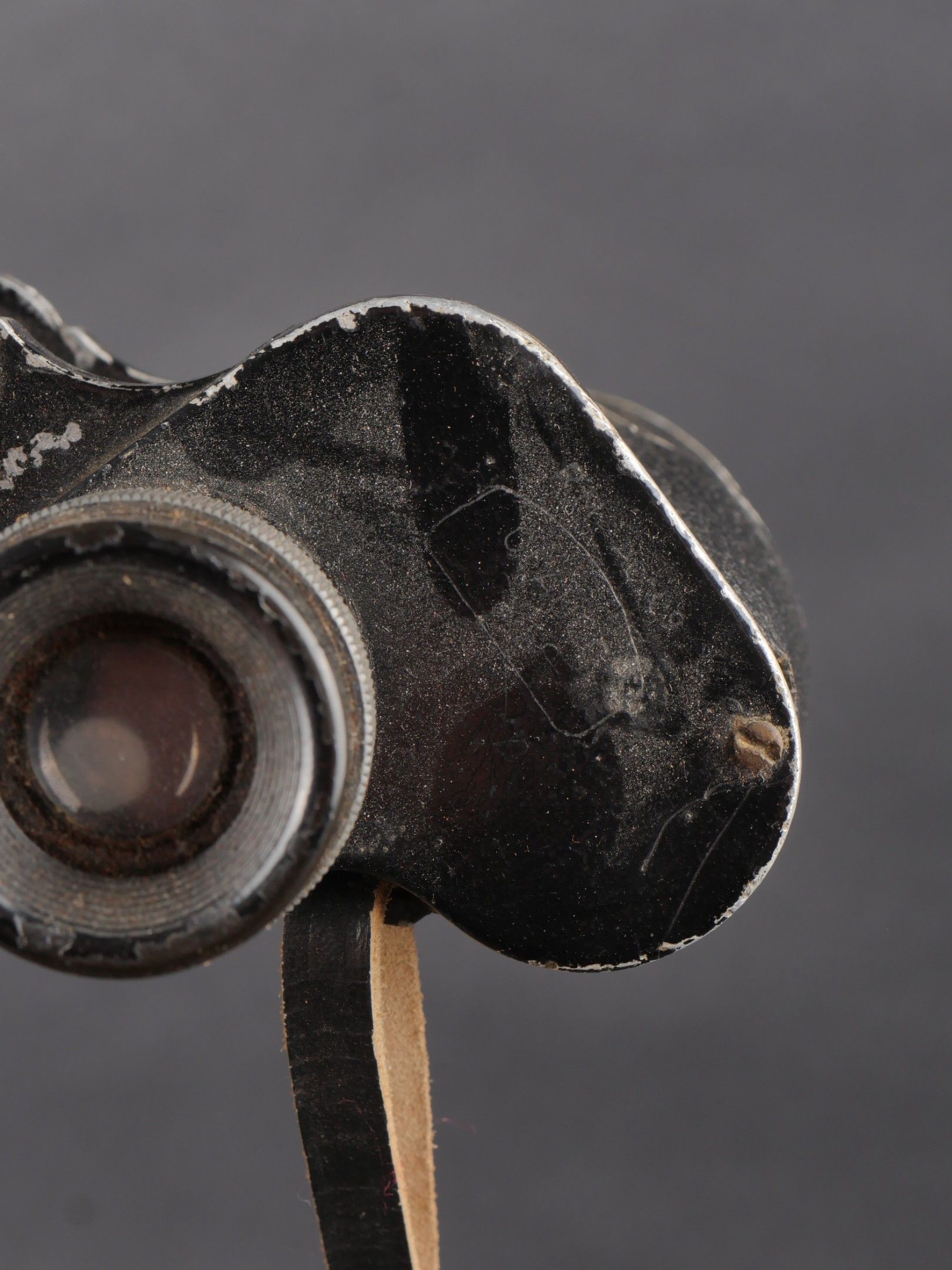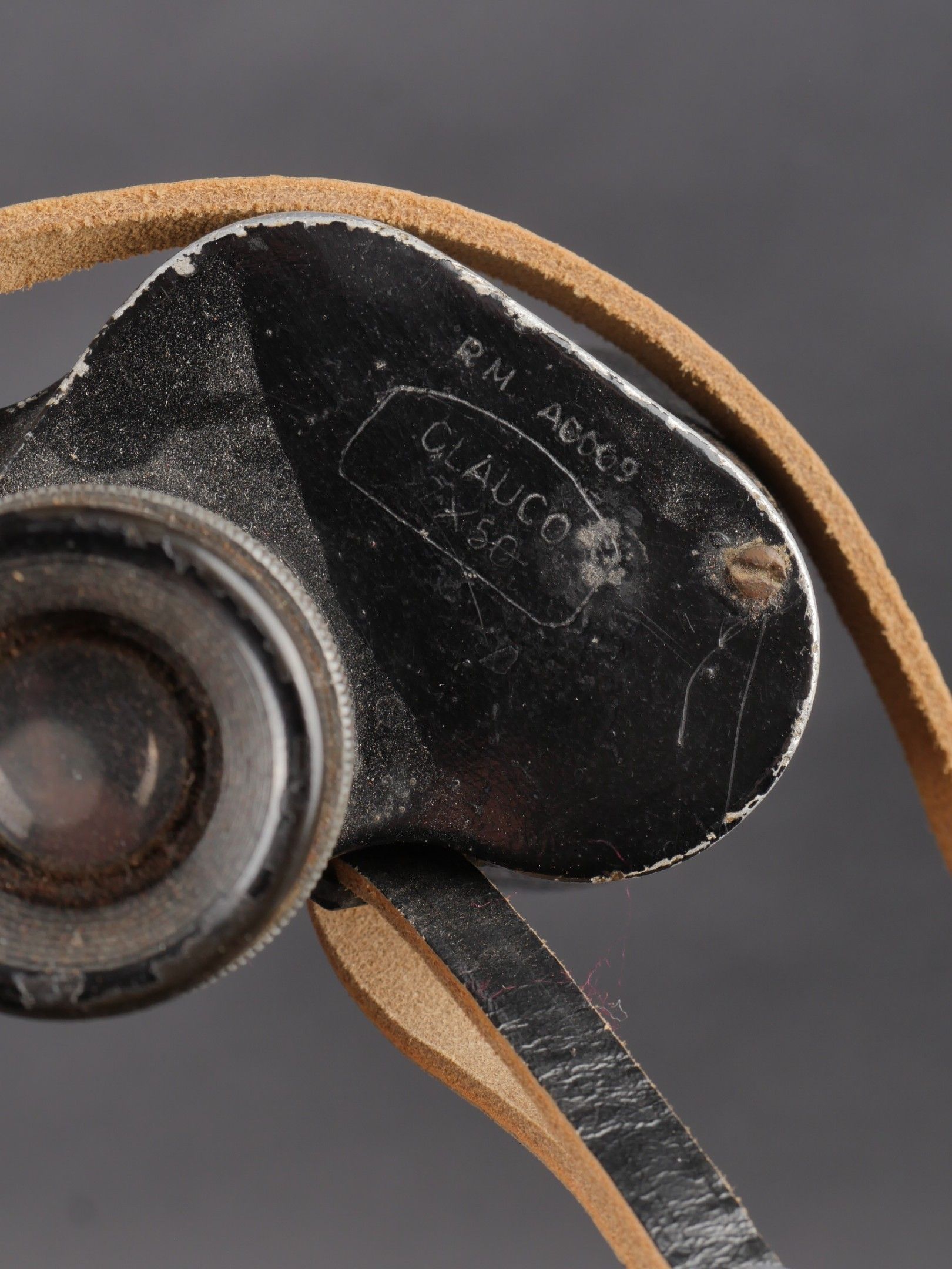 Regia Marine binoculars. Brown leather case. Carrying and closing straps are missing. Coating in very poor condition. Markings are illegible. Later leather carrying strap. Clear optics with a few stains. Some wear and patina. Condition II+. Regia Marina Binoculars Brown leather case. Carrying and closure straps missing. Outer covering in poor condition. Markings illegible. Later replacement leather carrying strap. Clear optics with some stains. Some wear and patina noted. Condition II+.