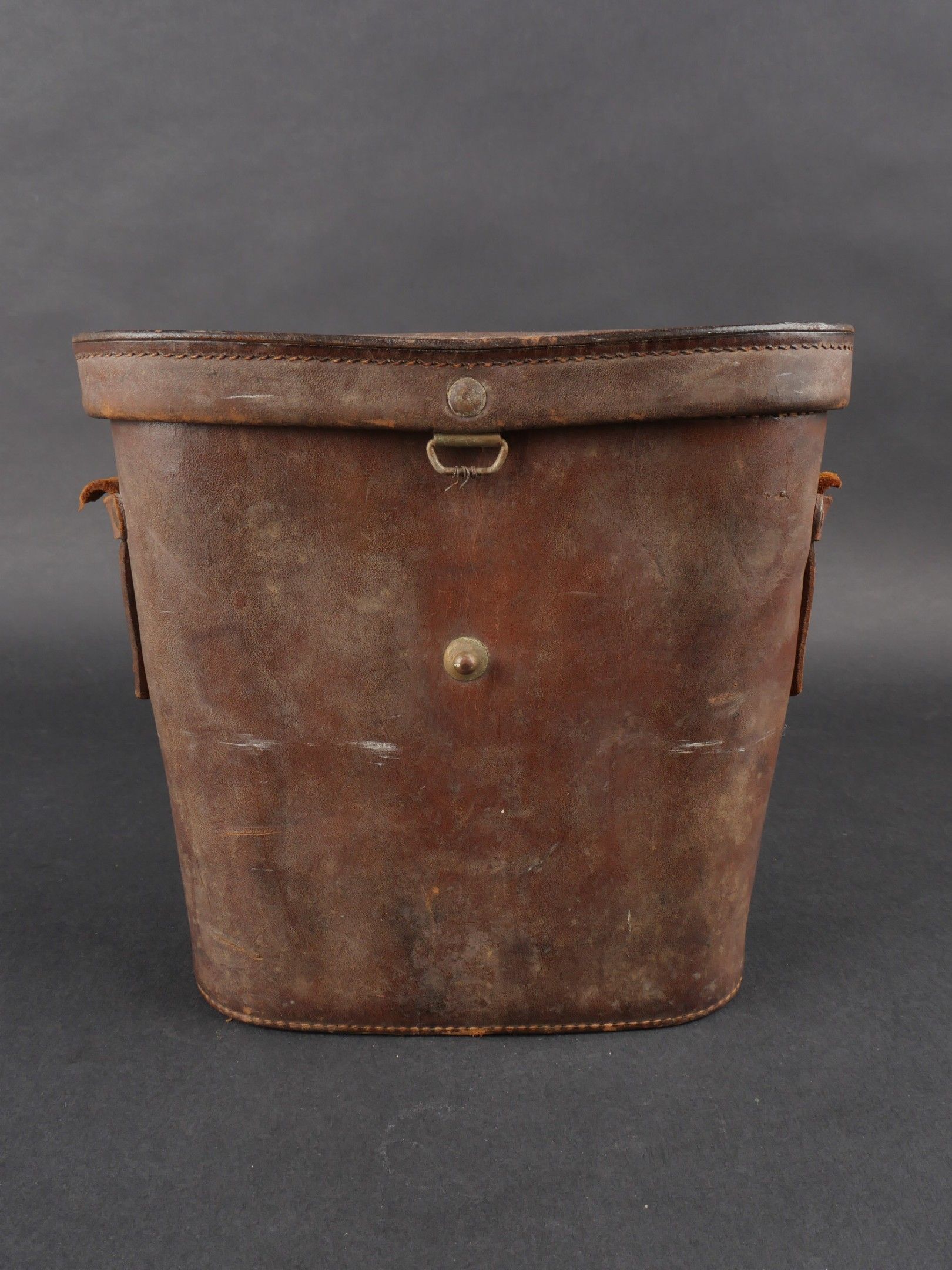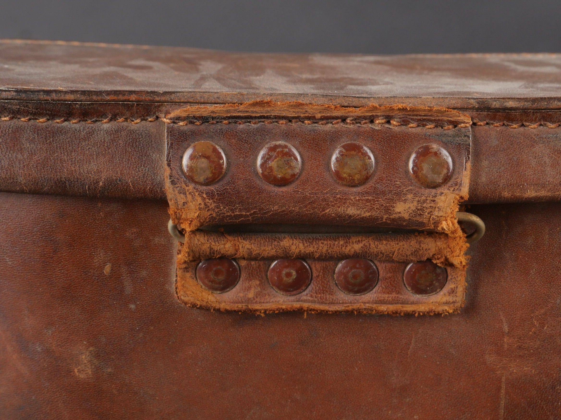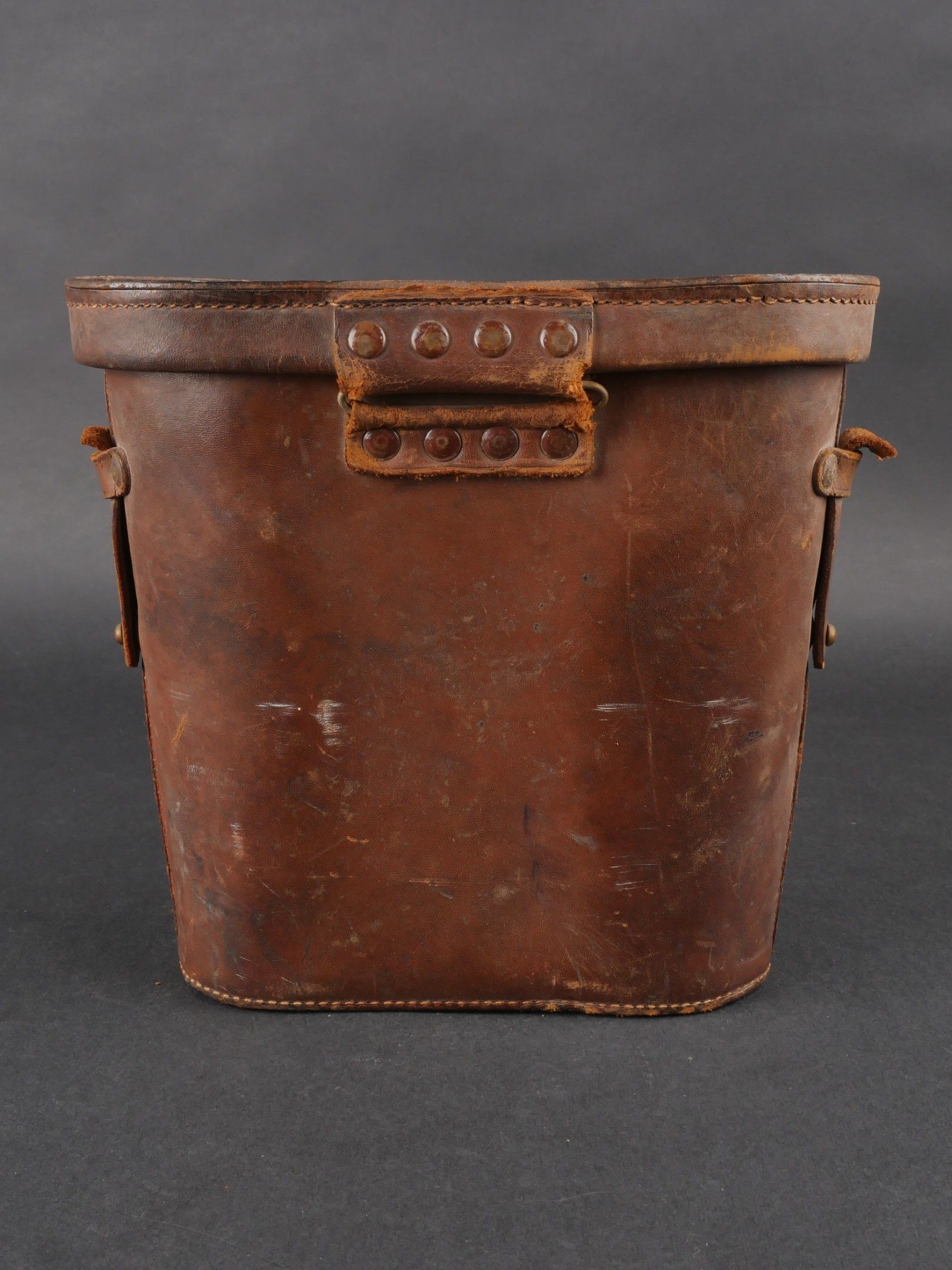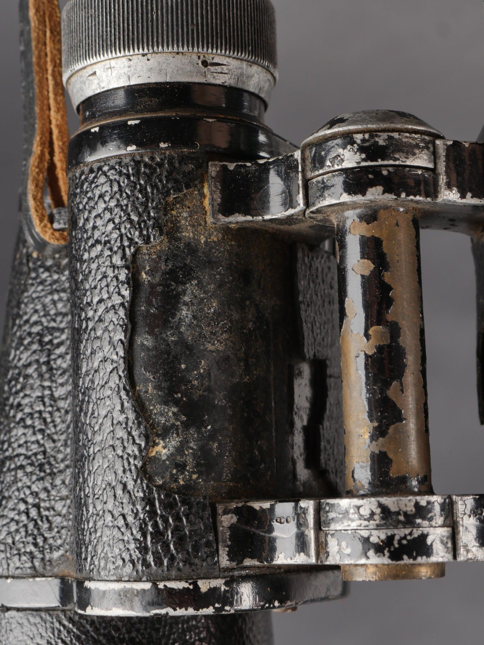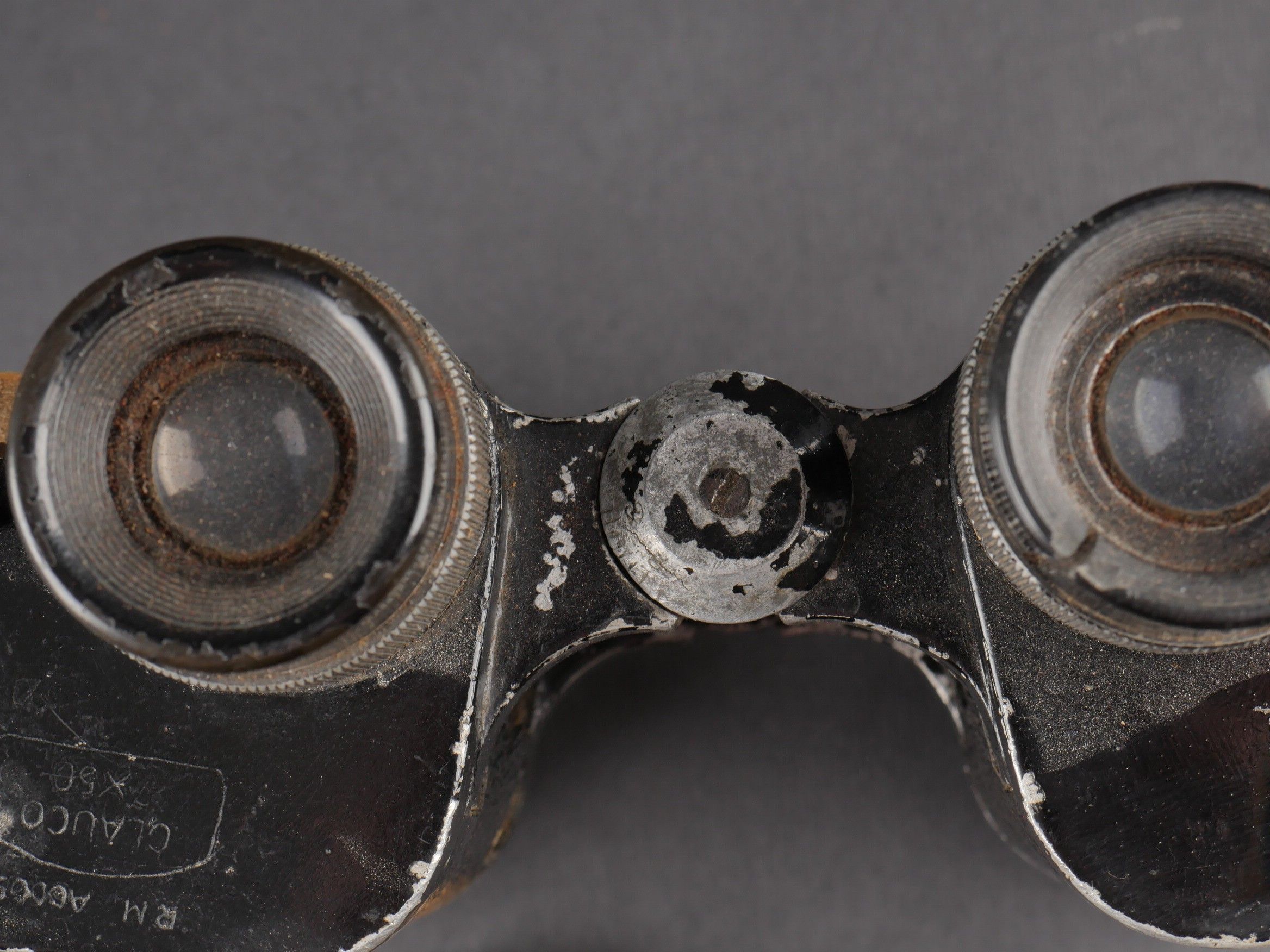 Regia Marine binoculars. Brown leather case. Carrying and closing straps are missing. Coating in very poor condition. Markings are illegible. Later leather carrying strap. Clear optics with a few stains. Some wear and patina. Condition II+. Regia Marina Binoculars Brown leather case. Carrying and closure straps missing. Outer covering in poor condition. Markings illegible. Later replacement leather carrying strap. Clear optics with some stains. Some wear and patina noted. Condition II+.